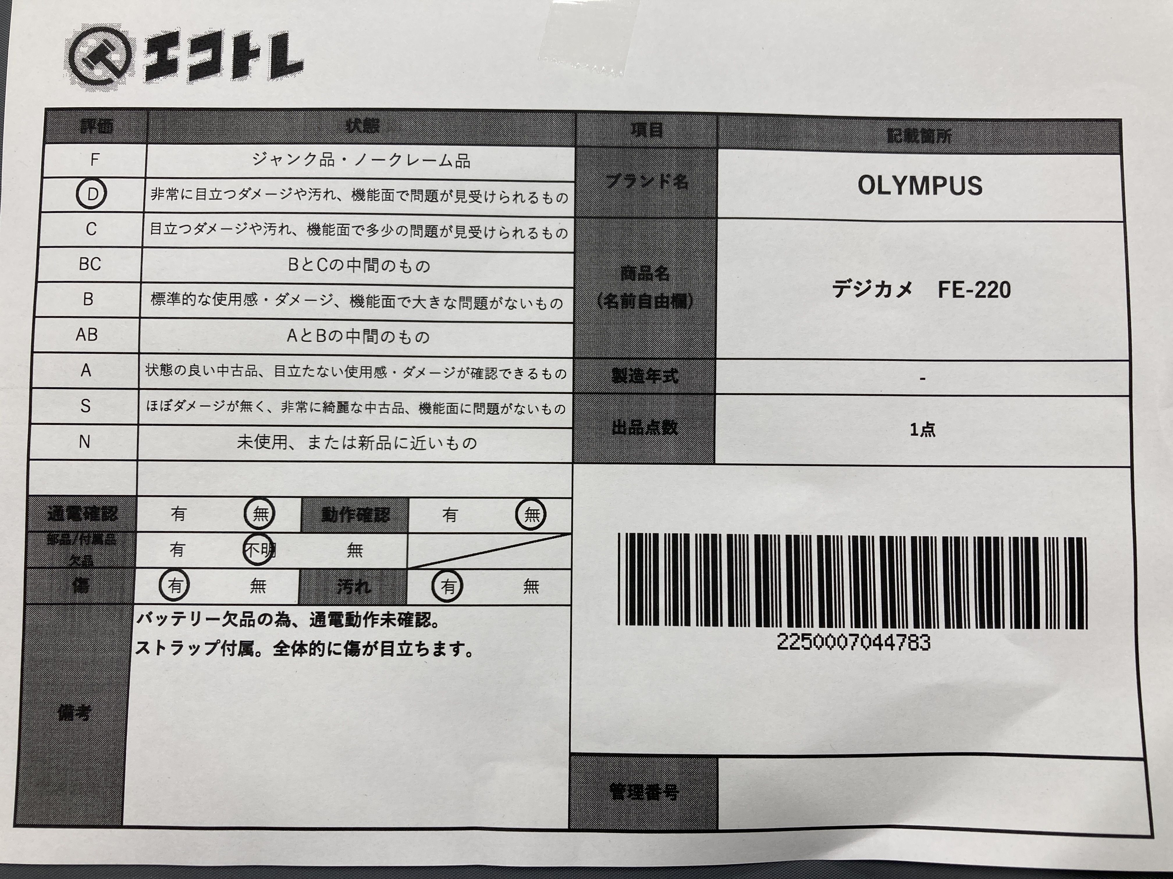(C_0015)▼OLYMPUS Olympus デジカメ FE-220 カメラ