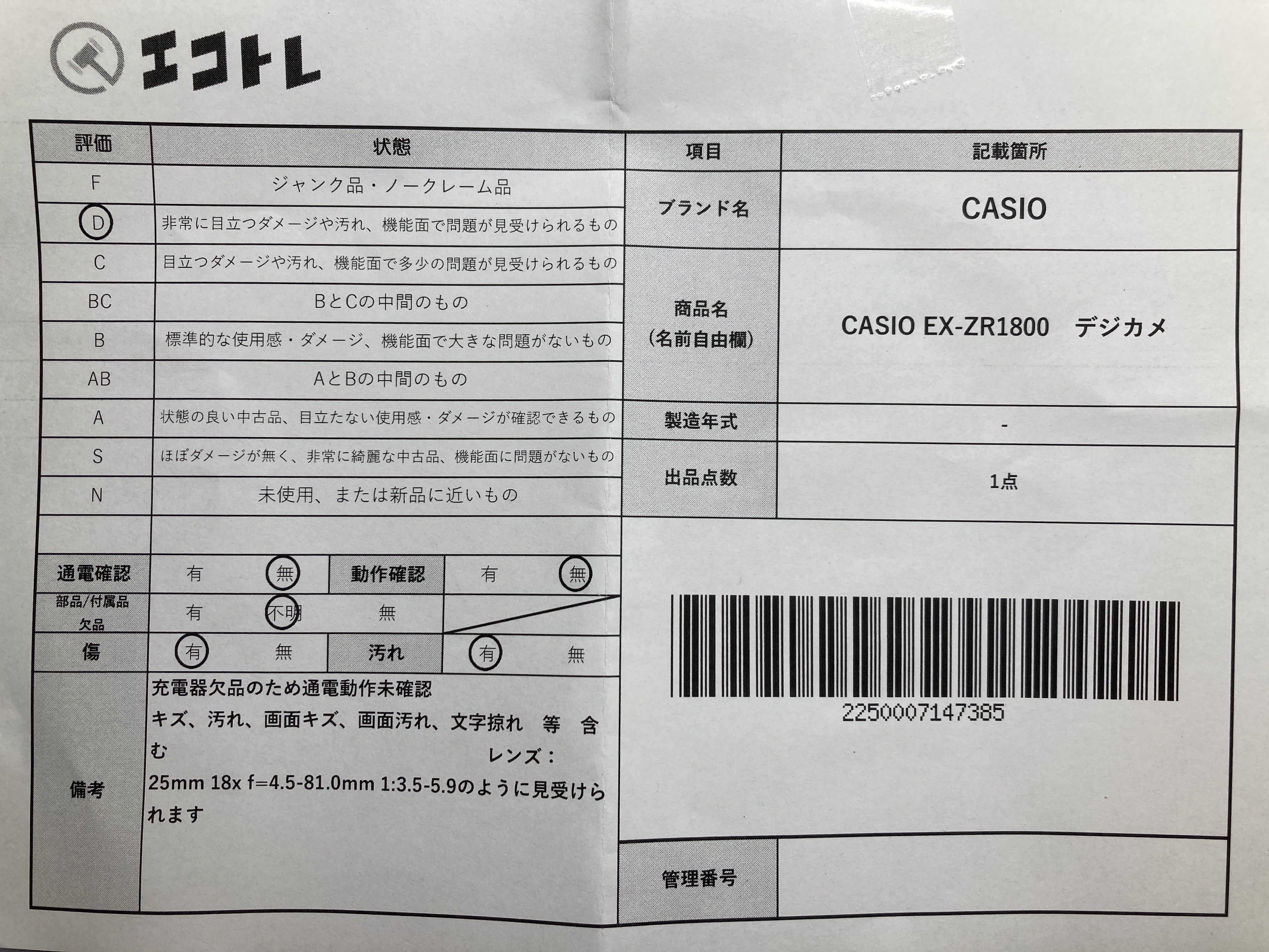 (C_0073)▼CASIO EX-ZR1800 カメラ