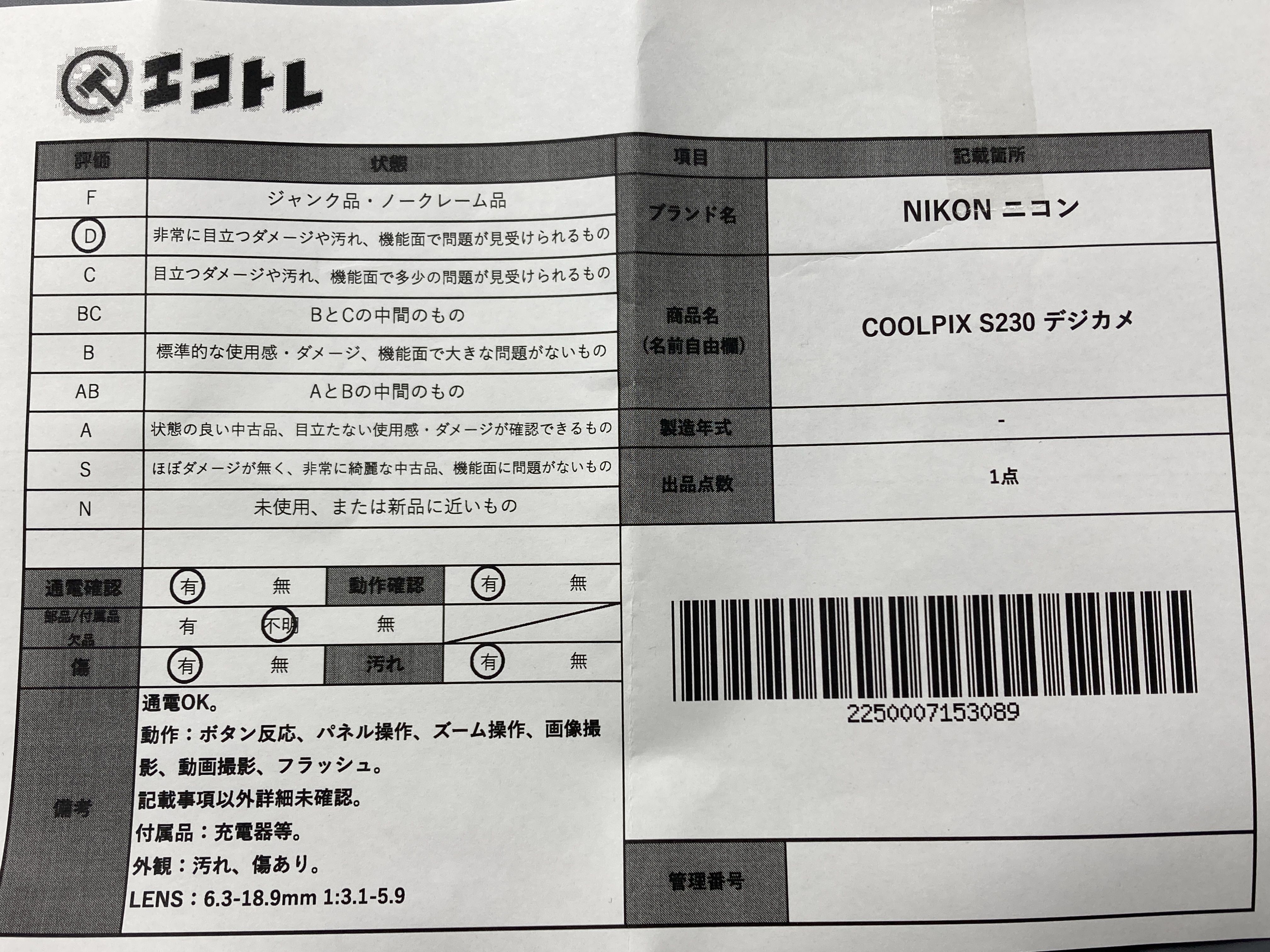 ▼SHIPPING TO JPN ONLY▼ 商品内容によって、JITBOXなどでの発送となる可能性がございます事ご理解下さい。年式などの商品情報詳細は写真にてご確認願います。※ご入札の際はご利用規約をよくお読みになってからのご参加お願いします。","タイプライン":"","カテゴリ":"カメラ","形状コード":"カメラ","付属品コード":"","シリアル・シール・型番":""