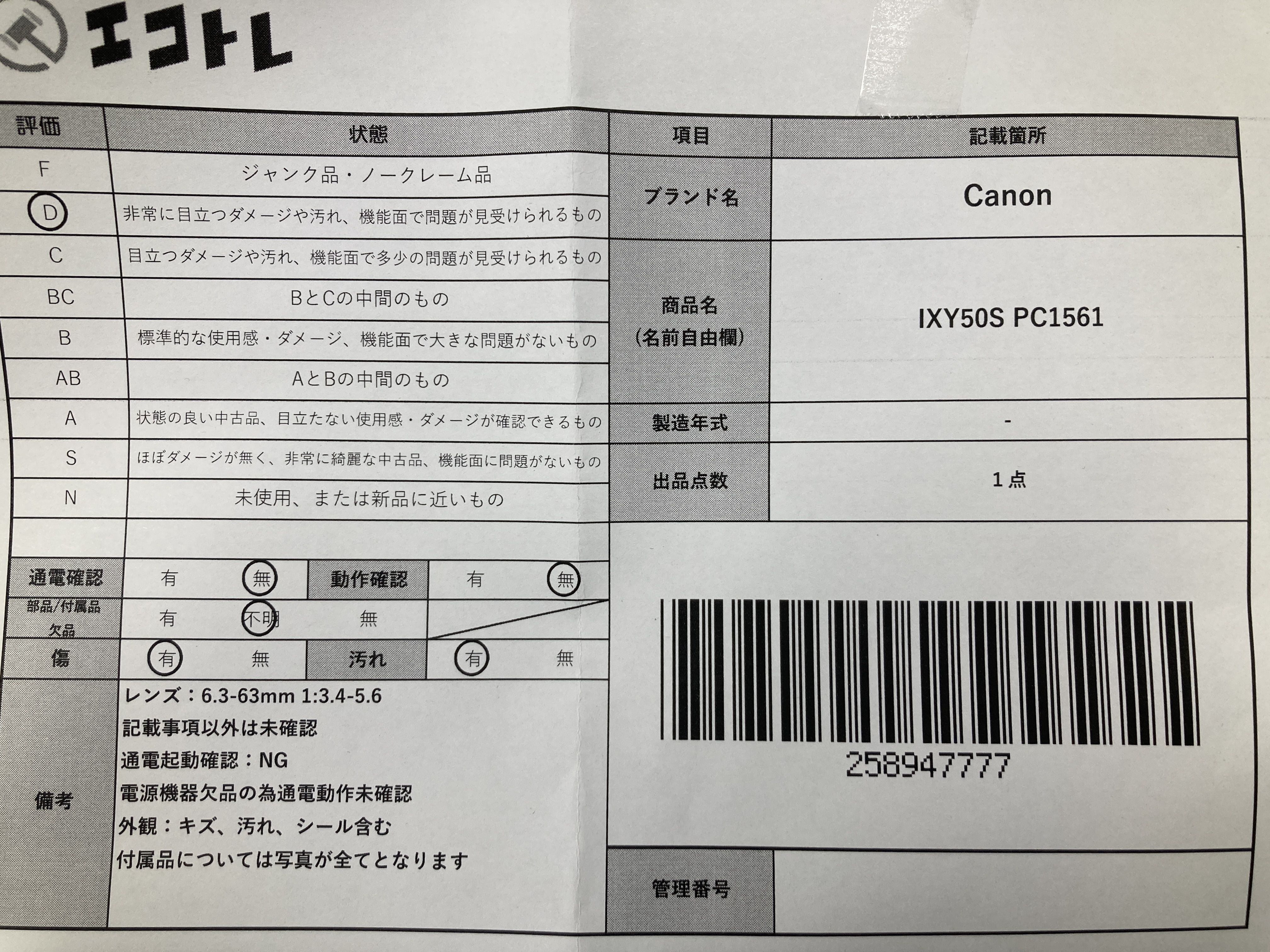 ▼SHIPPING TO JPN ONLY▼ 商品内容によって、JITBOXなどでの発送となる可能性がございます事ご理解下さい。年式などの商品情報詳細は写真にてご確認願います。※ご入札の際はご利用規約をよくお読みになってからのご参加お願いします。","タイプライン":"","カテゴリ":"カメラ","形状コード":"カメラ","付属品コード":"","シリアル・シール・型番":""
