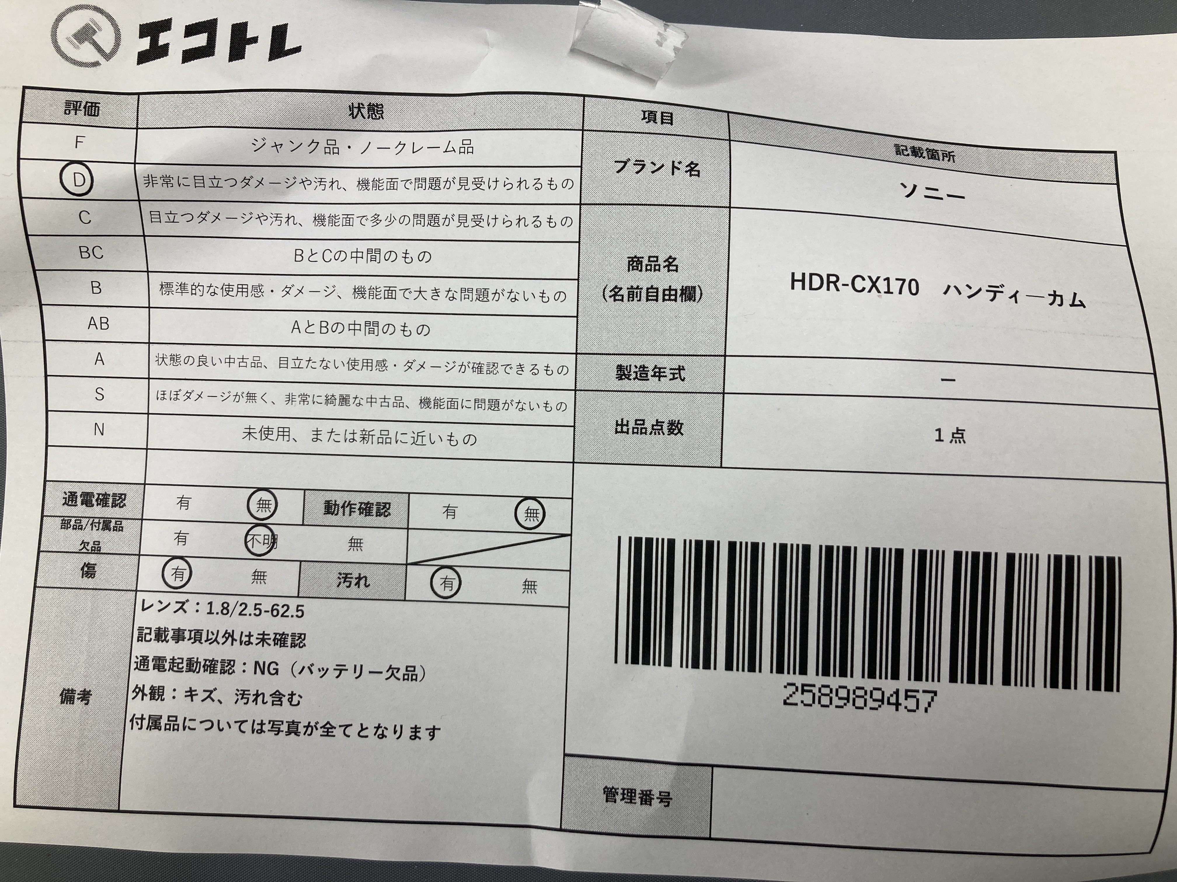 (C_0299)▼ソニー HDR-CX170 ハンディ-カム カメラ