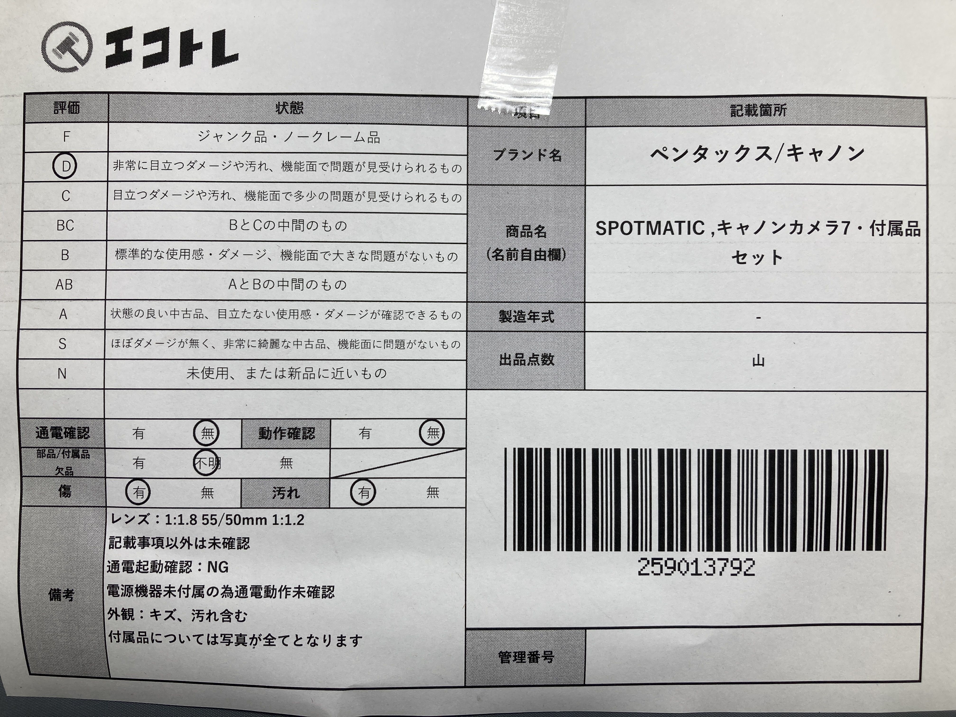 ▼SHIPPING TO JPN ONLY▼ 商品内容によって、JITBOXなどでの発送となる可能性がございます事ご理解下さい。年式などの商品情報詳細は写真にてご確認願います。※ご入札の際はご利用規約をよくお読みになってからのご参加お願いします。","タイプライン":"","カテゴリ":"カメラ","形状コード":"カメラ","付属品コード":"","シリアル・シール・型番":""