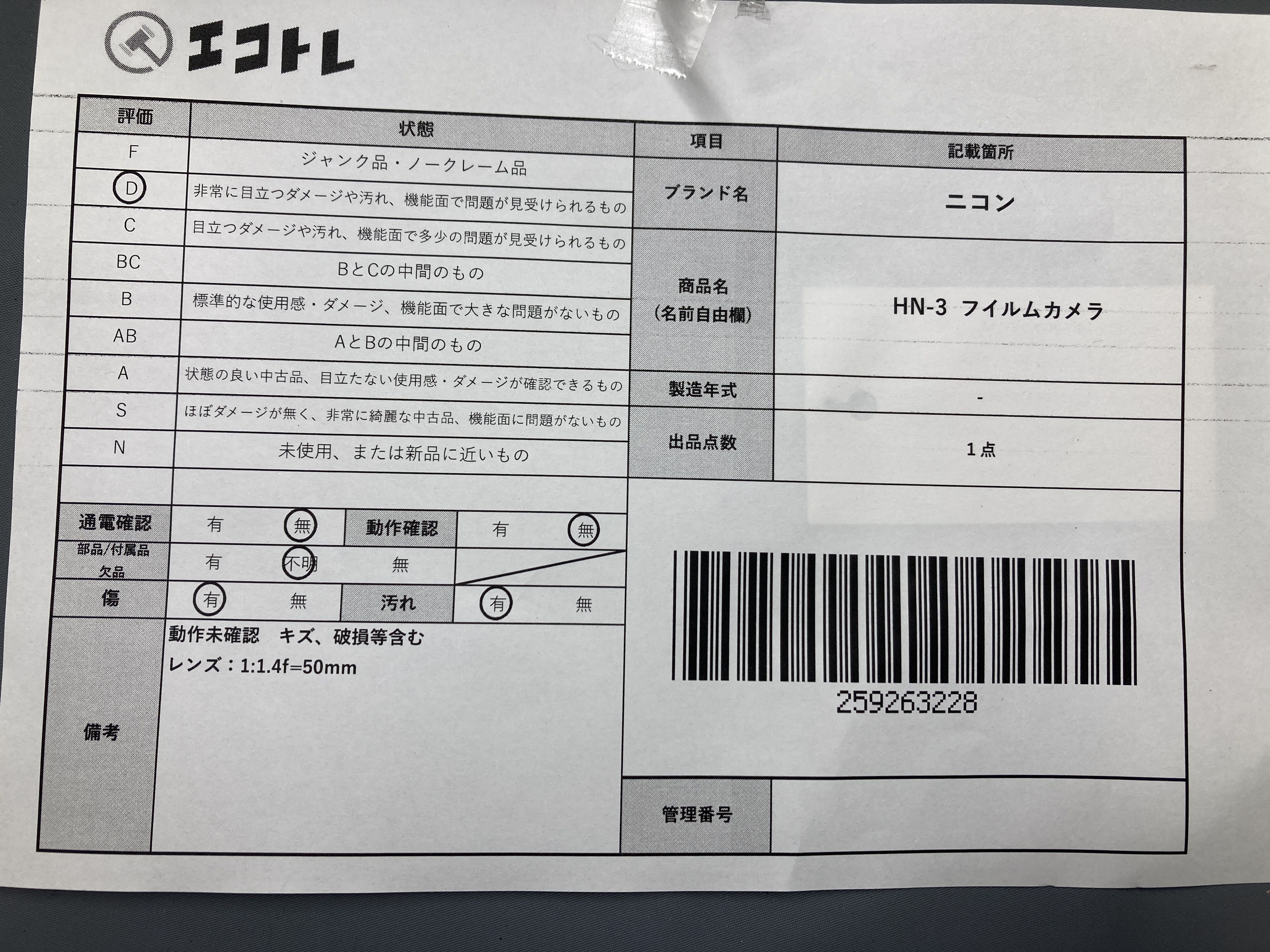 ▼SHIPPING TO JPN ONLY▼ 商品内容によって、JITBOXなどでの発送となる可能性がございます事ご理解下さい。年式などの商品情報詳細は写真にてご確認願います。※ご入札の際はご利用規約をよくお読みになってからのご参加お願いします。","タイプライン":"","カテゴリ":"カメラ","形状コード":"カメラ","付属品コード":"","シリアル・シール・型番":""