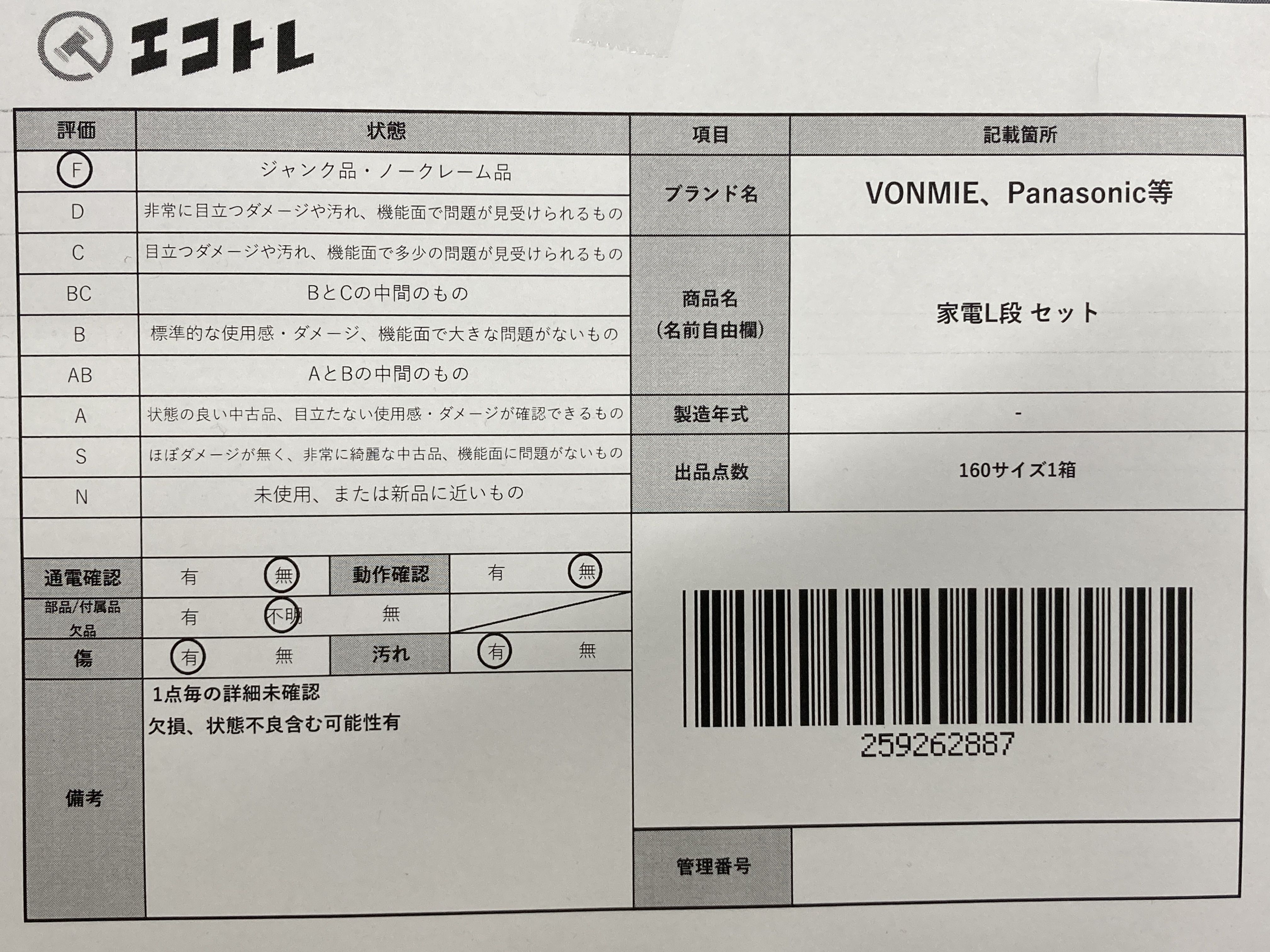 ▼SHIPPING TO JPN ONLY▼ 商品内容によって、JITBOXなどでの発送となる可能性がございます事ご理解下さい。年式などの商品情報詳細は写真にてご確認願います。※ご入札の際はご利用規約をよくお読みになってからのご参加お願いします。","タイプライン":"","カテゴリ":"家電","形状コード":"その他家電","付属品コード":"","シリアル・シール・型番":""
