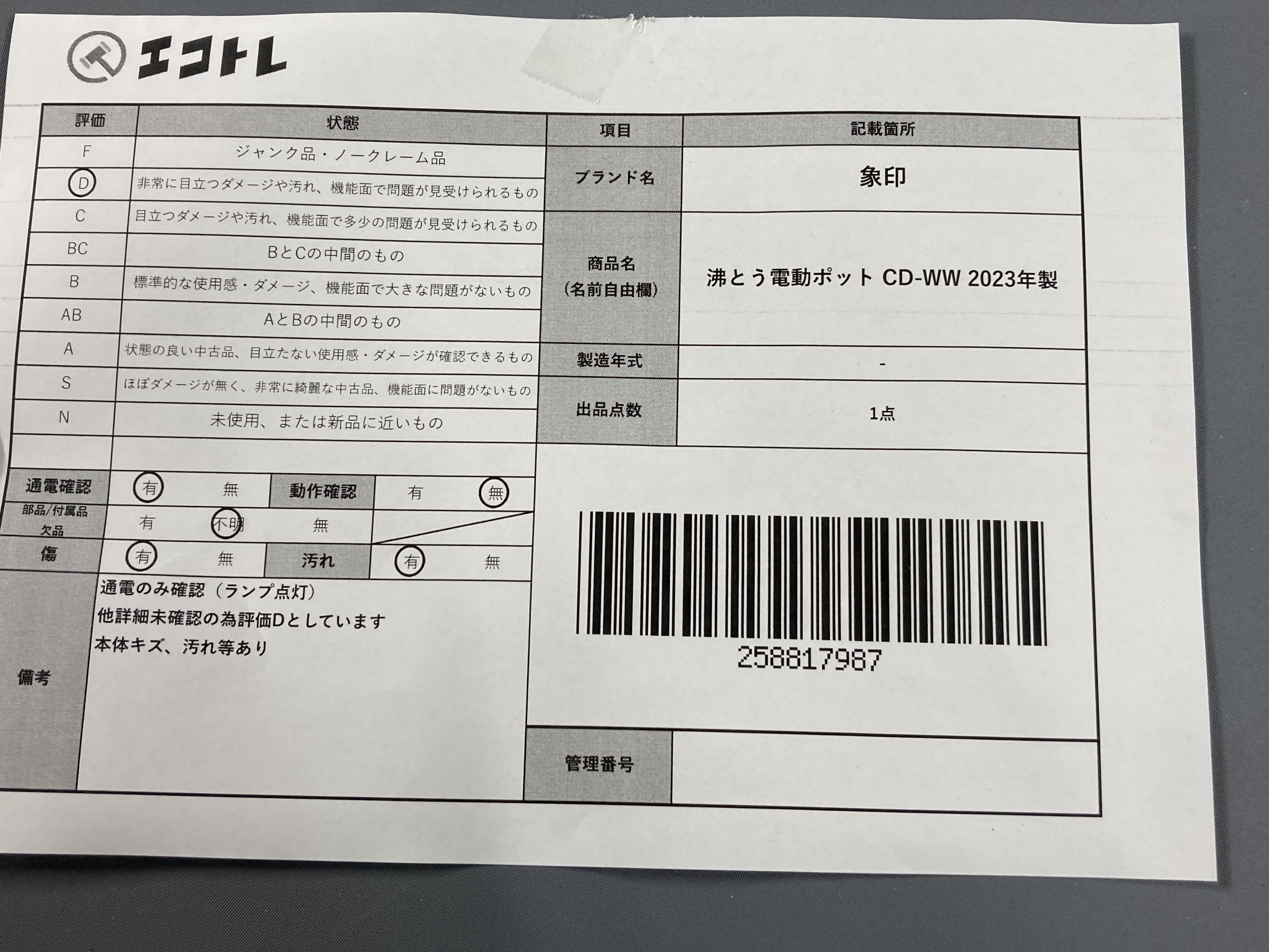 ▼SHIPPING TO JPN ONLY▼ 商品内容によって、JITBOXなどでの発送となる可能性がございます事ご理解下さい。年式などの商品情報詳細は写真にてご確認願います。※ご入札の際はご利用規約をよくお読みになってからのご参加お願いします。","タイプライン":"","カテゴリ":"家電","形状コード":"その他家電","付属品コード":"","シリアル・シール・型番":""