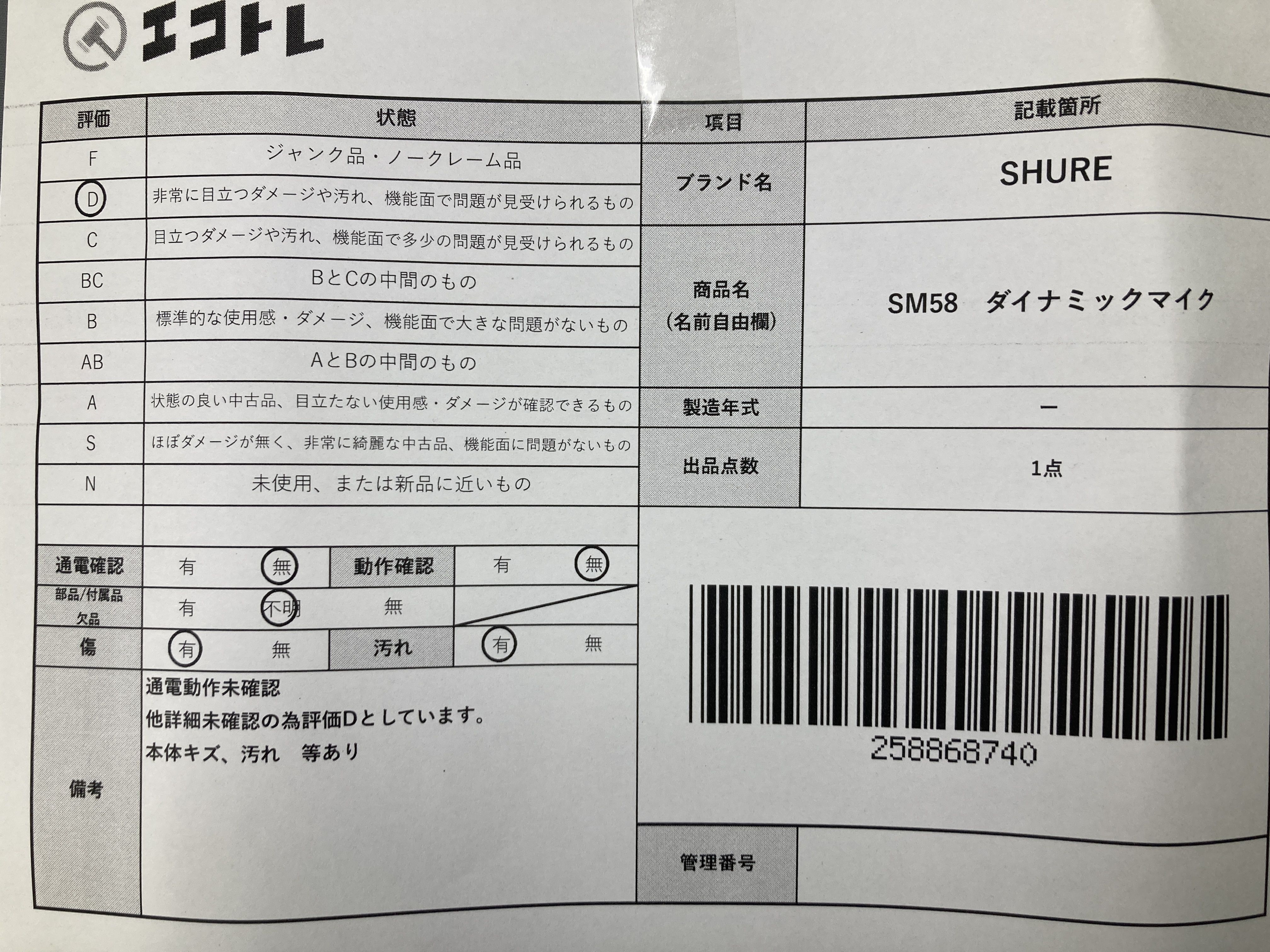 ▼SHIPPING TO JPN ONLY▼ 商品内容によって、JITBOXなどでの発送となる可能性がございます事ご理解下さい。年式などの商品情報詳細は写真にてご確認願います。※ご入札の際はご利用規約をよくお読みになってからのご参加お願いします。","タイプライン":"","カテゴリ":"家電","形状コード":"その他家電","付属品コード":"","シリアル・シール・型番":""