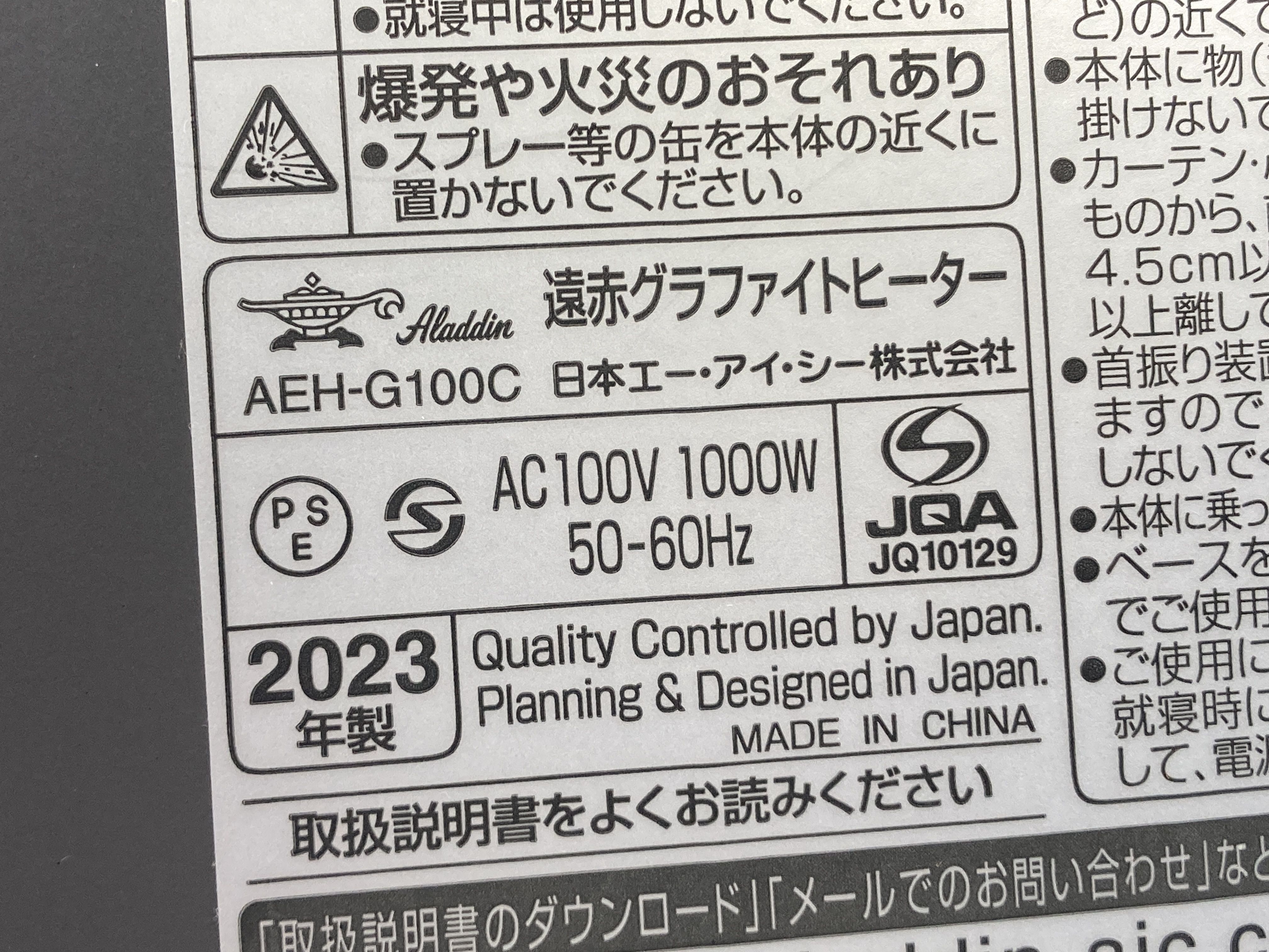 (C_0511)▼アラジン ヒーター AEH-G100 日本エー・アイ・シー その他家電