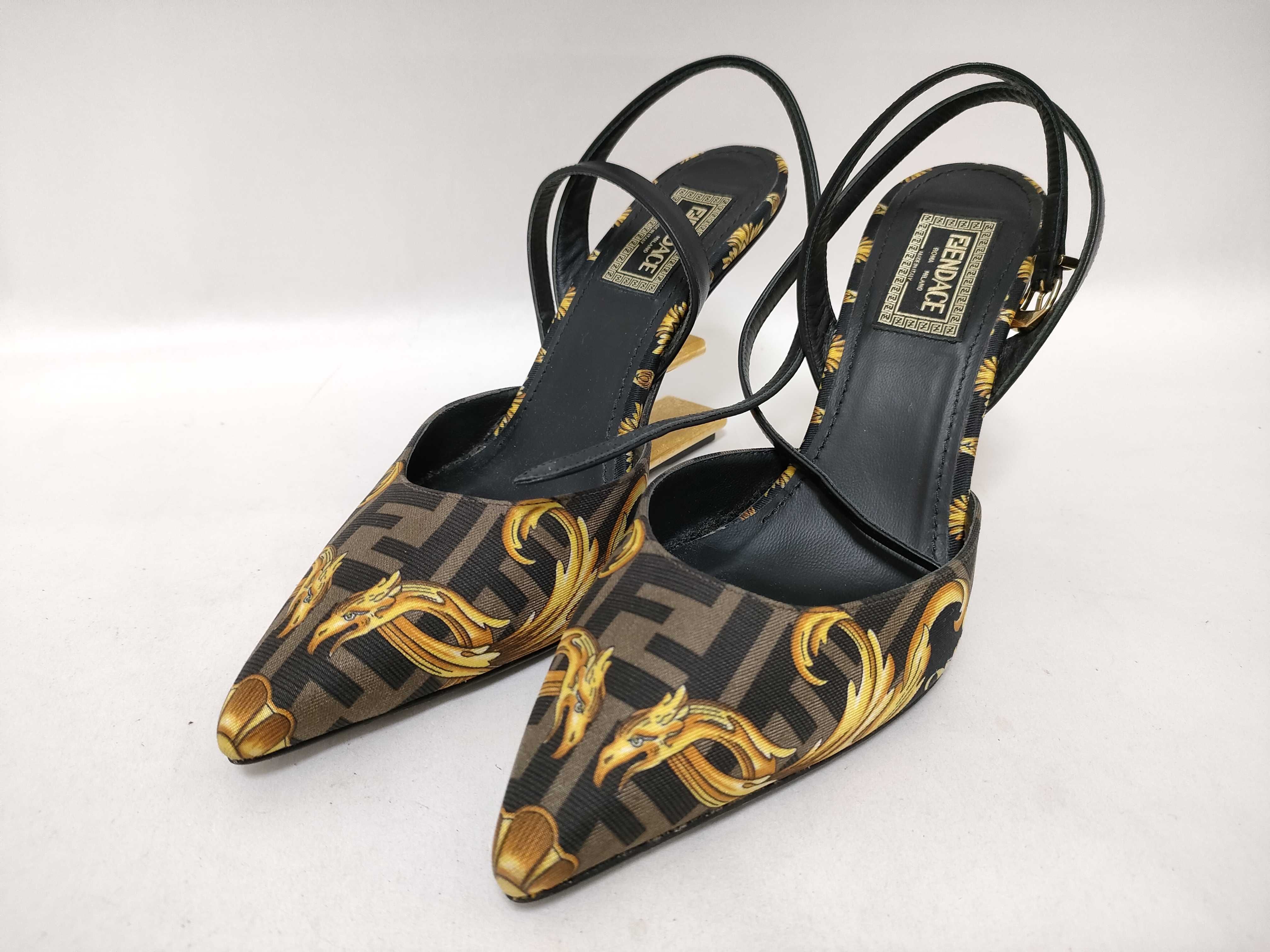 (F_0199)Salvatore Ferragamo フェンダーチェ フェンディ × ヴェルサーチ ハイヒール パンプス