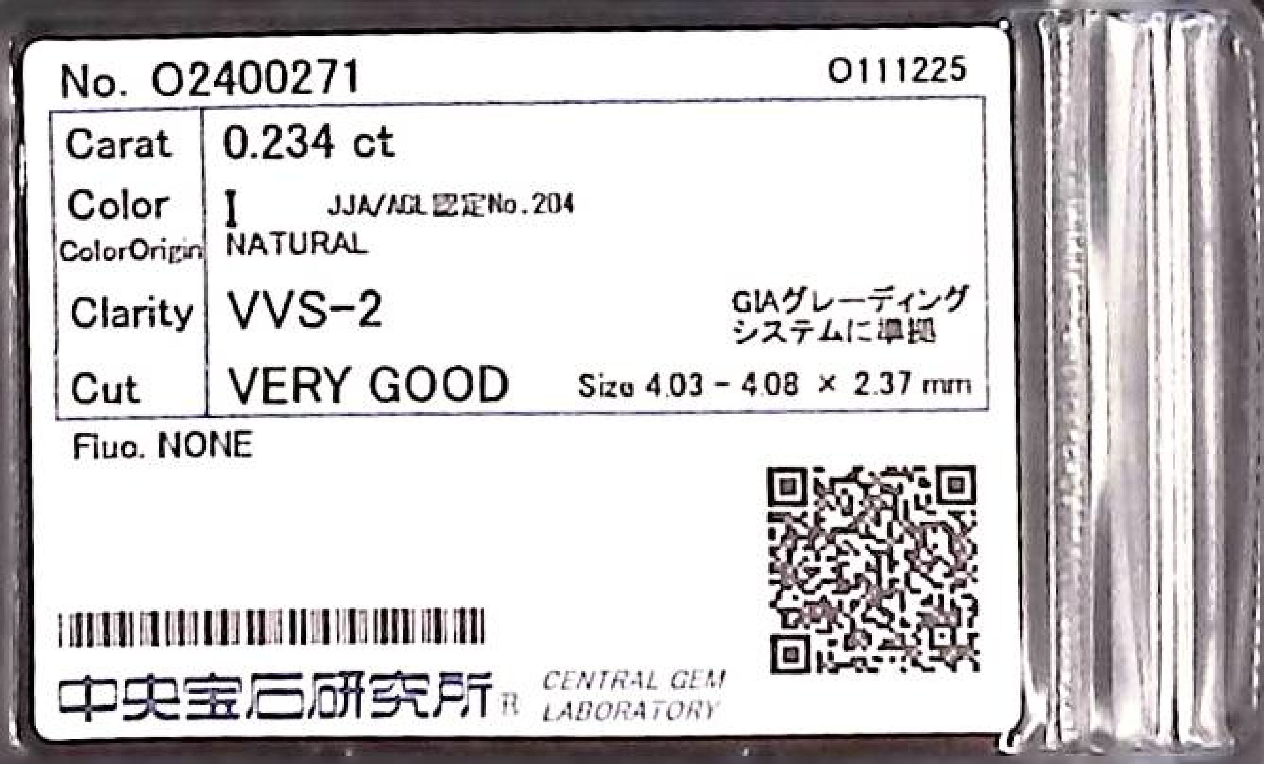 (10980_0058)0.234ct I VVS-2 VERY GOOD/VG/GD NONE NATURAL 4.03-4.08X2.37mm ダイヤ・ルース