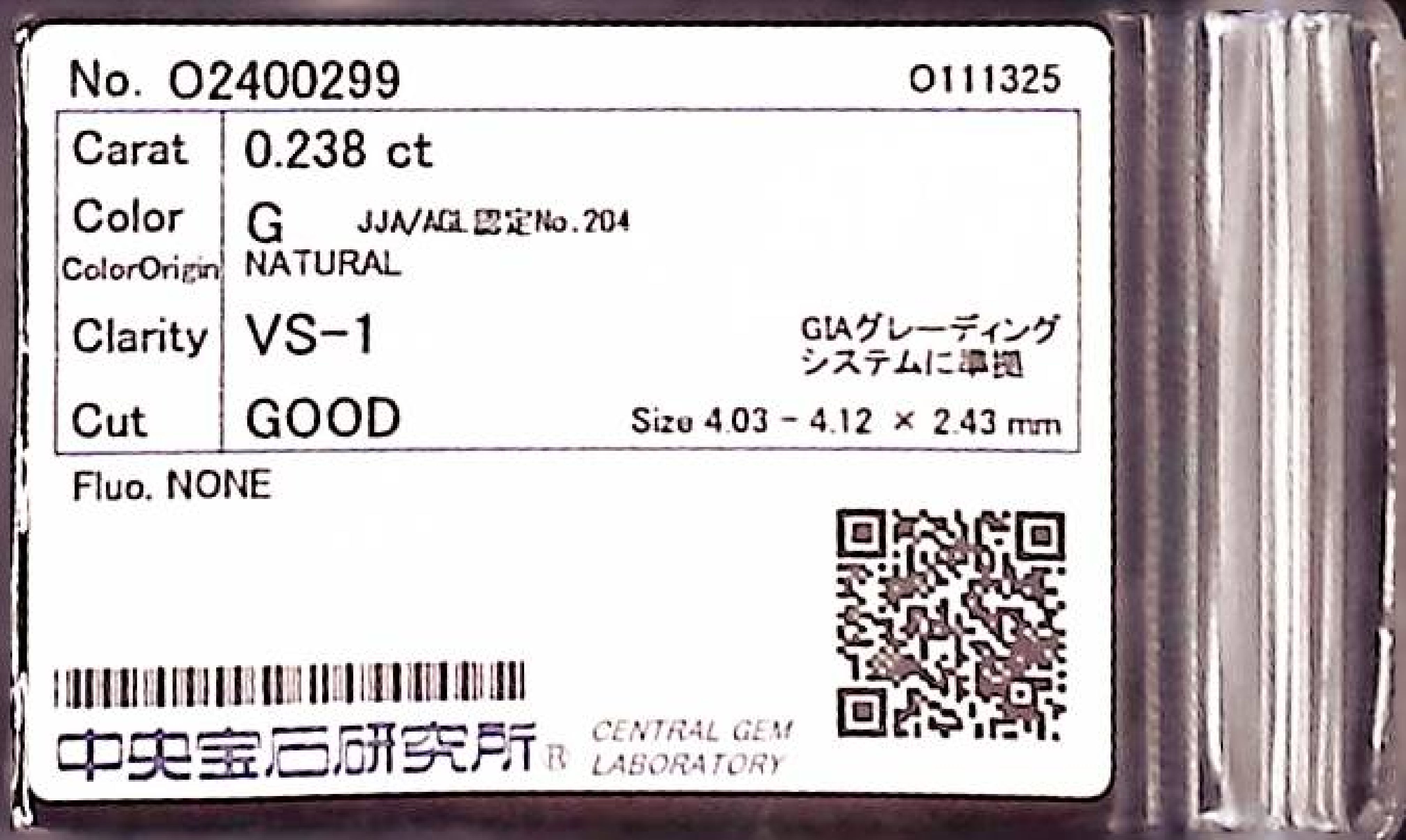 (10980_0068)0.238ct G VS-1 GOOD/GD/GD NONE NATURAL 4.03-4.12X2.43mm ダイヤ・ルース