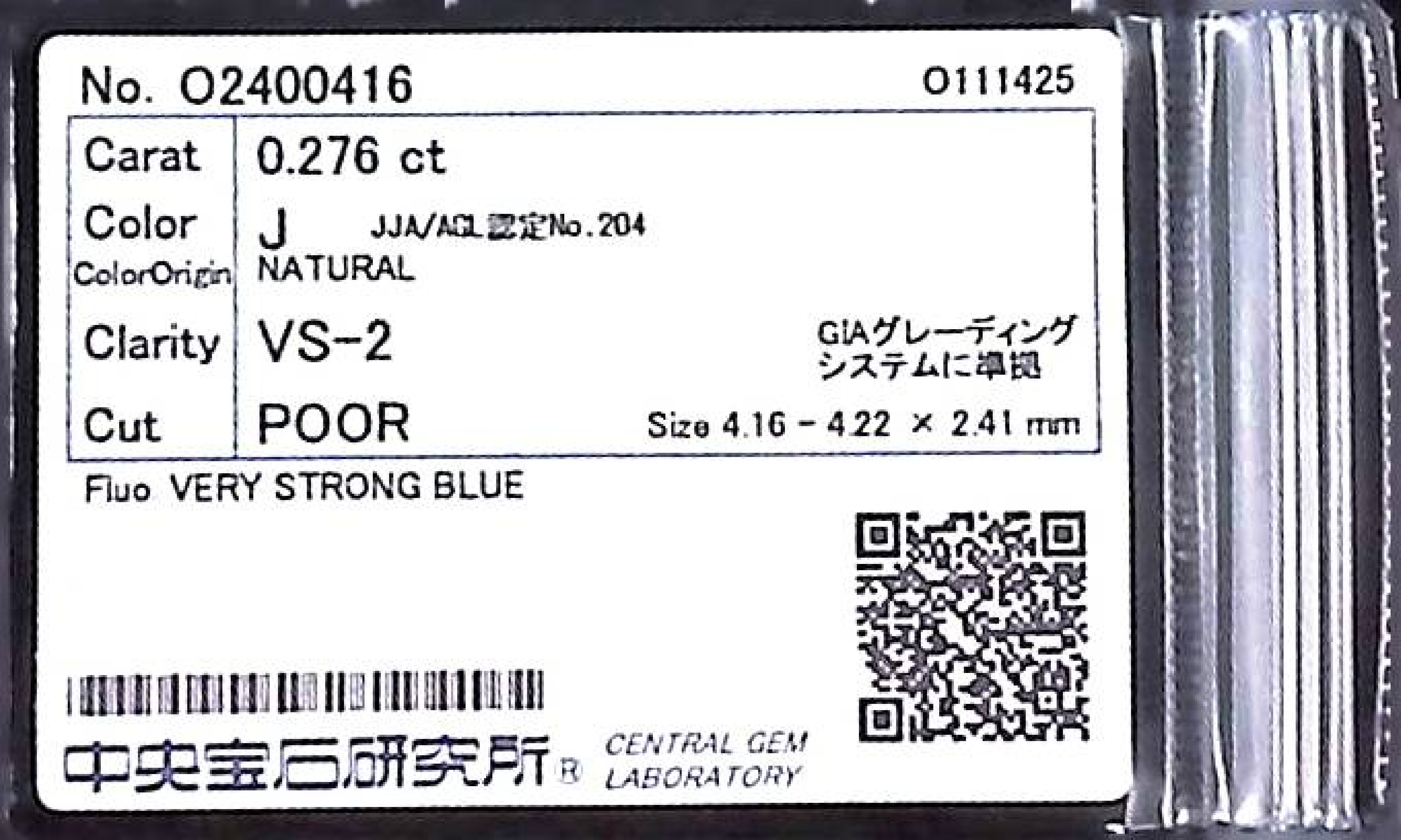 (10980_0125)0.276ct J VS-2 POOR/GD/FR VERY STRONG BLUE NATURAL 4.16-4.22X2.41mm ダイヤ・ルース