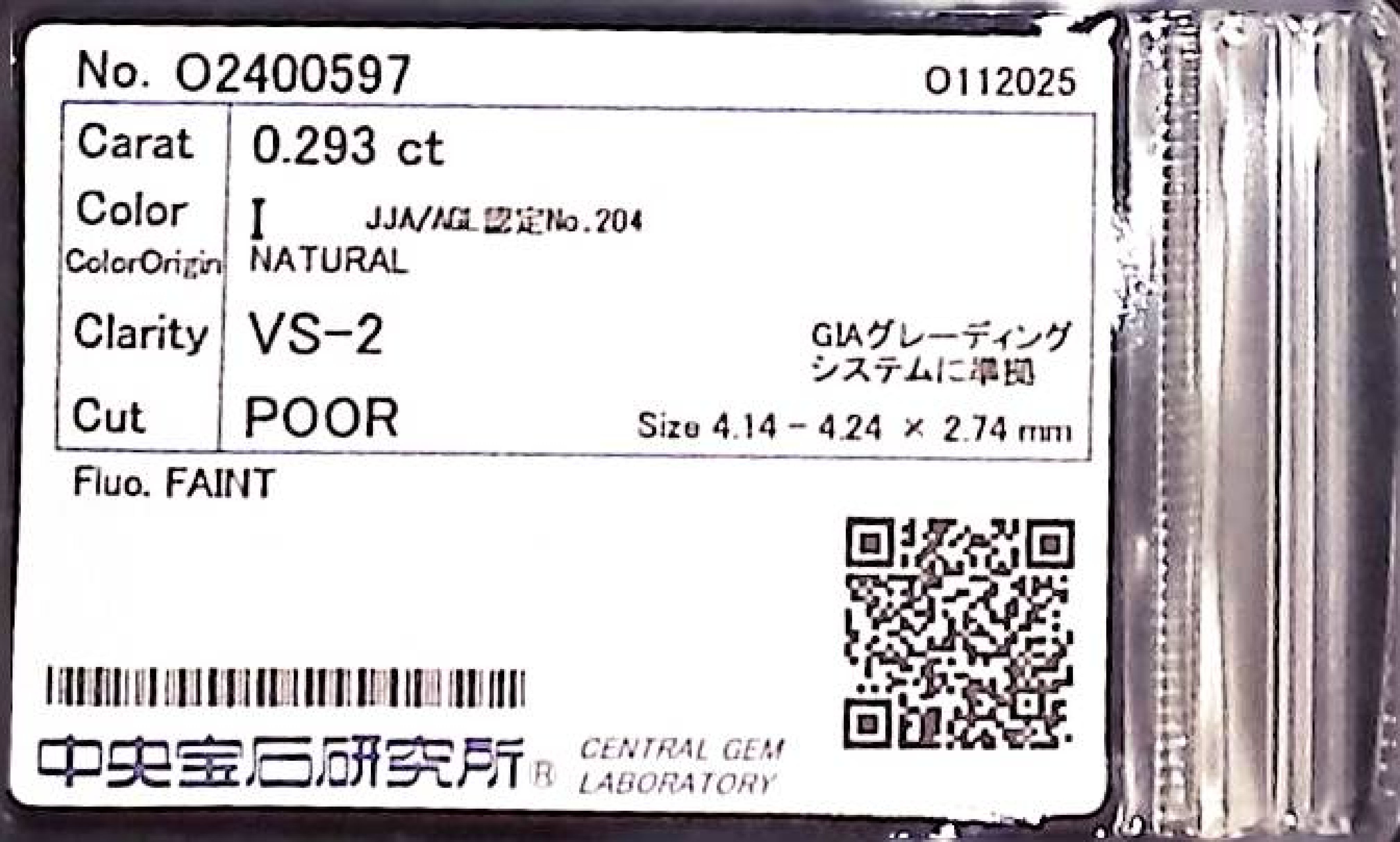 (10980_0149)0.293ct I VS-2 POOR/GD/FR FAINT NATURAL 4.14-4.24X2.74mm ダイヤ・ルース
