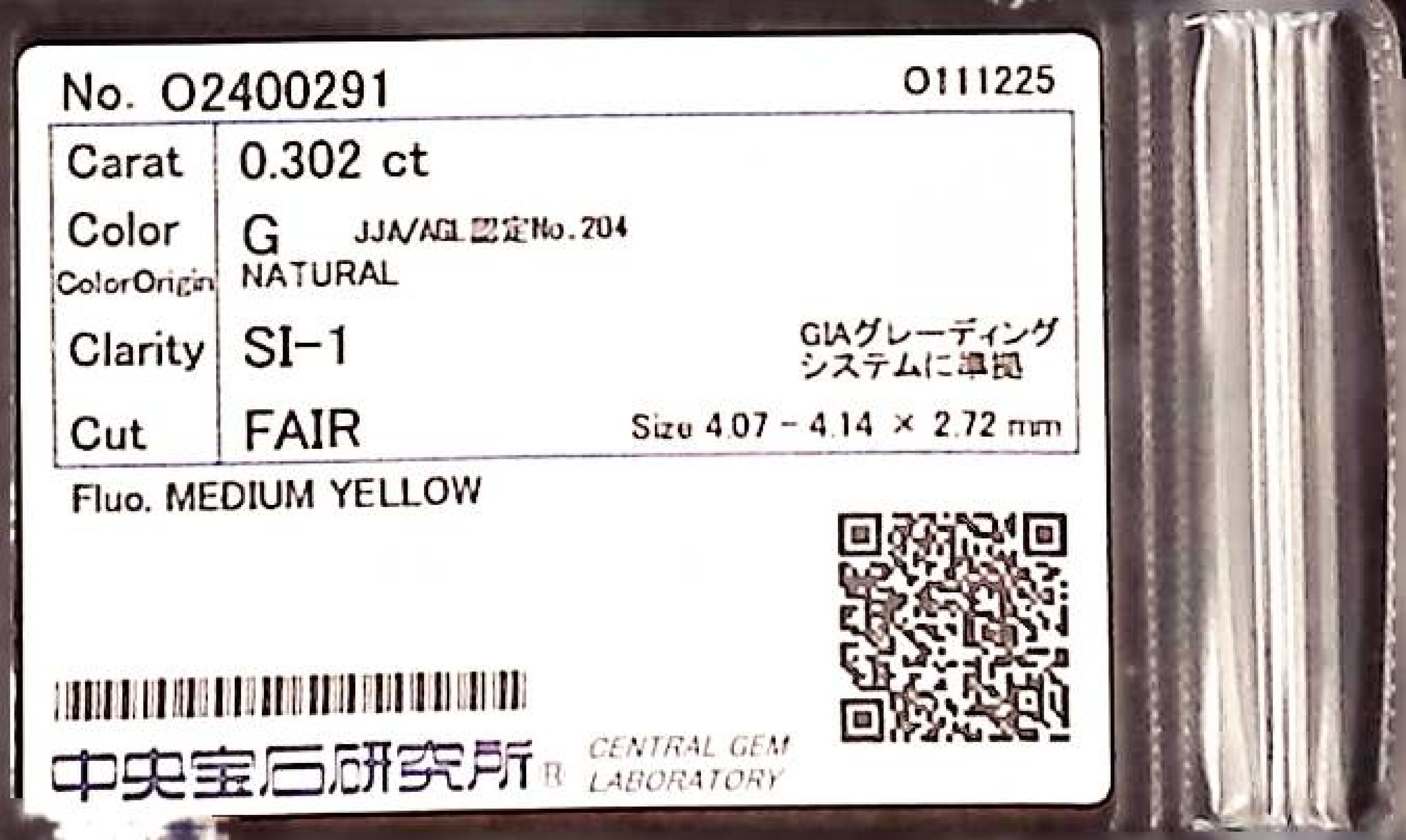 (10980_0168)0.302ct G SI-1 FAIR/GD/FR MEDIUM YELLOW NATURAL 4.07-4.14X2.72mm ダイヤ・ルース