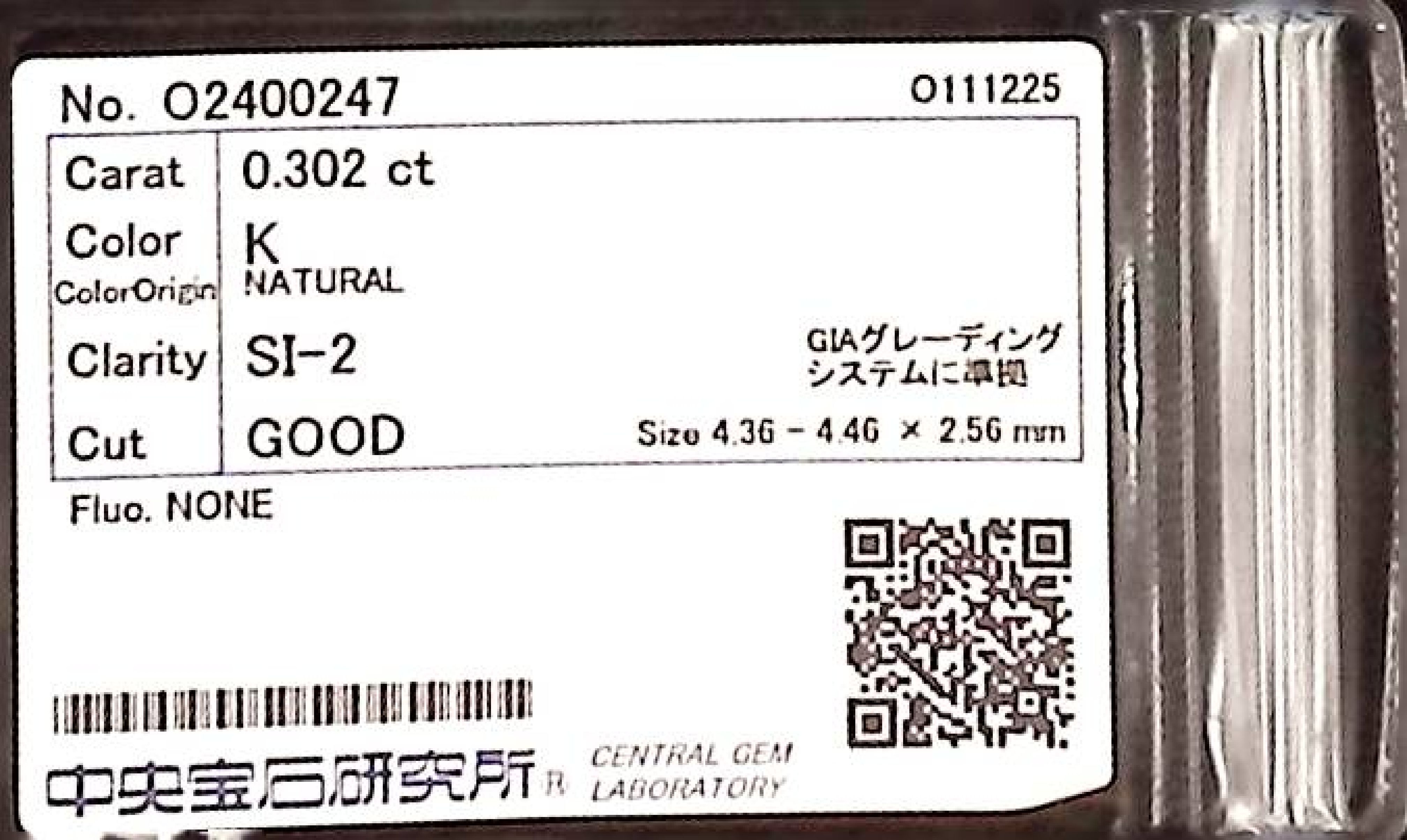 (10980_0169)0.302ct K SI-2 GOOD/GD/GD NONE NATURAL 4.36-4.46X2.56mm ダイヤ・ルース