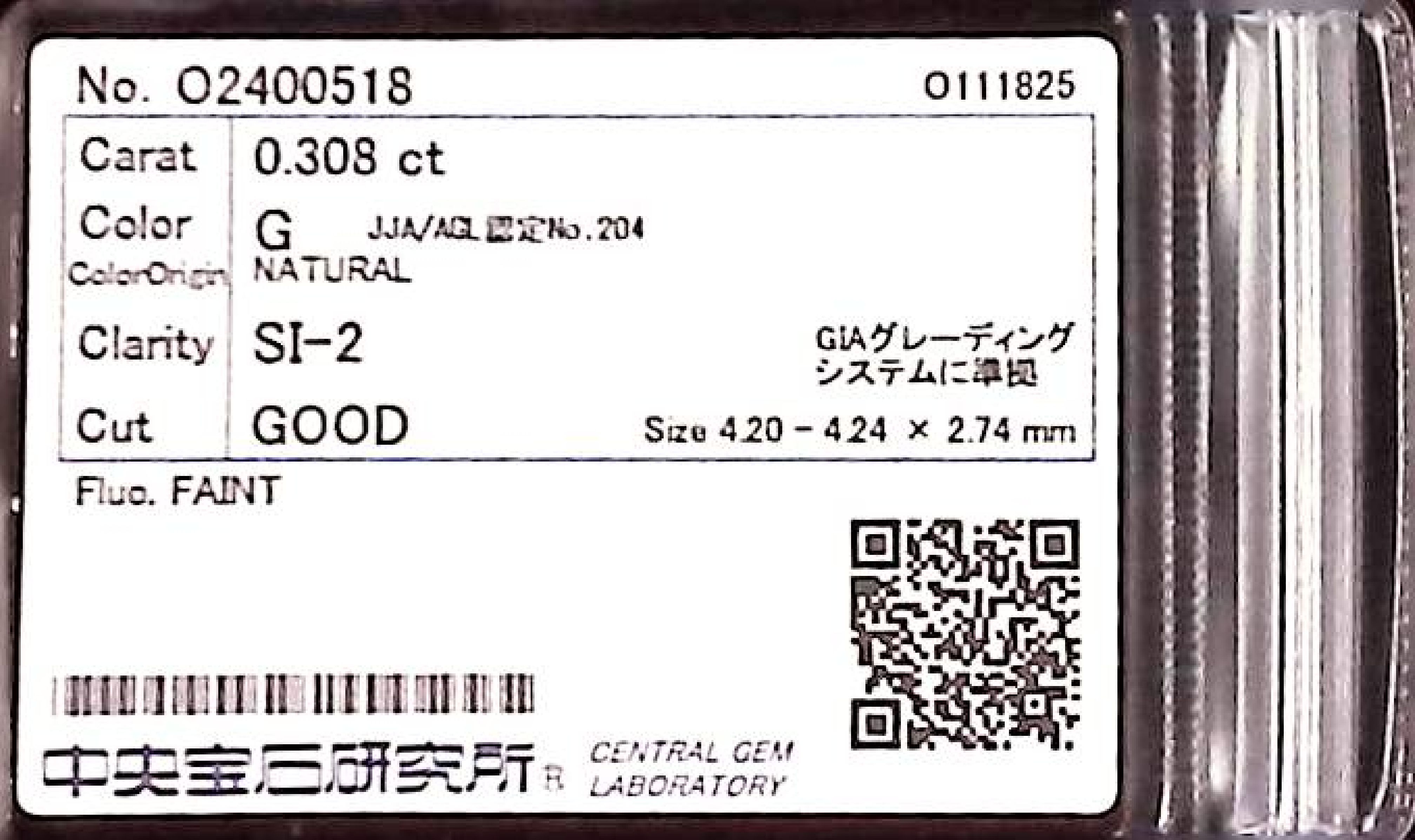 (10980_0184)0.308ct G SI-2 GOOD/GD/GD FAINT NATURAL 4.20-4.24X2.74mm ダイヤ・ルース