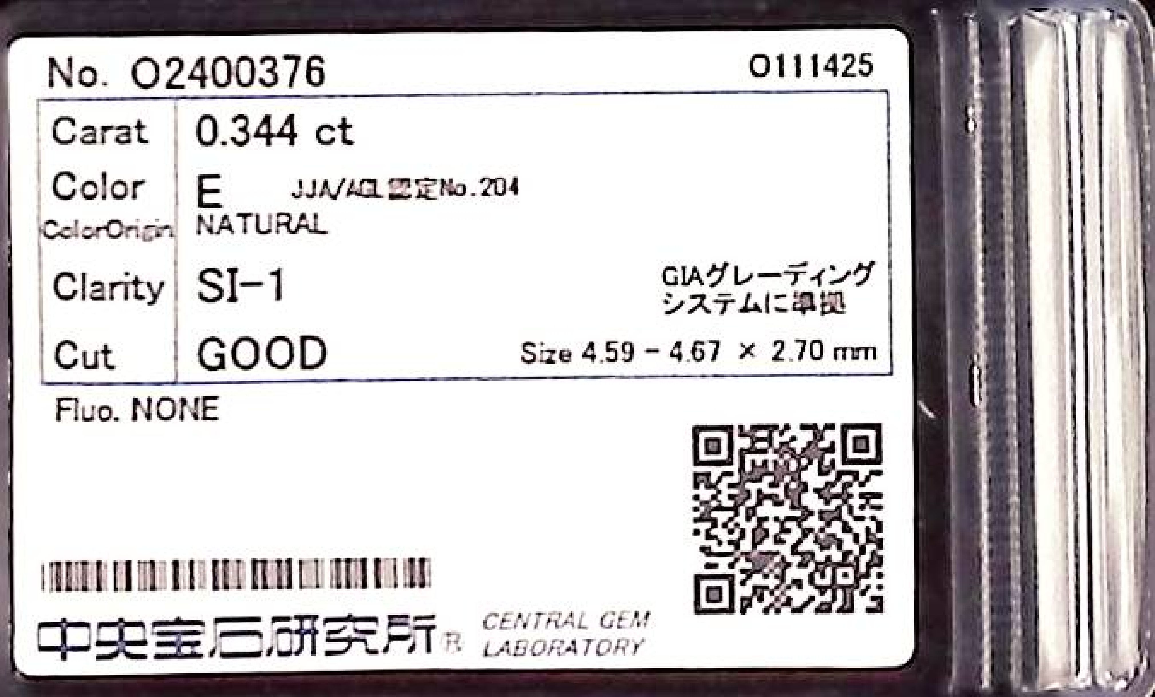 (10980_0261)0.344ct E SI-1 GOOD/VG/FR NONE NATURAL 4.59-4.67X2.70mm ダイヤ・ルース