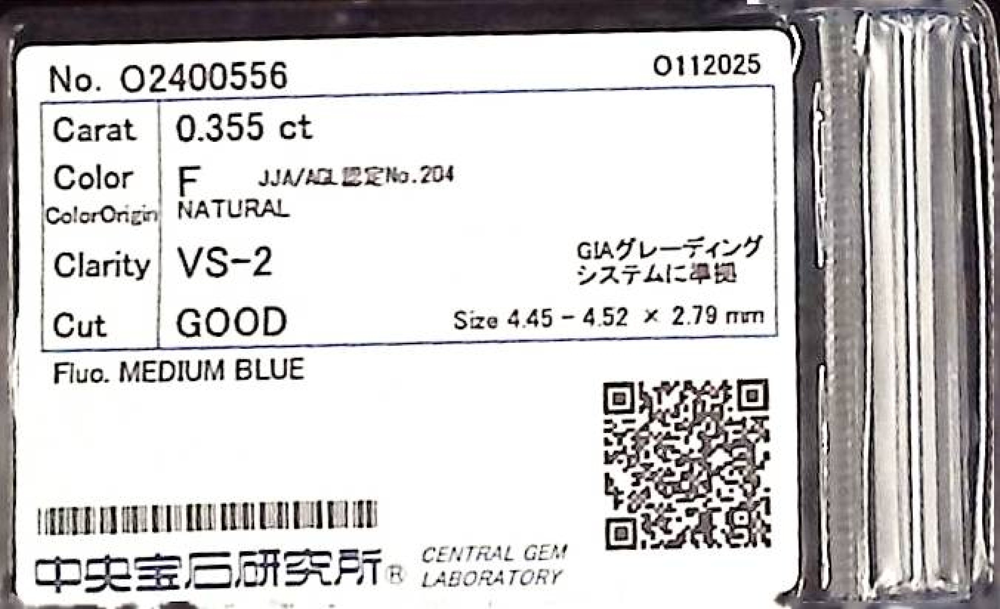 (10980_0281)0.355ct F VS-2 GOOD/GD/FR MEDIUM BLUE NATURAL 4.45-4.52X2.79mm ダイヤ・ルース