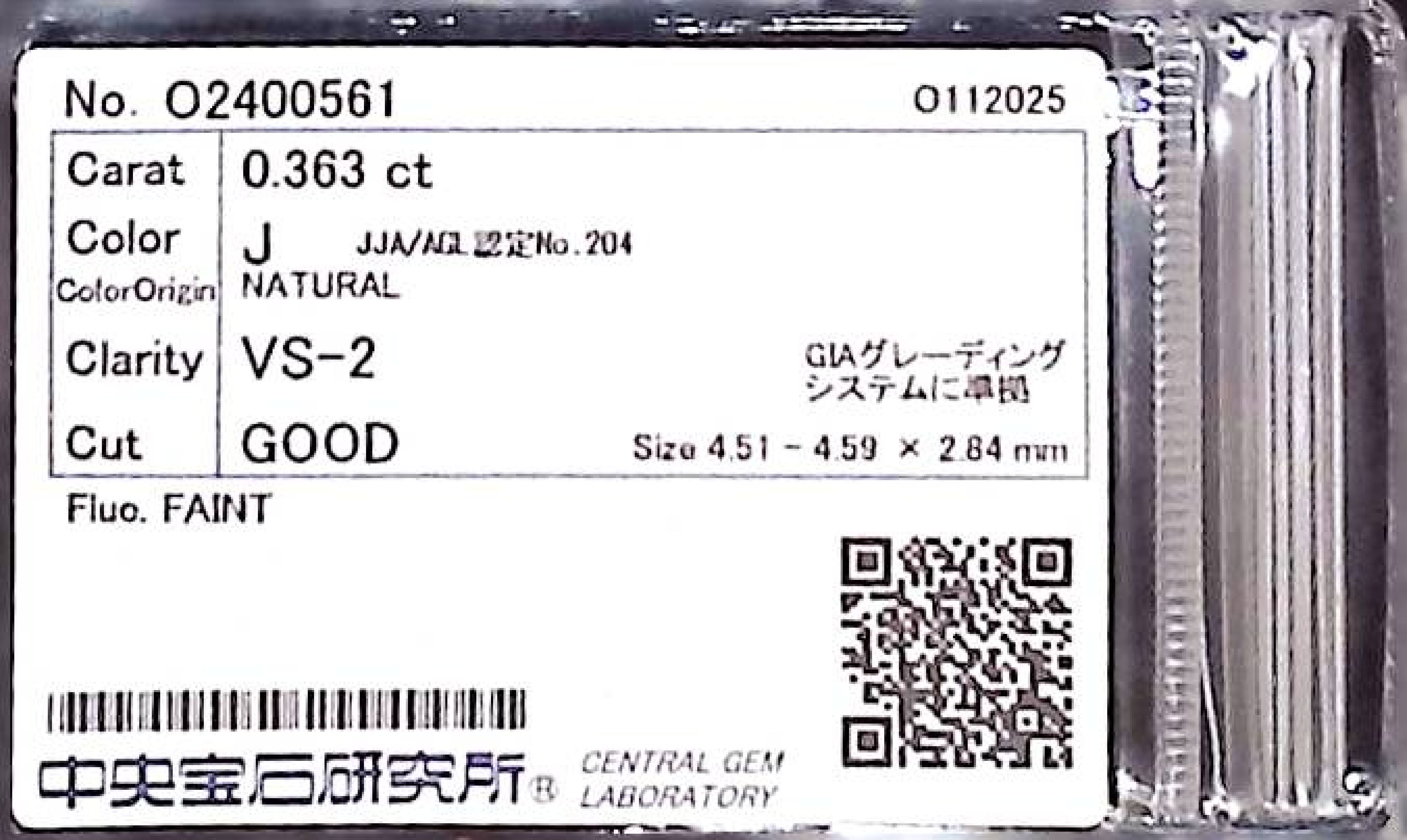 (10980_0293)0.363ct J VS-2 GOOD/GD/GD FAINT NATURAL 4.51-4.59X2.84mm ダイヤ・ルース