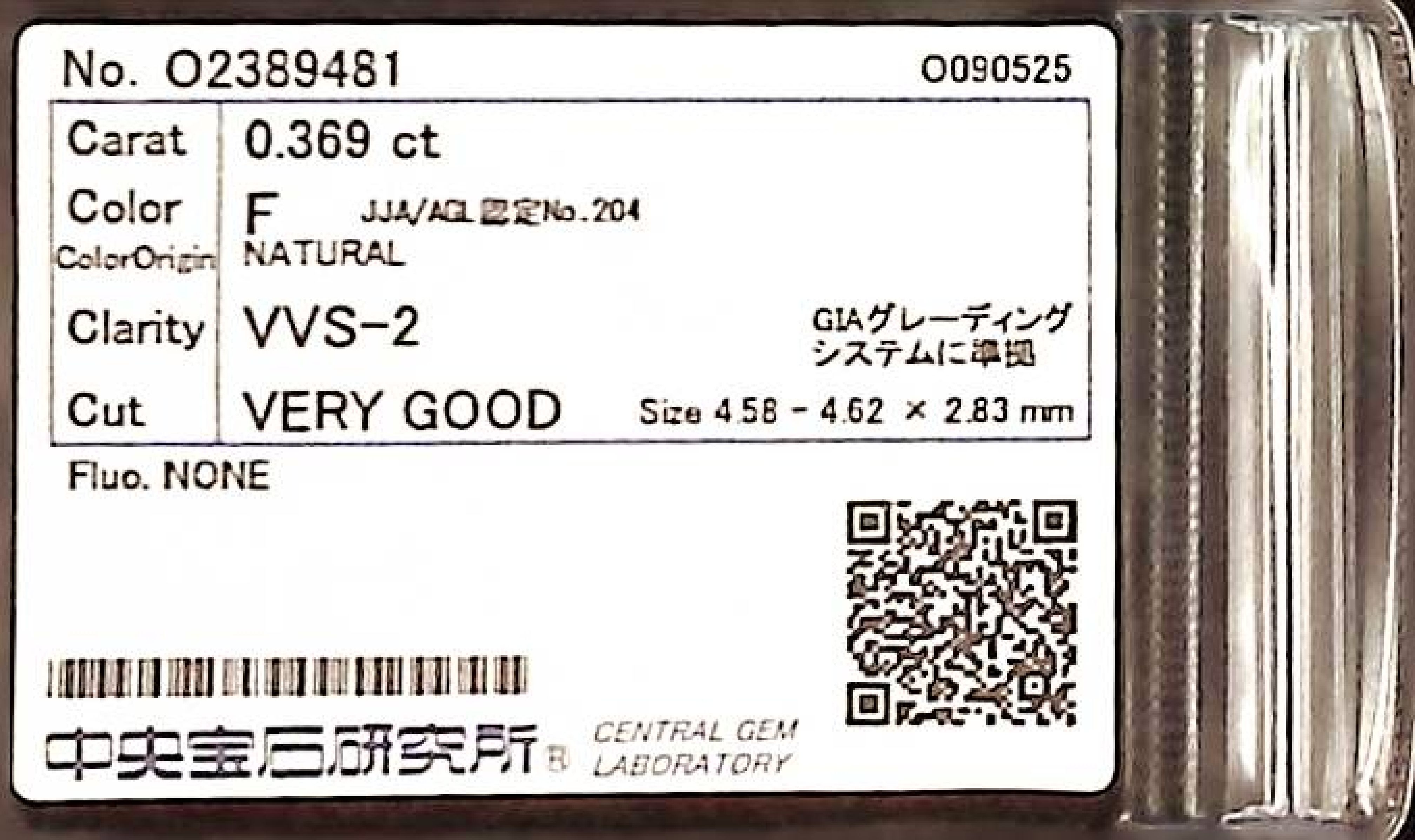 (10980_0300)0.369ct F VVS-2 VERY GOOD/VG/VG NONE NATURAL 4.58-4.62X2.83mm ダイヤ・ルース