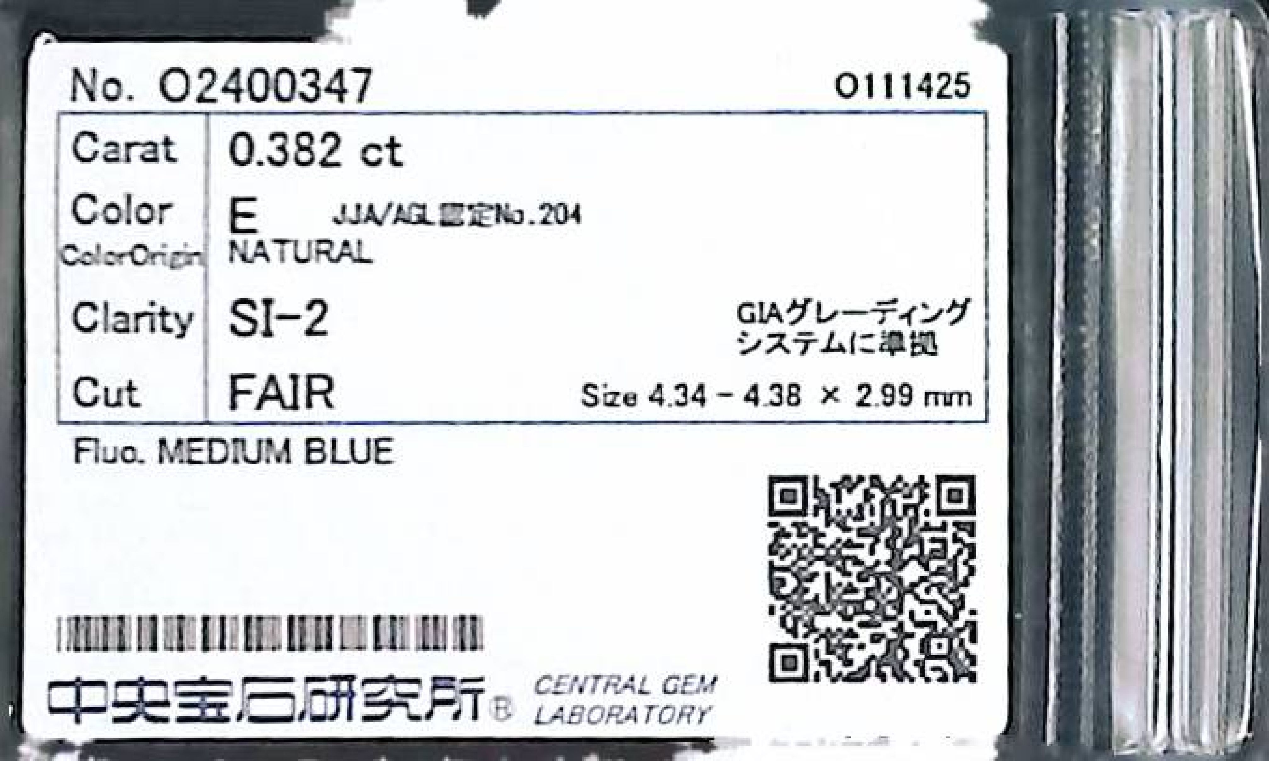 (10980_0319)0.382ct E SI-2 FAIR/GD/FR MEDIUM BLUE NATURAL 4.34-4.38X2.99mm ダイヤ・ルース