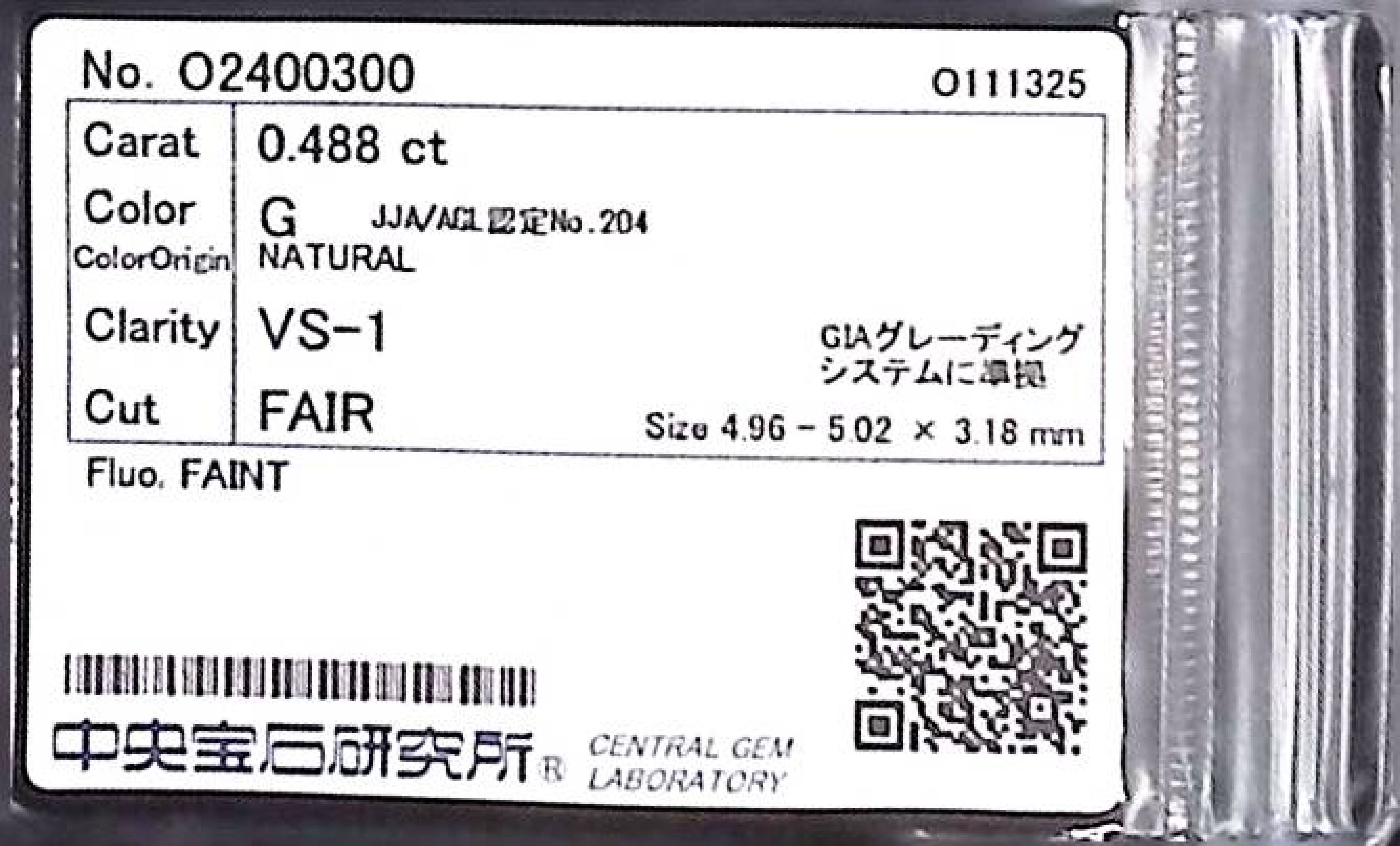 (10980_0405)0.488ct G VS-1 FAIR/GD/GD FAINT NATURAL 4.96-5.02X3.18mm ダイヤ・ルース