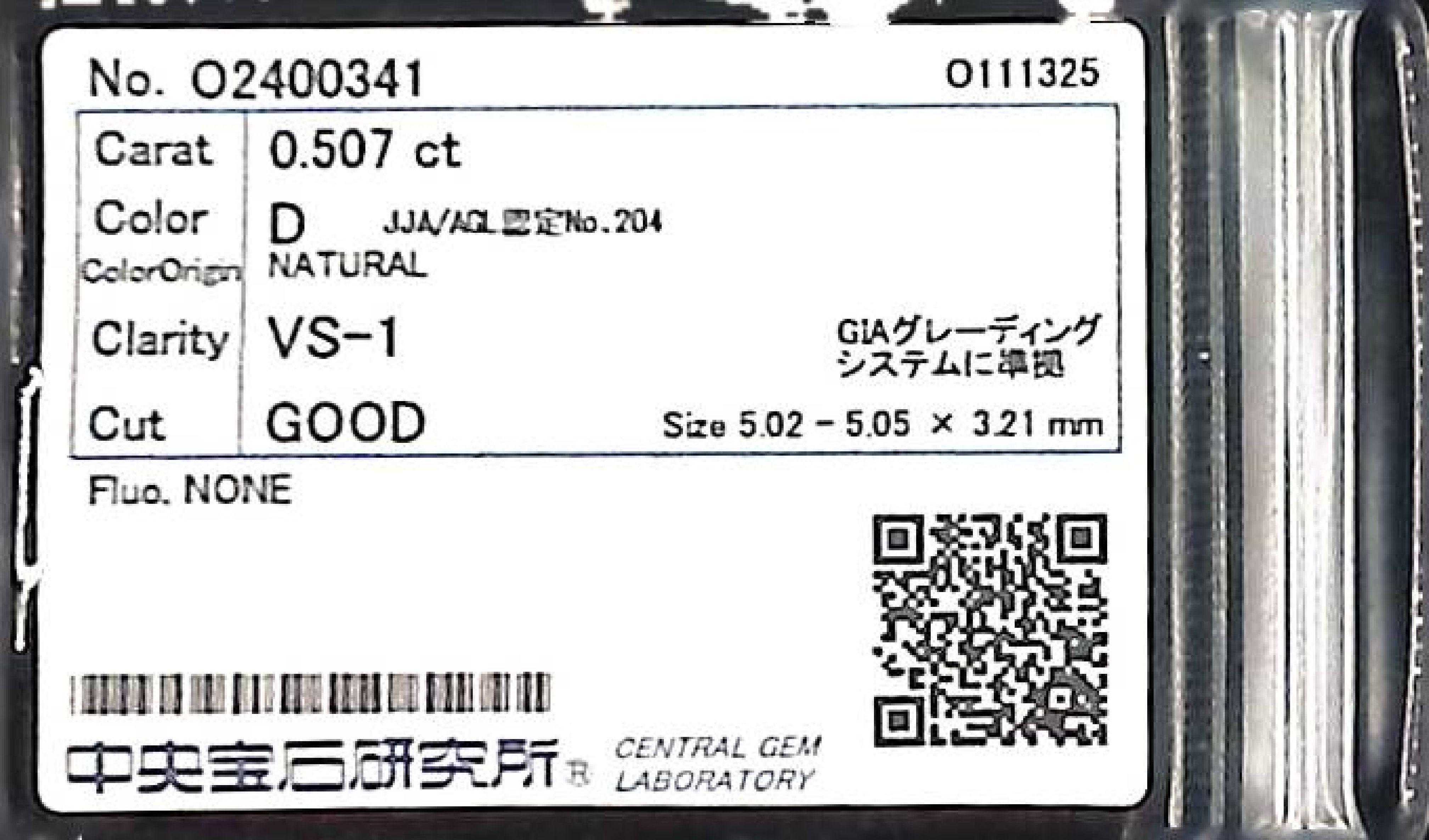 (10980_0421)0.507ct D VS-1 GOOD/VG/GD NONE NATURAL 5.02-5.05X3.21mm ダイヤ・ルース