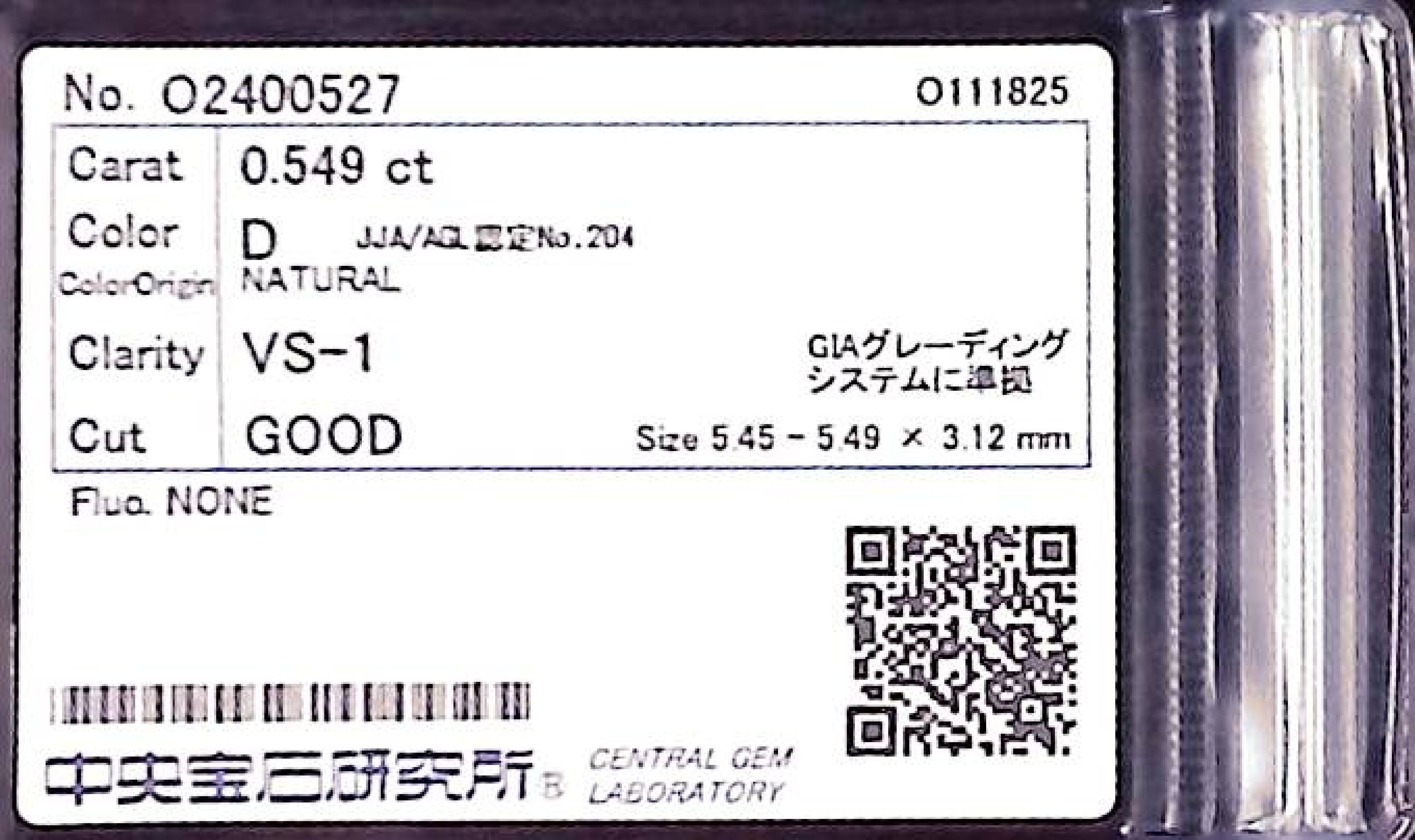 (10980_0450)0.549ct D VS-1 GOOD/GD/GD NONE NATURAL 5.45-5.49X3.12mm ダイヤ・ルース