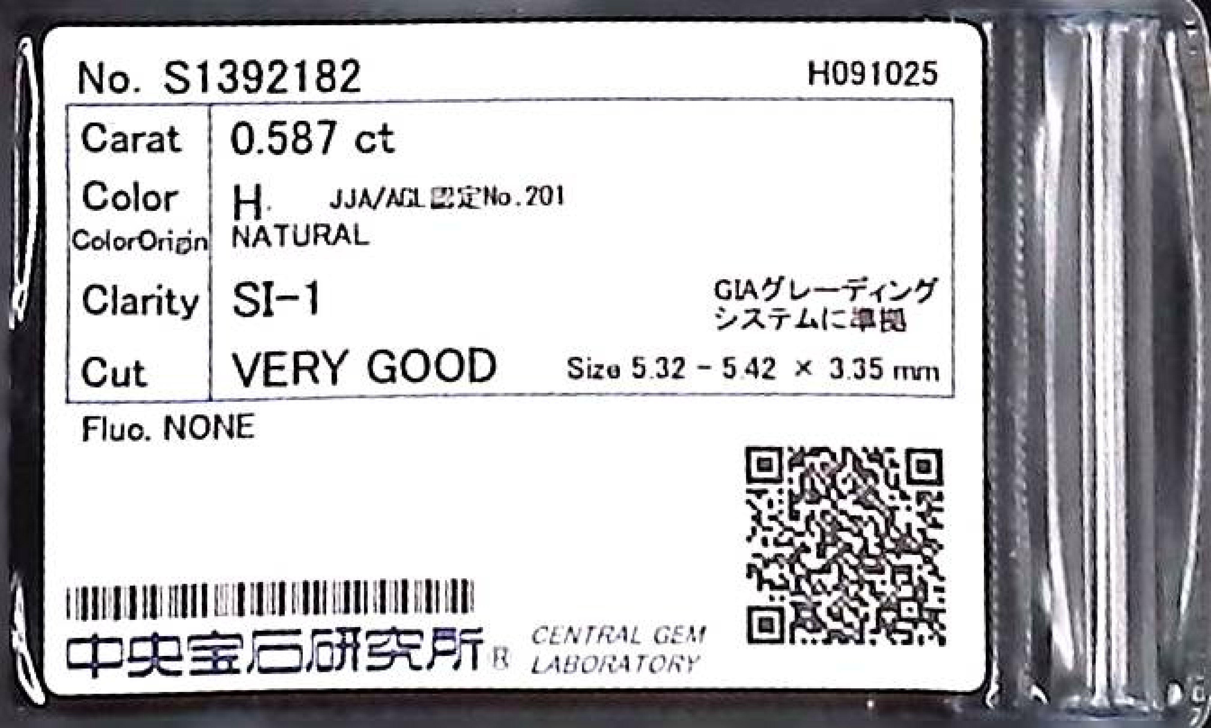 (10980_0470)0.587ct H SI-1 VERY GOOD/VG/GD NONE NATURAL 5.32-5.42X3.35mm ダイヤ・ルース