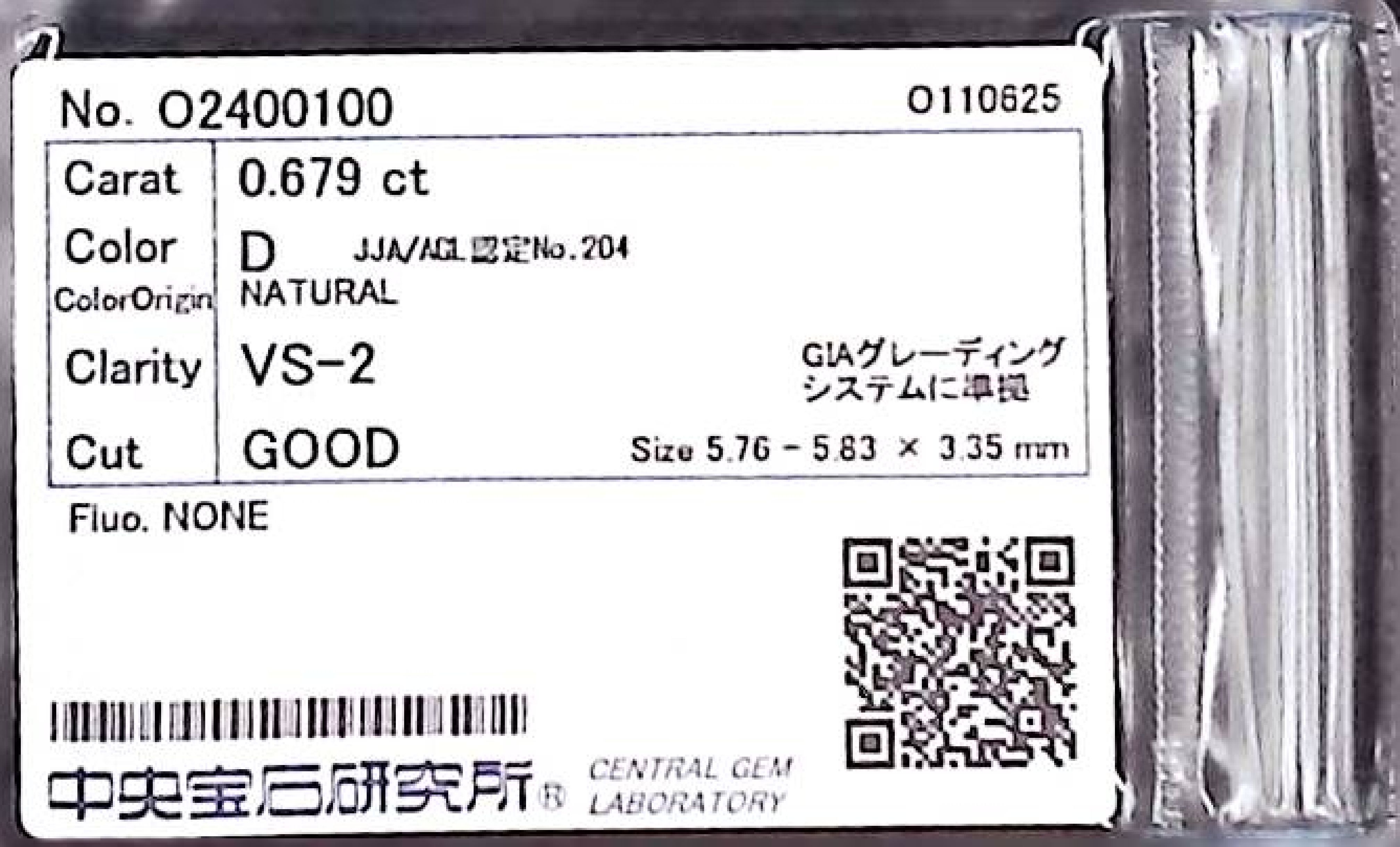 (10980_0493)0.679ct D VS-2 GOOD/GD/GD NONE NATURAL 5.76-5.83X3.35mm ダイヤ・ルース