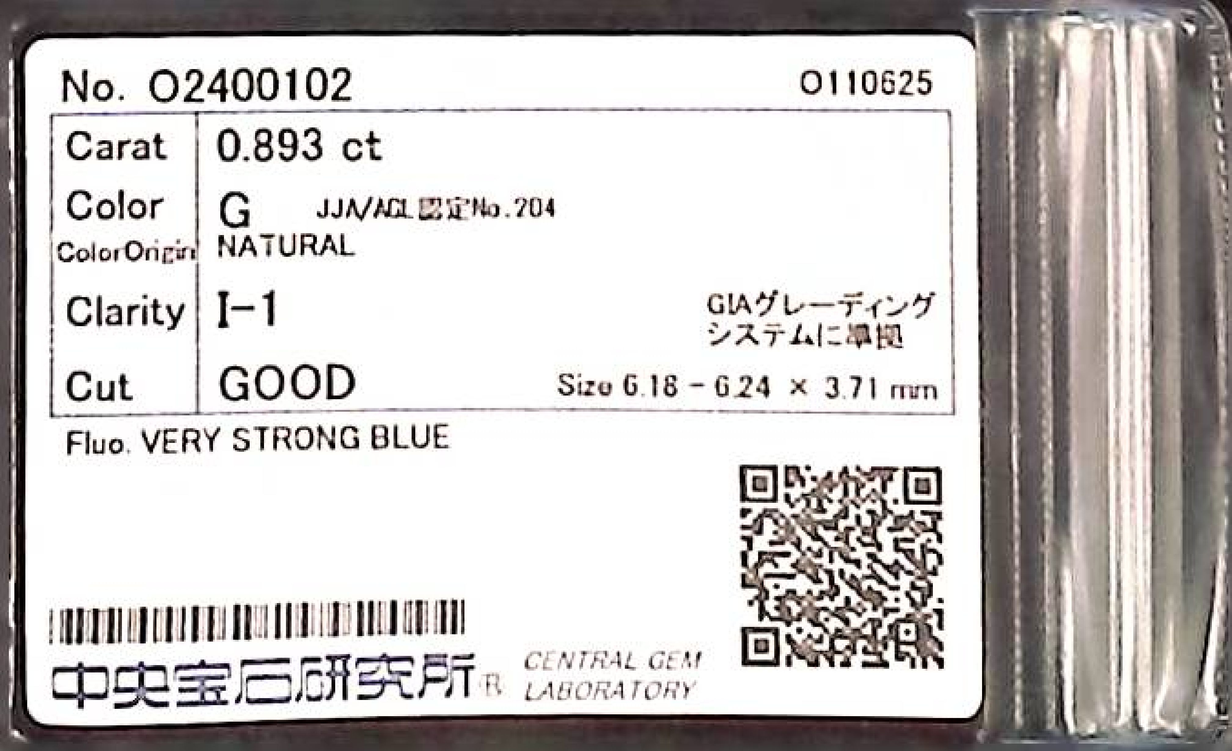 (10980_0528)0.893ct G I-1 GOOD/GD/FR VERY STRONG BLUE NATURAL 6.18-6.24X3.71mm ダイヤ・ルース
