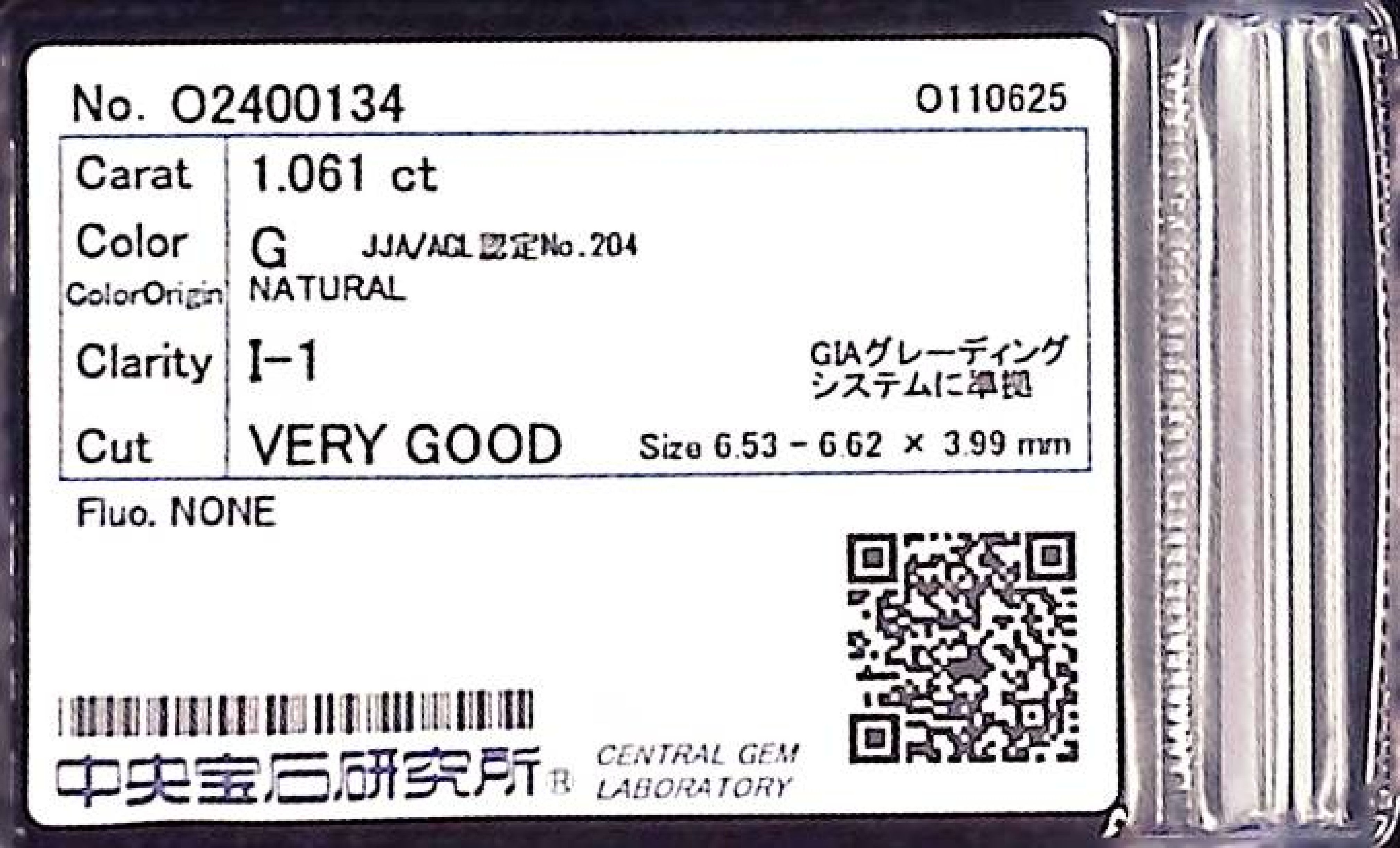 (10980_0573)1.061ct G I-1 VERY GOOD/GD/GD NONE NATURAL 6.53-6.62X3.99mm ダイヤ・ルース