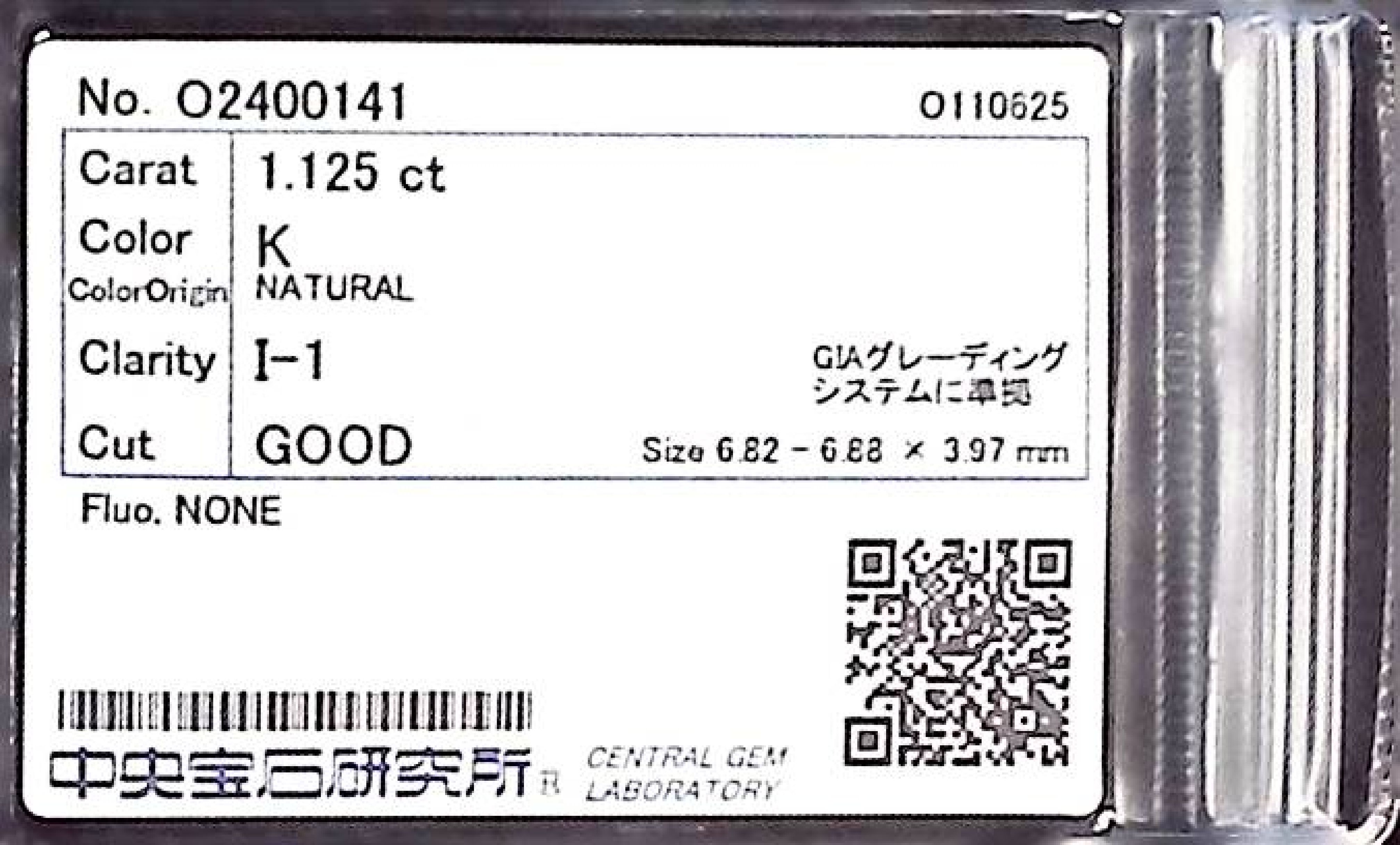 (10980_0583)1.125ct K I-1 GOOD/GD/GD NONE NATURAL 6.82-6.88X3.97mm ダイヤ・ルース