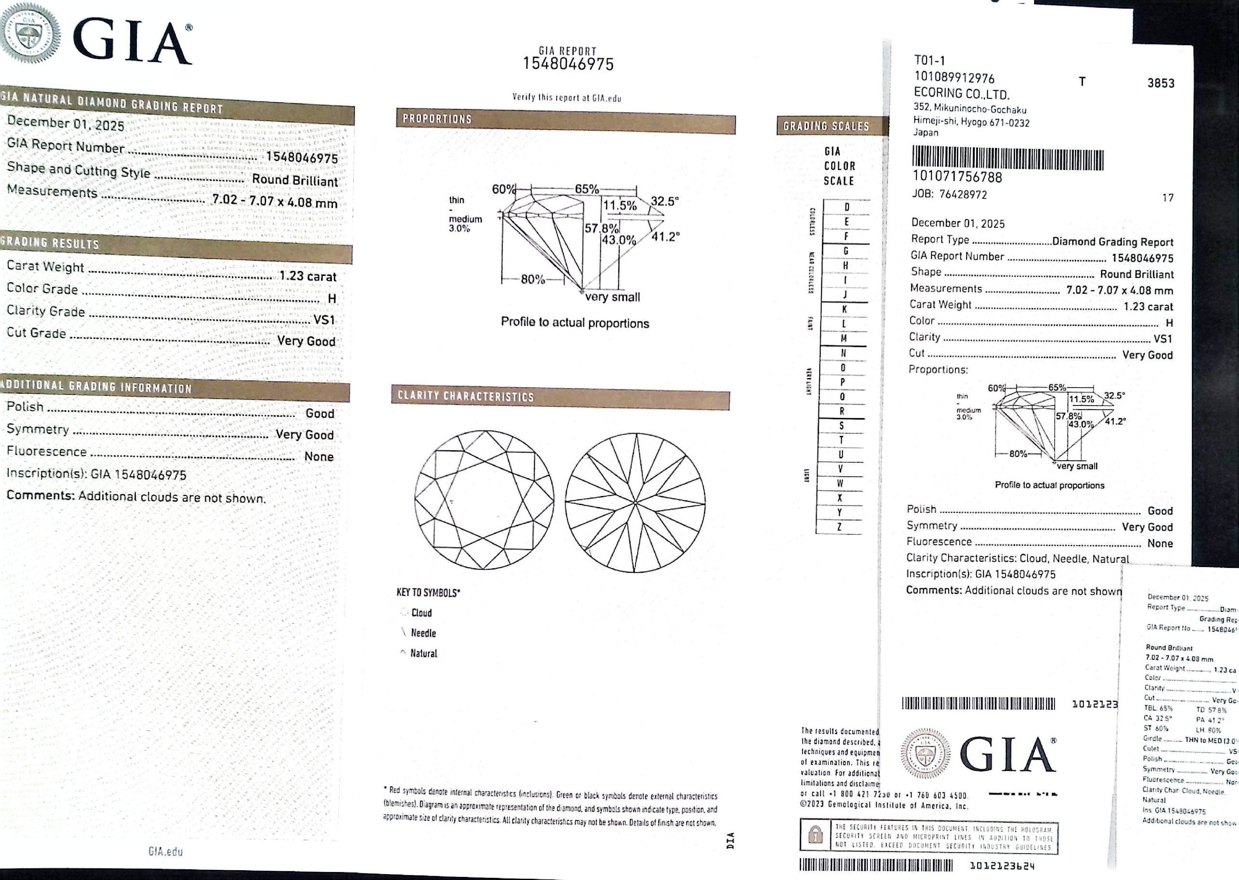 (10980_0591)1.23ct H VS-1 Very Good/GD/VG None NATURAL 7.02-7.07X4.08mm GIA ダイヤ・ルース