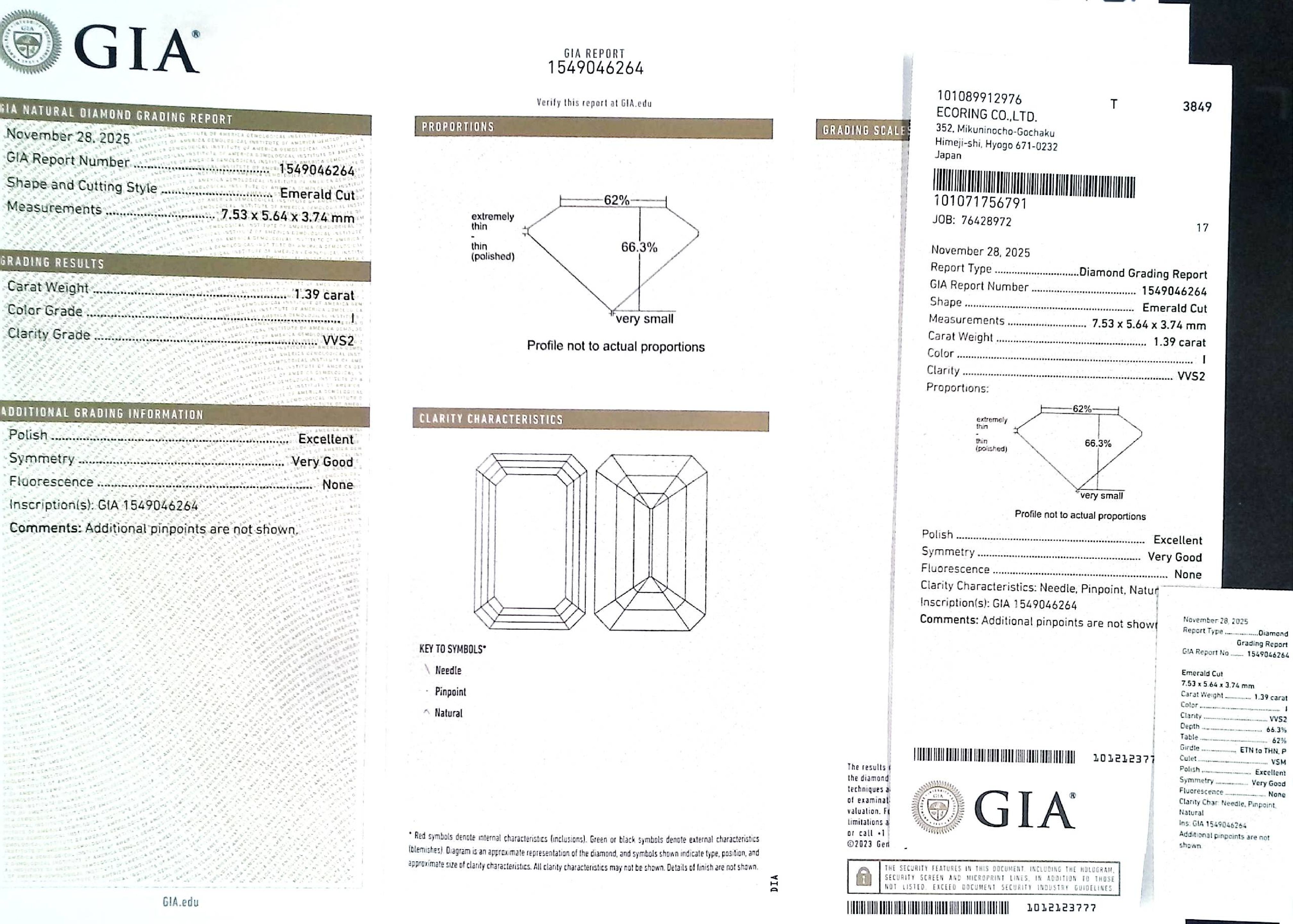 (10980_0594)1.39ct I VVS-2 ****/EX/VG None NATURAL 7.53X5.64X3.74mm GIA ダイヤ・ルース