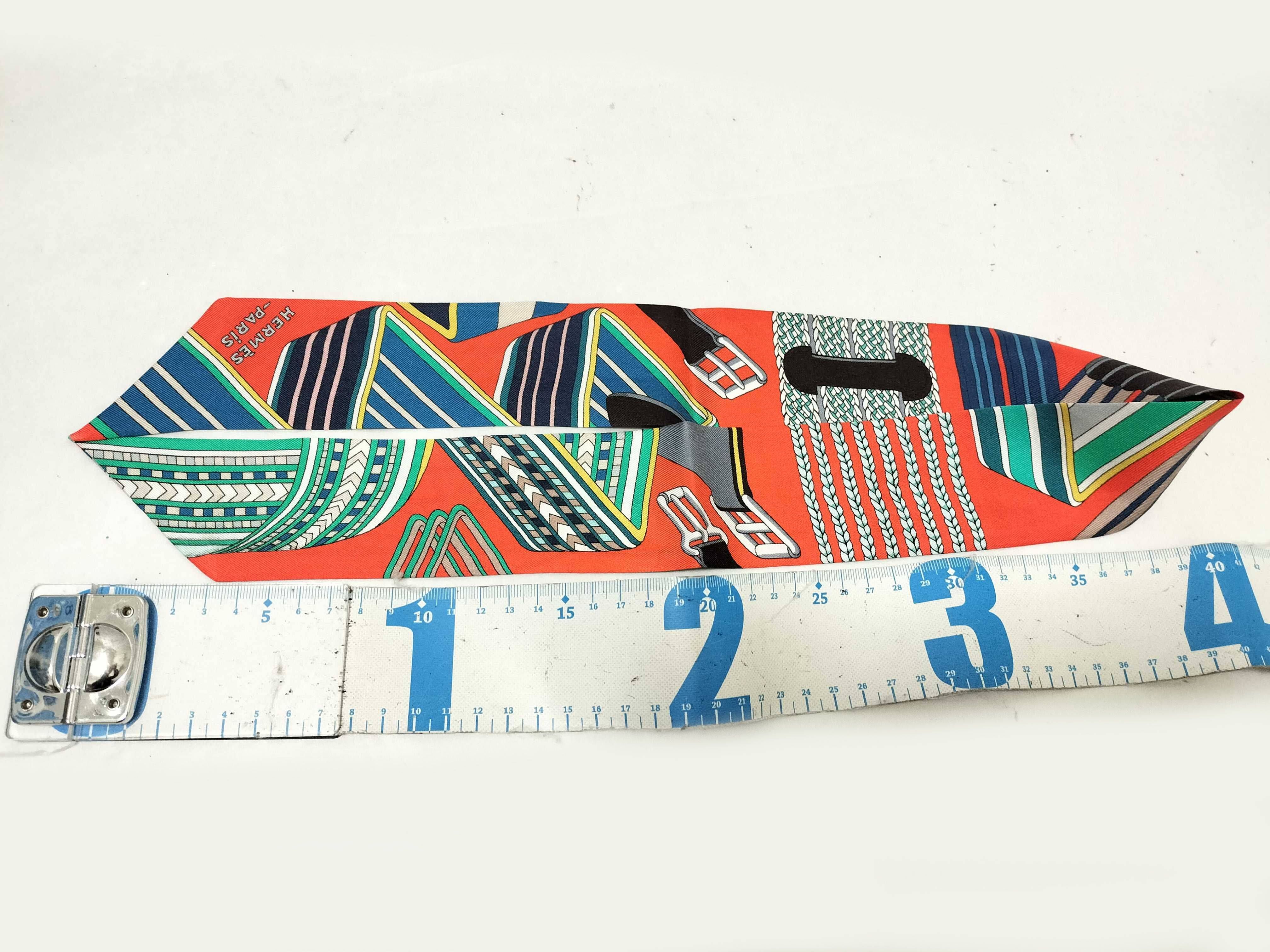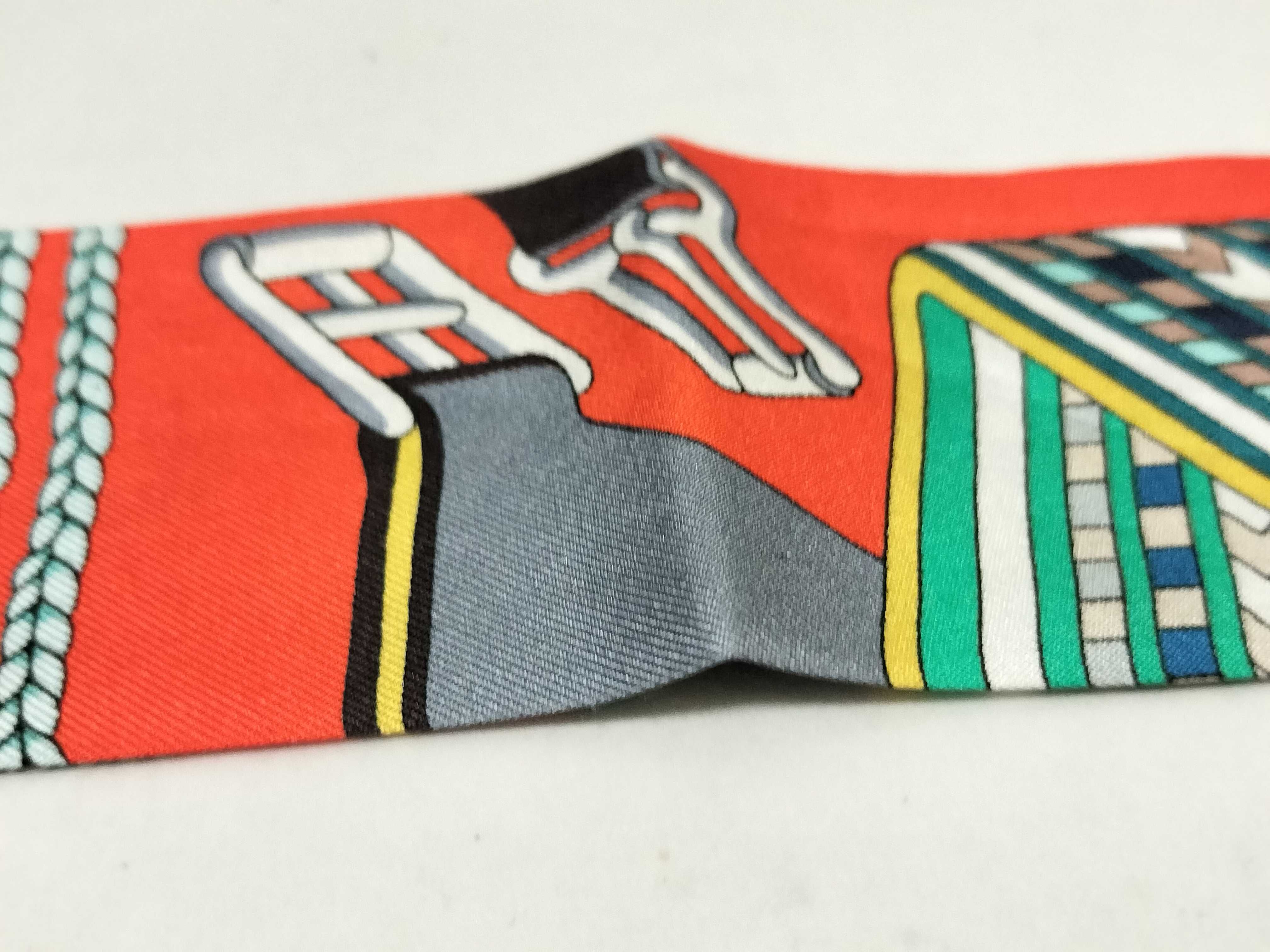 (10976_0008)HERMES ツイリー エルメス/リボンスカーフ/ツイリー/SANGLES EN ZIGZAG/ジグザグのサングル/マルチカラー/タグ無 その他小物