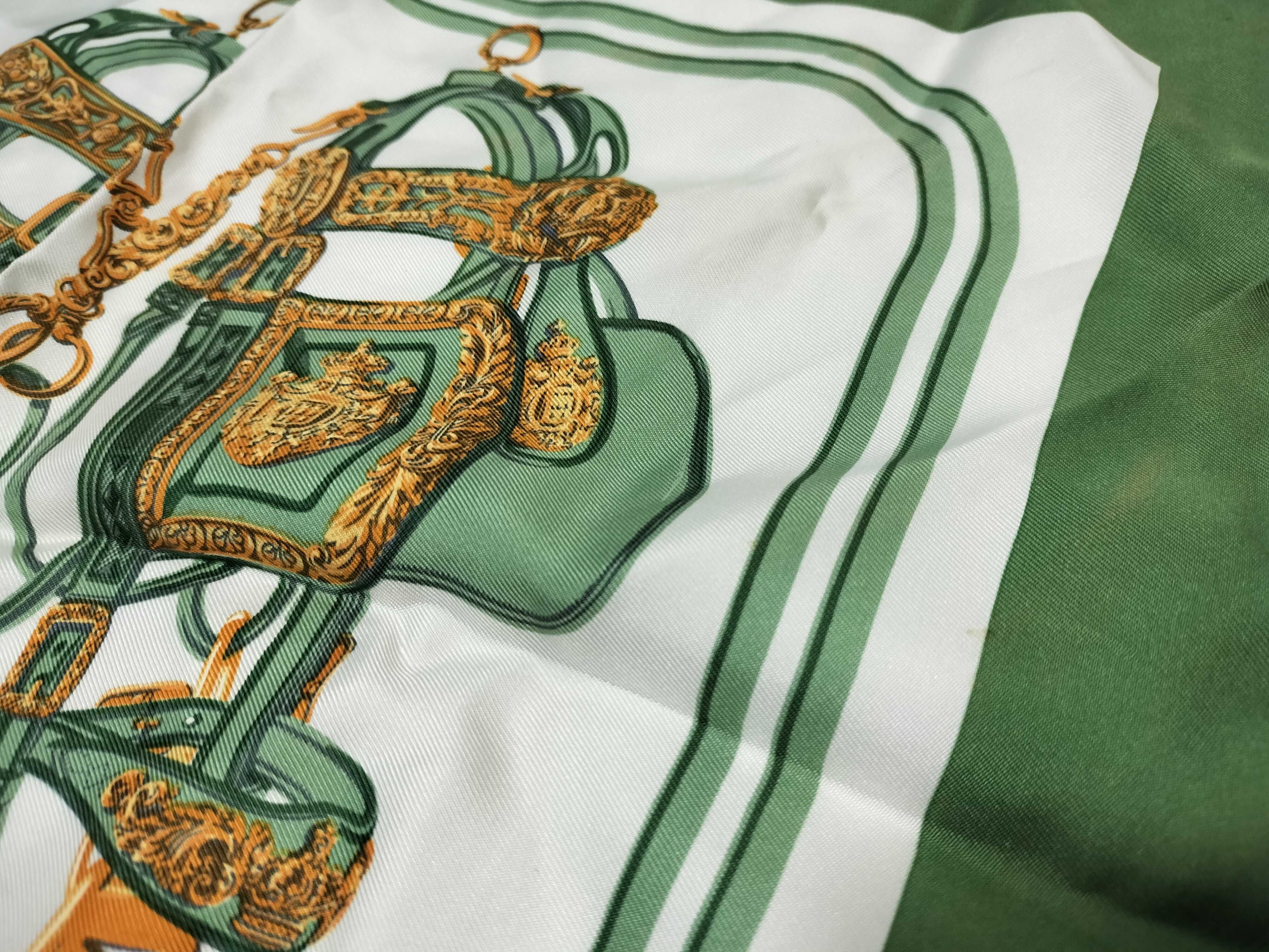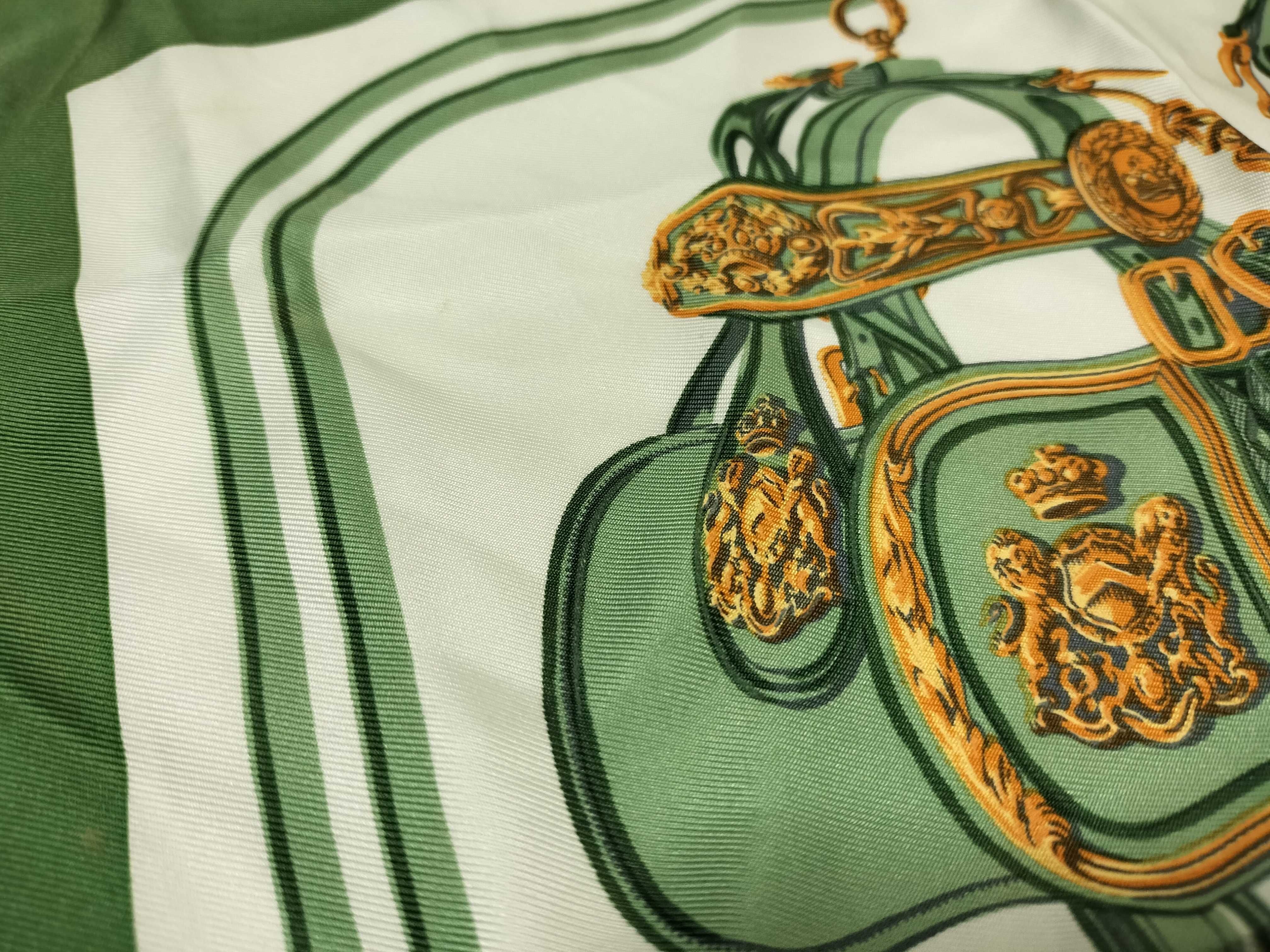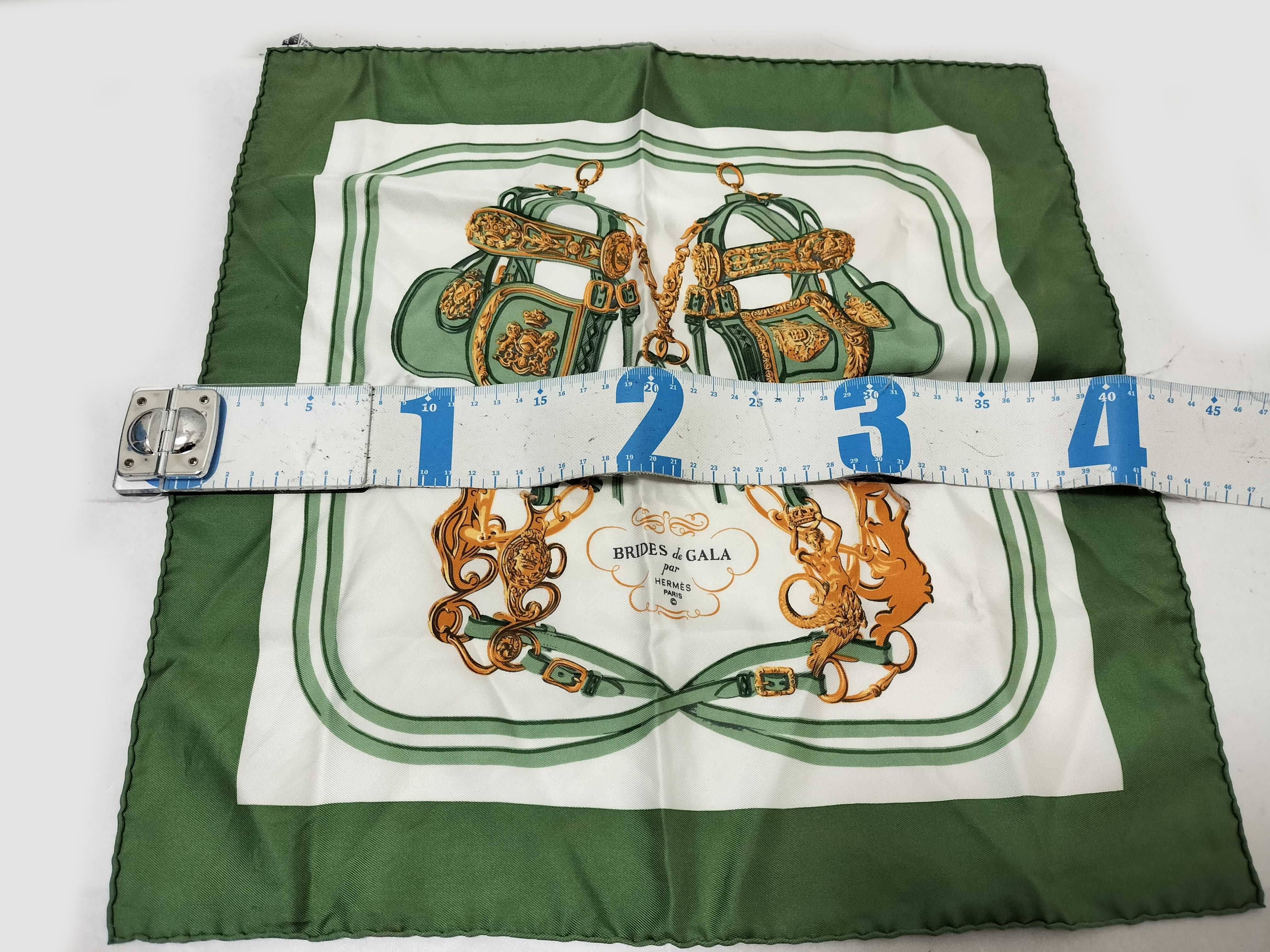 (10976_0015)HERMES エルメス/プチスカーフ/カレ40/BRIDES de GALA/式典用馬勒/シルク100%/グリーン/タグ有 その他小物