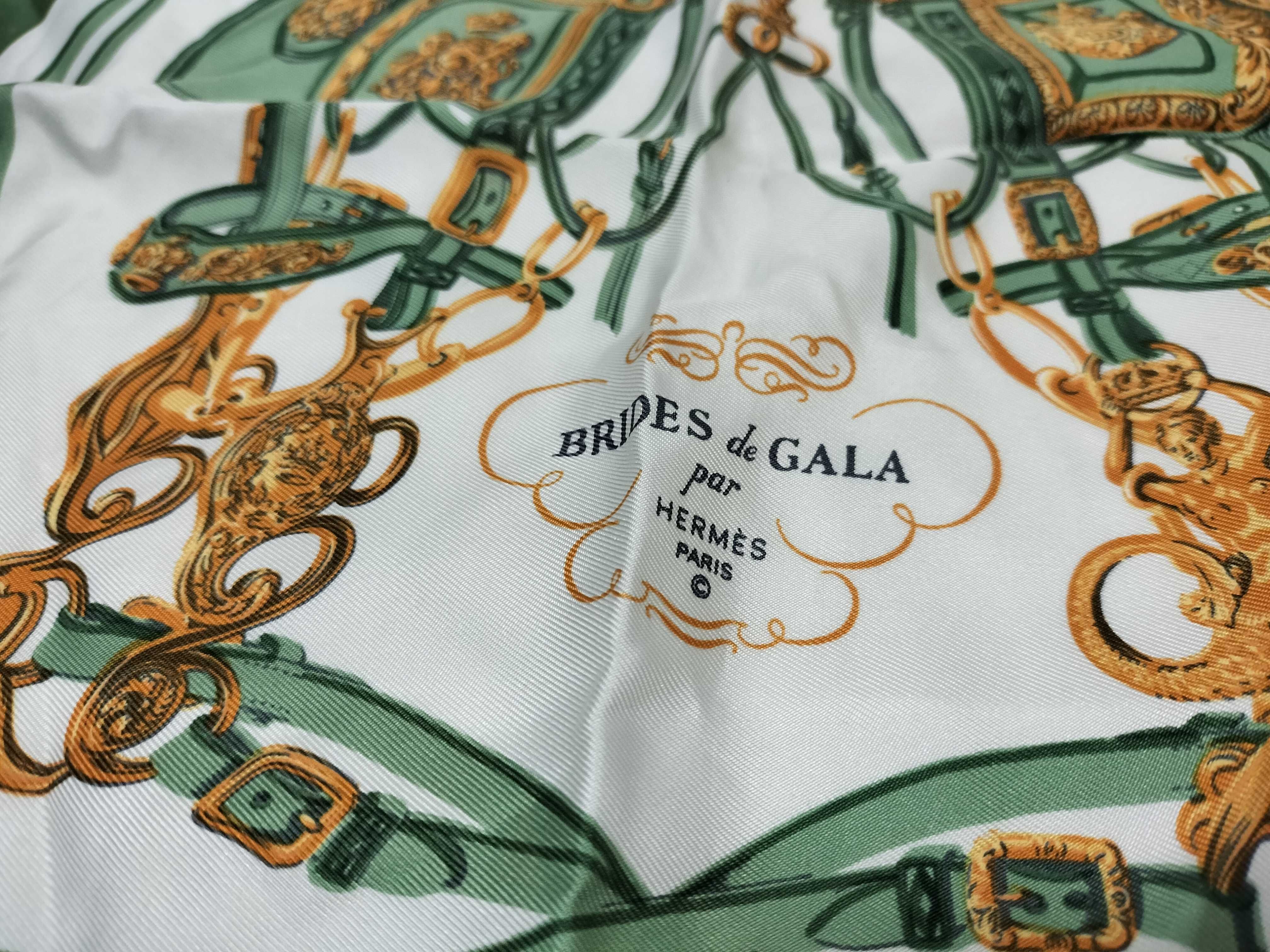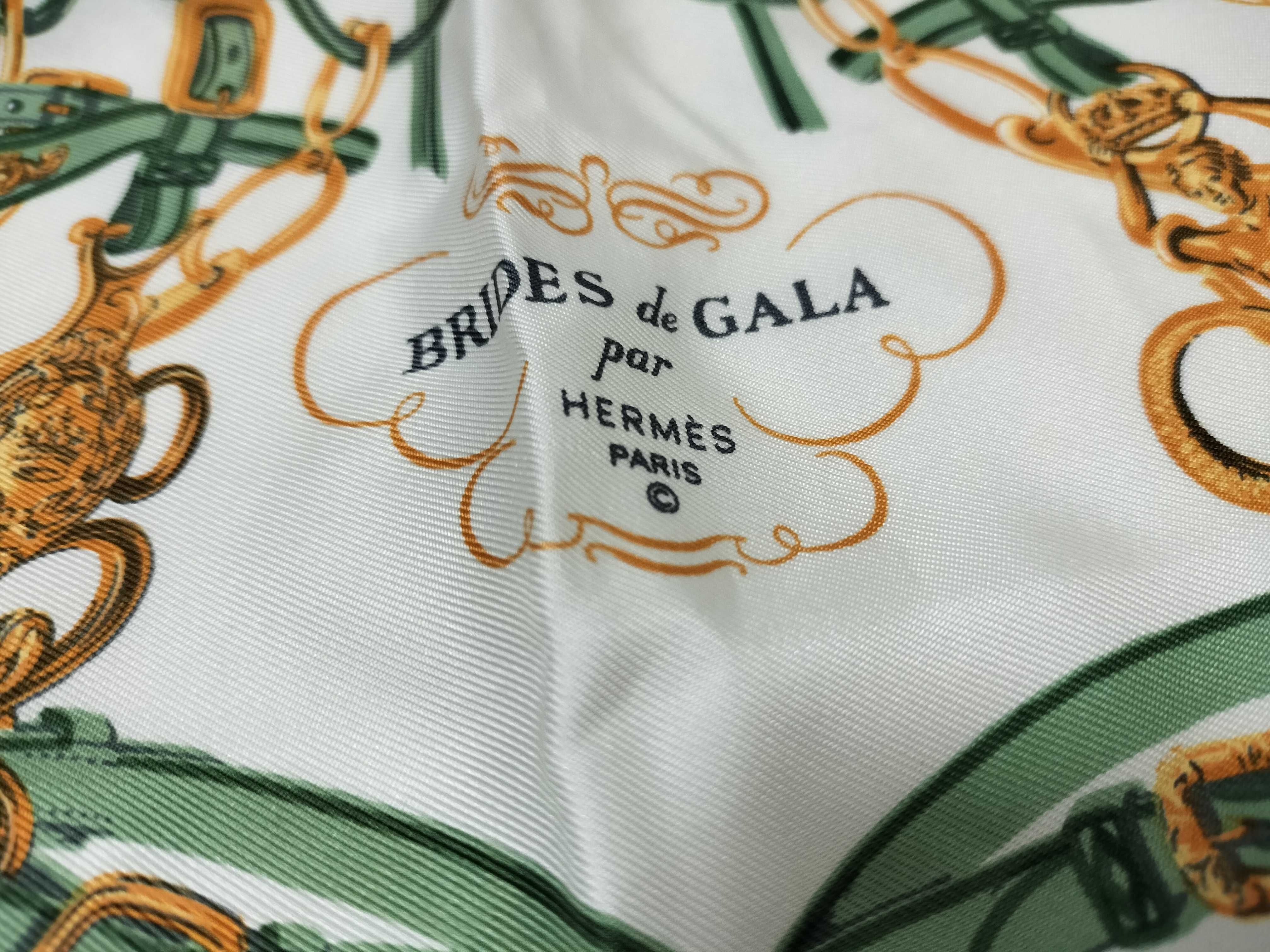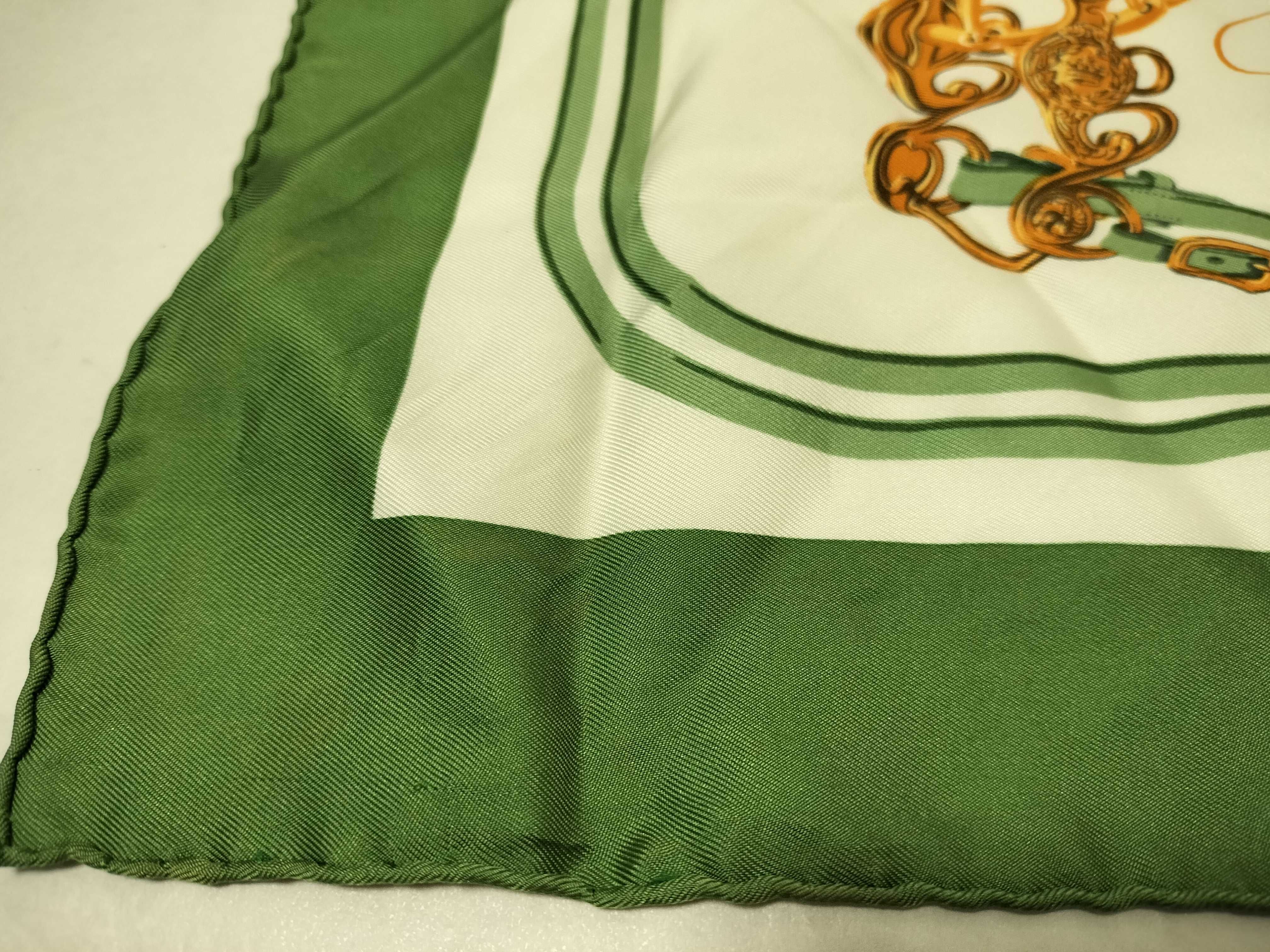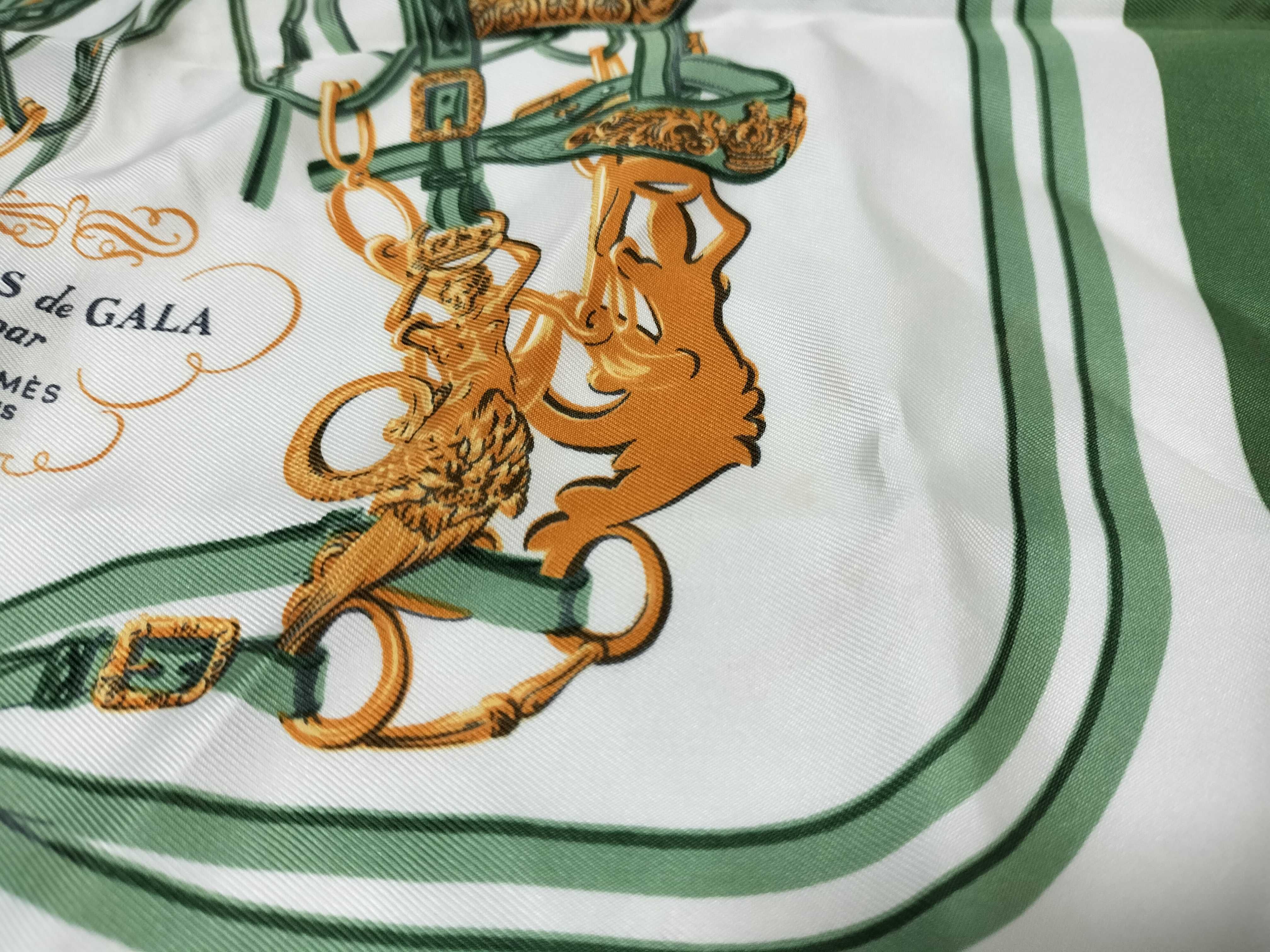 (10976_0015)HERMES エルメス/プチスカーフ/カレ40/BRIDES de GALA/式典用馬勒/シルク100%/グリーン/タグ有 その他小物