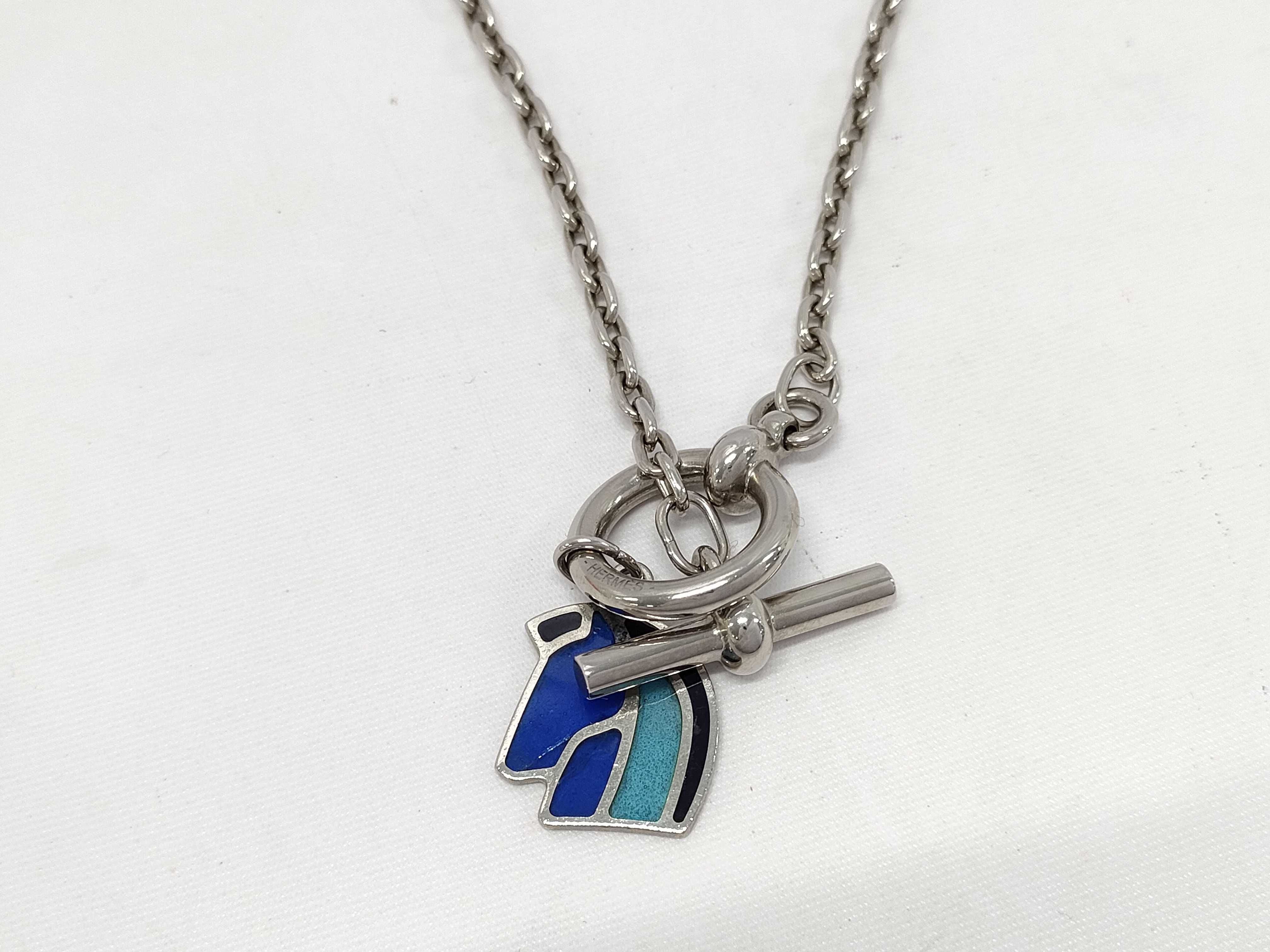 (10976_0052)HERMES エルメス エリオスフェールアシュヴァル GD1222 ネックレス メタル ブルー×シルバー ネックレス