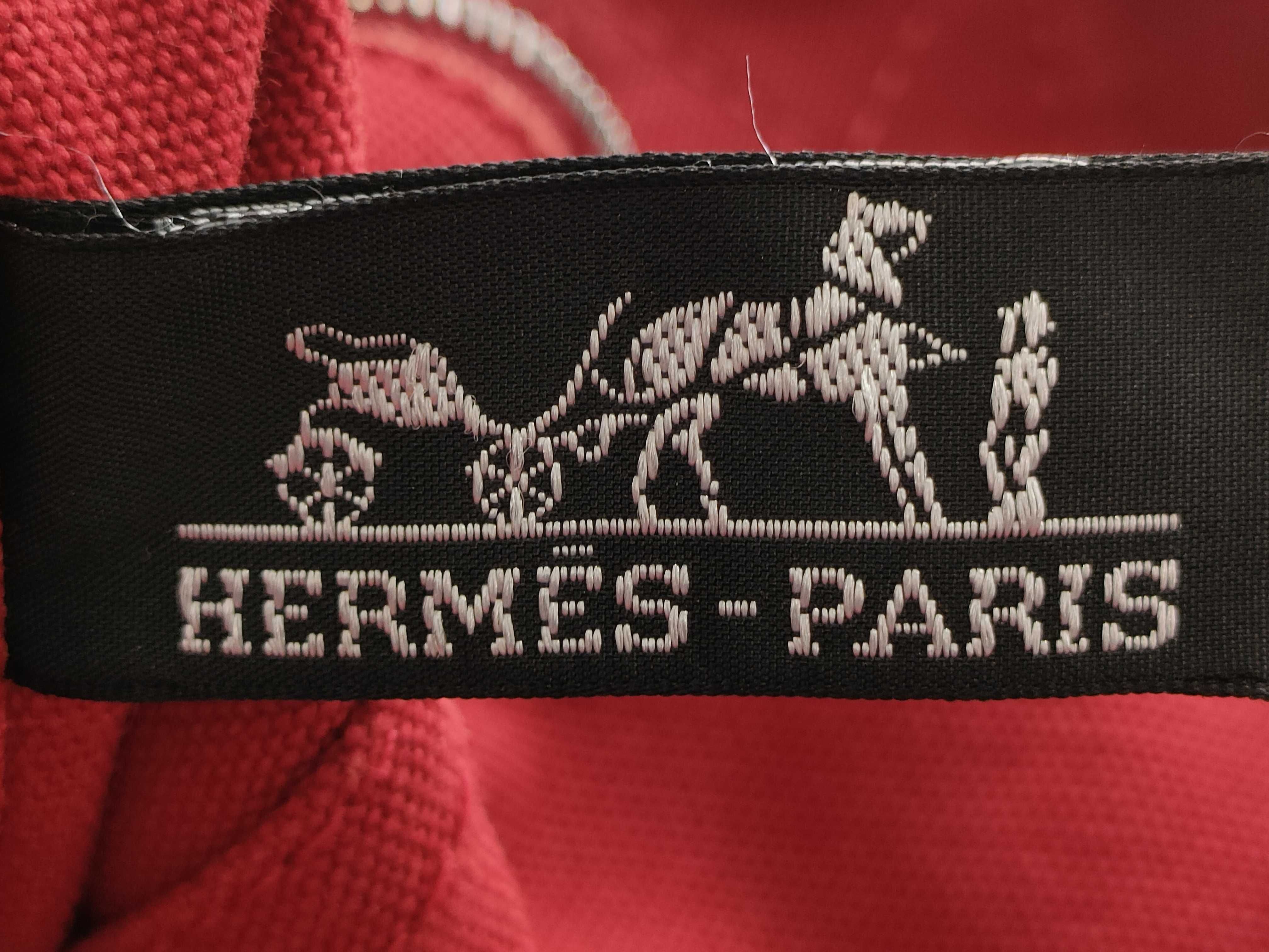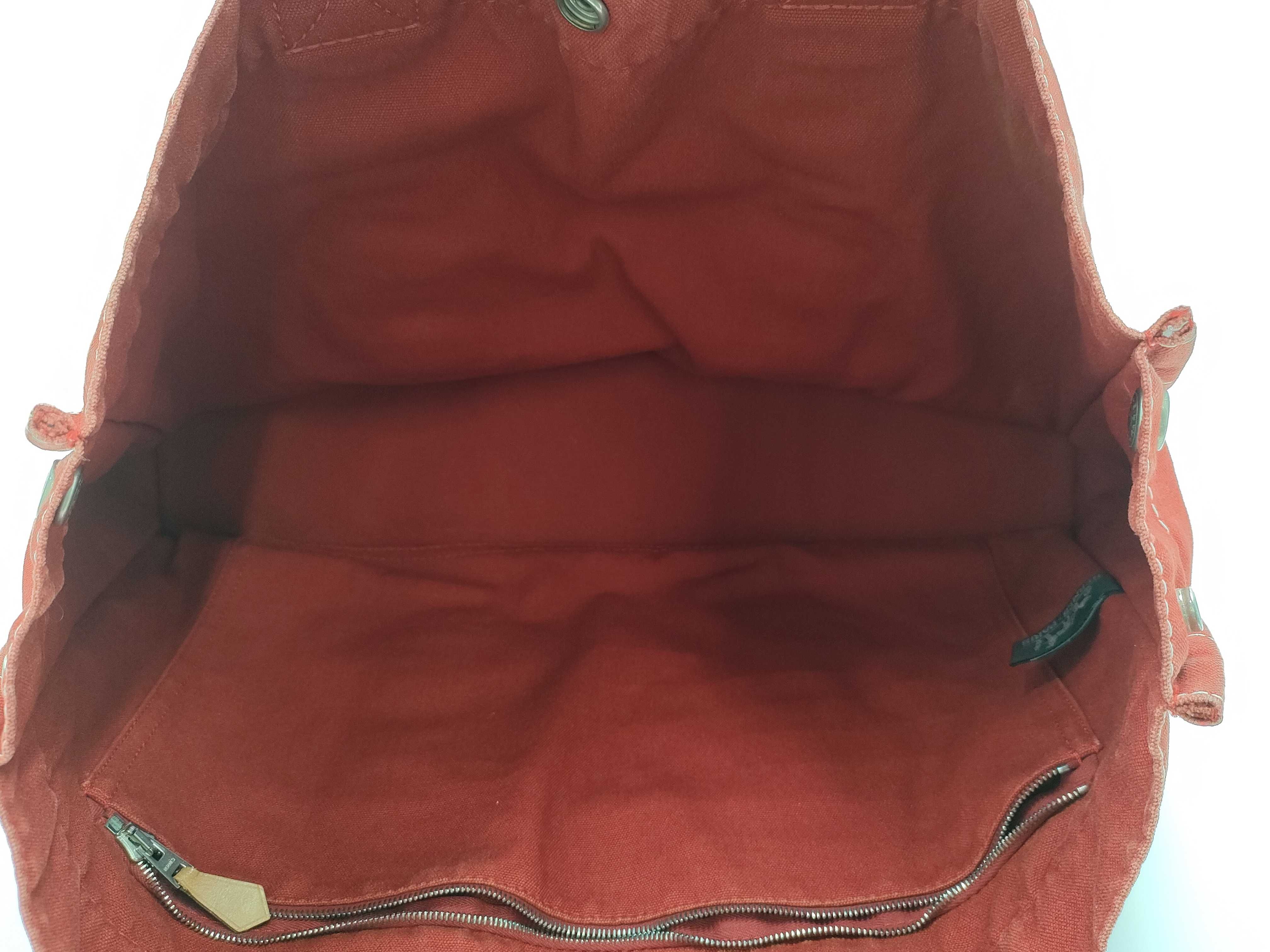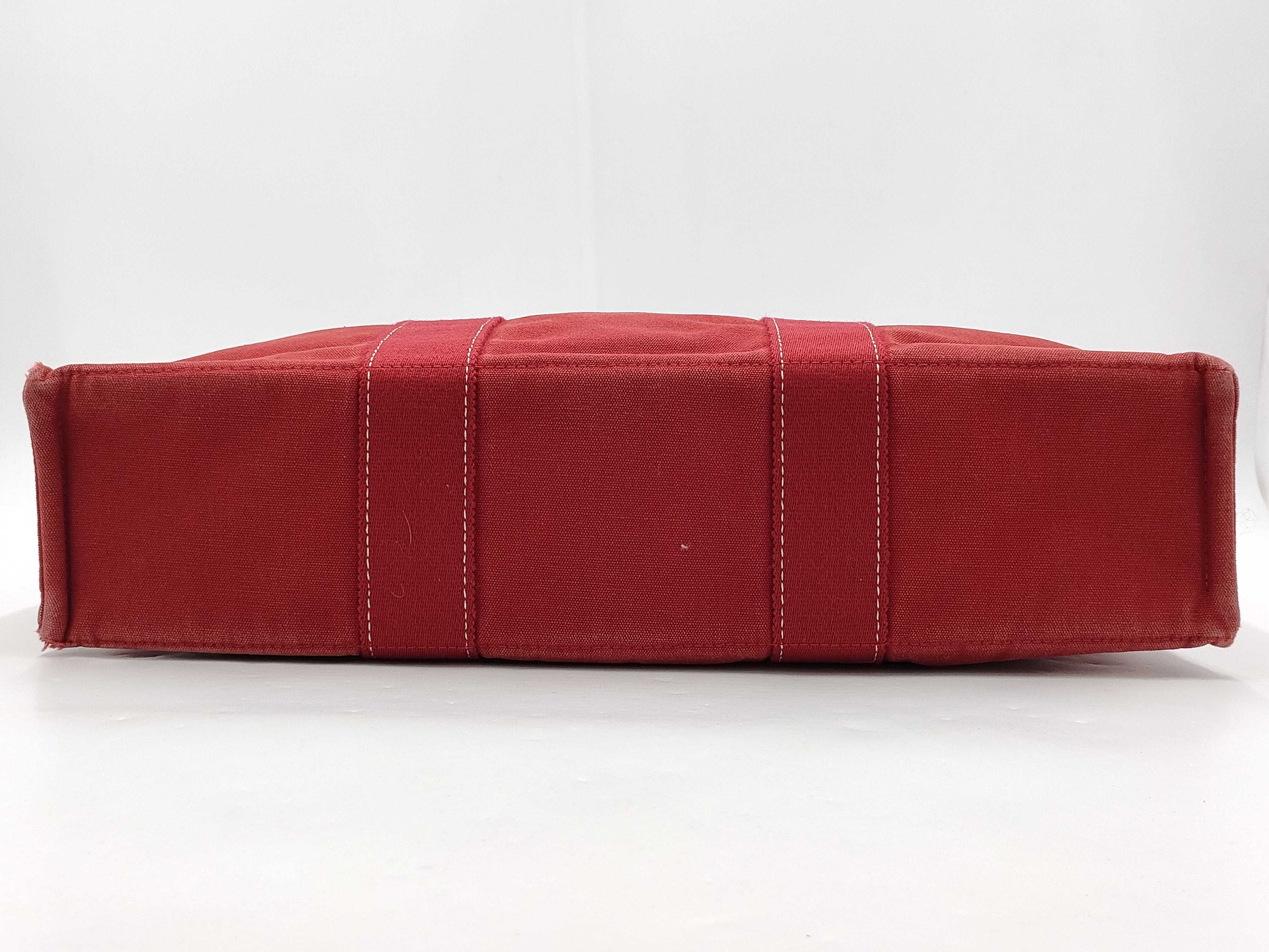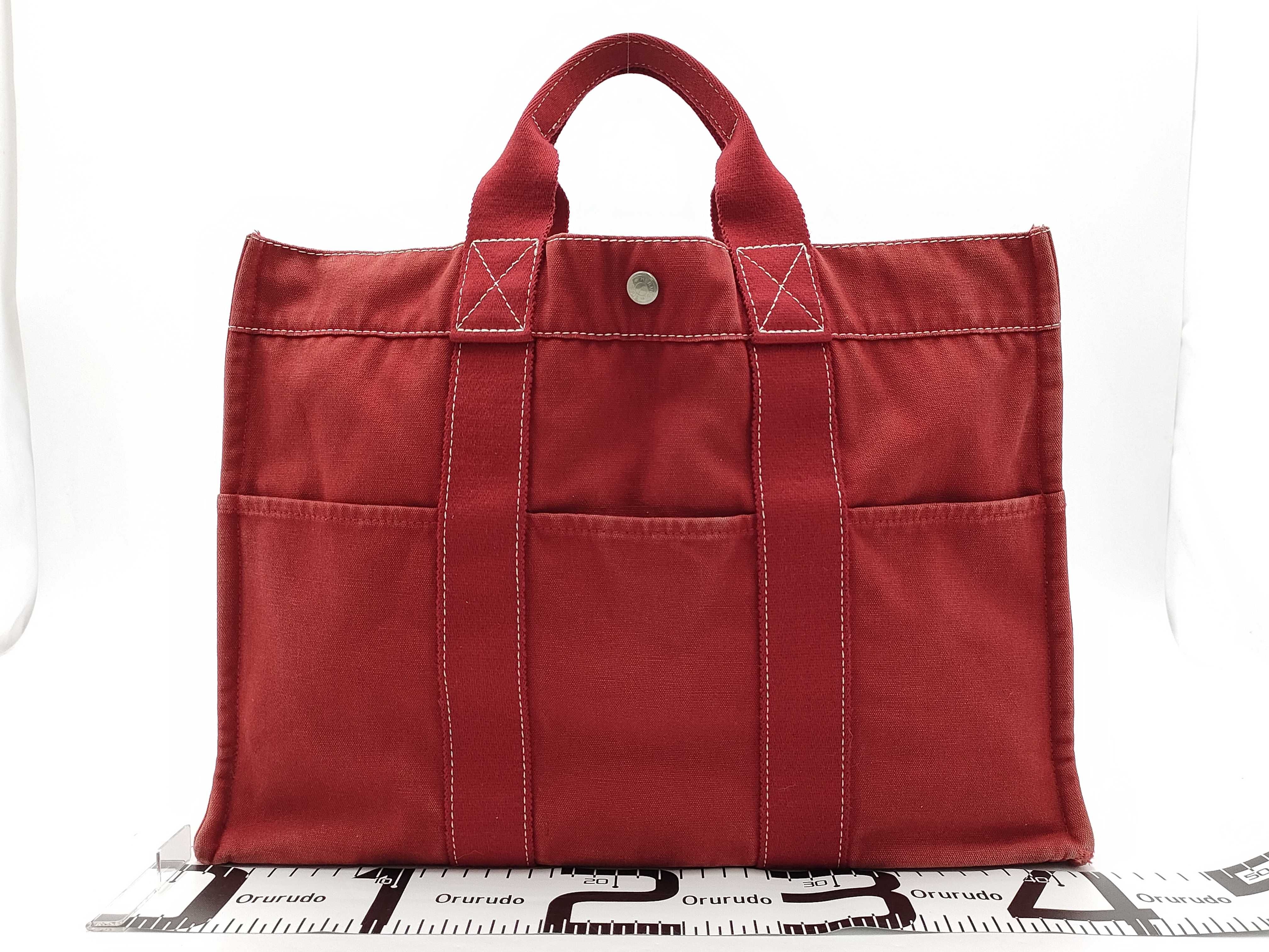 (10976_0097)HERMES エルメス ドーヴィルMM コットンキャンバス ハンドバッグ レッド ハンドバッグ