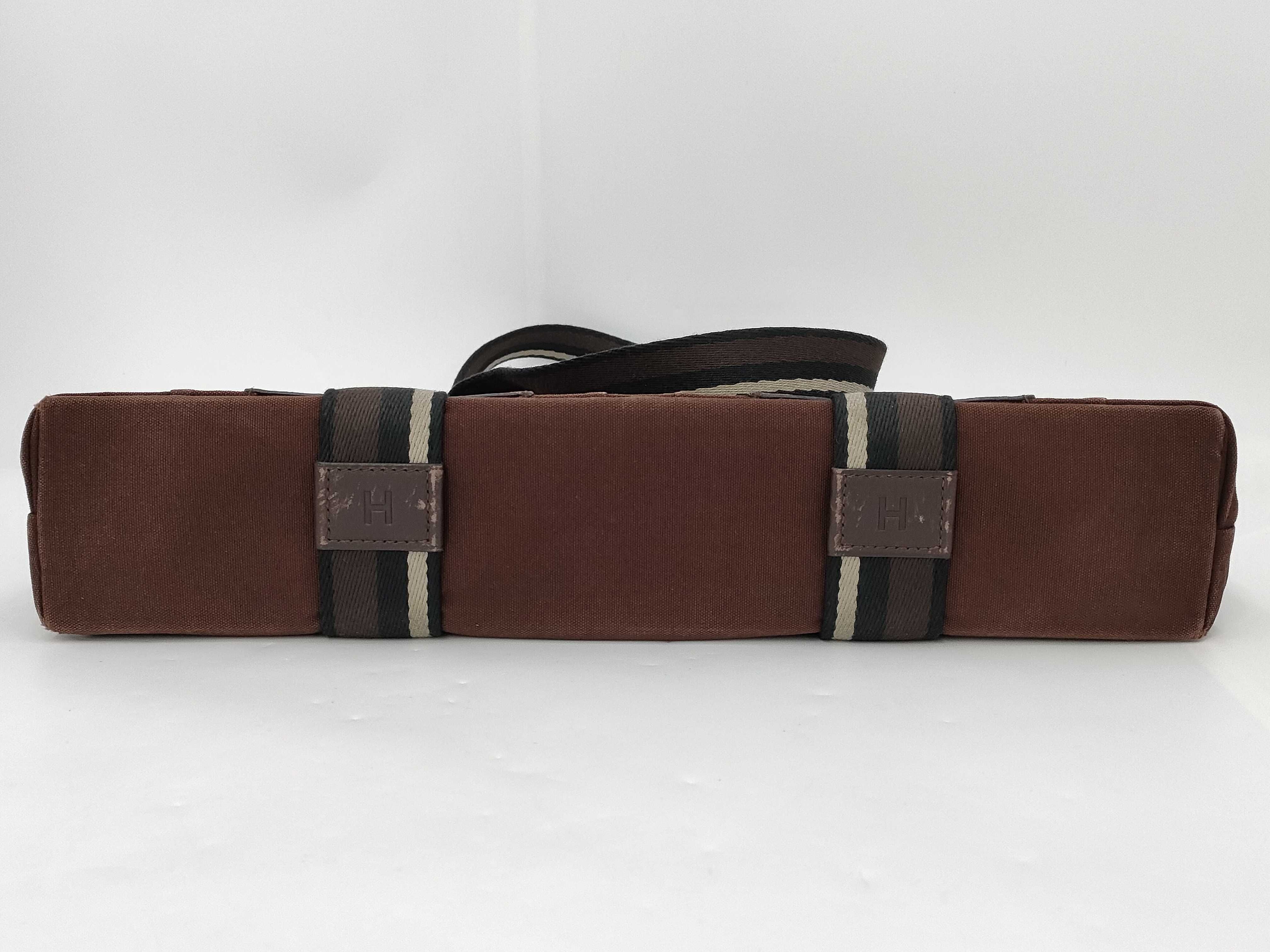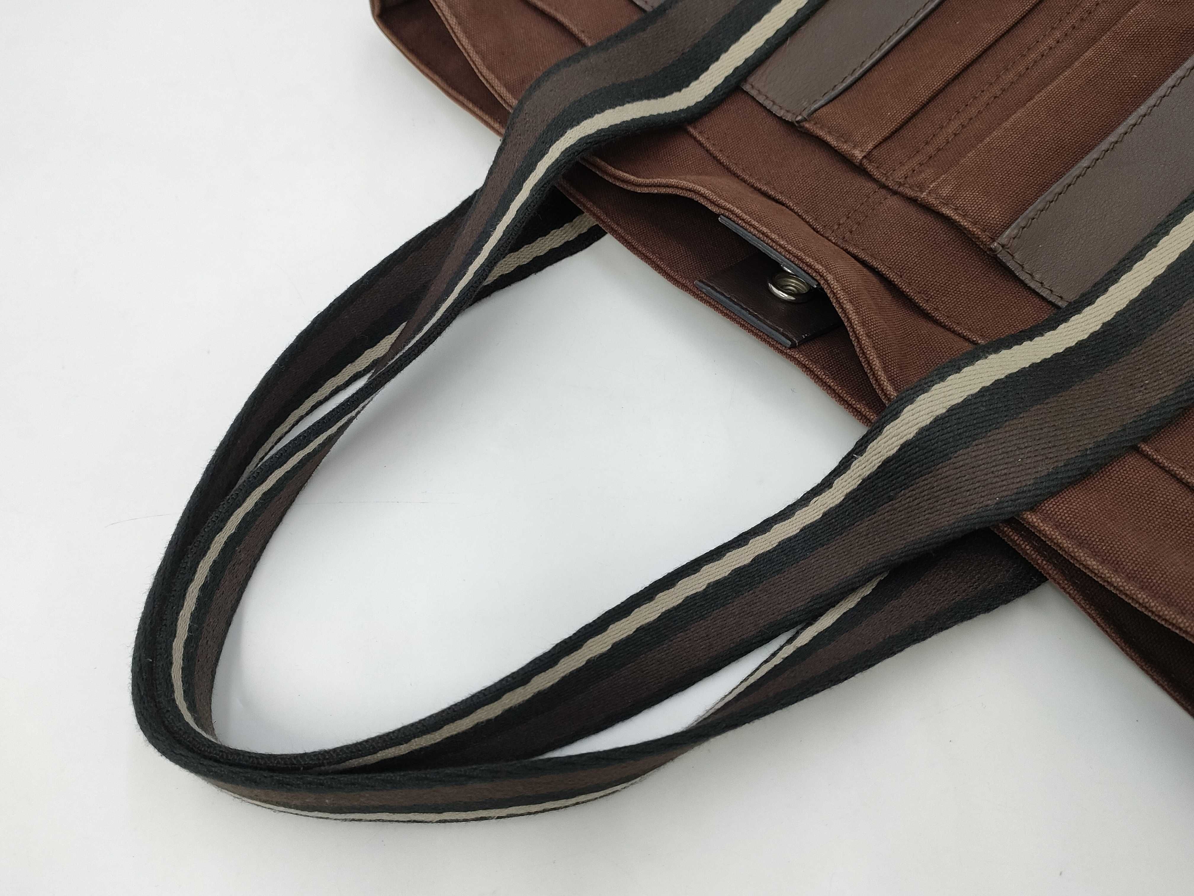 (10976_0118)HERMES エルメス トロカホリゾンタルMM レザー×キャンバス ブラウン トートバッグ