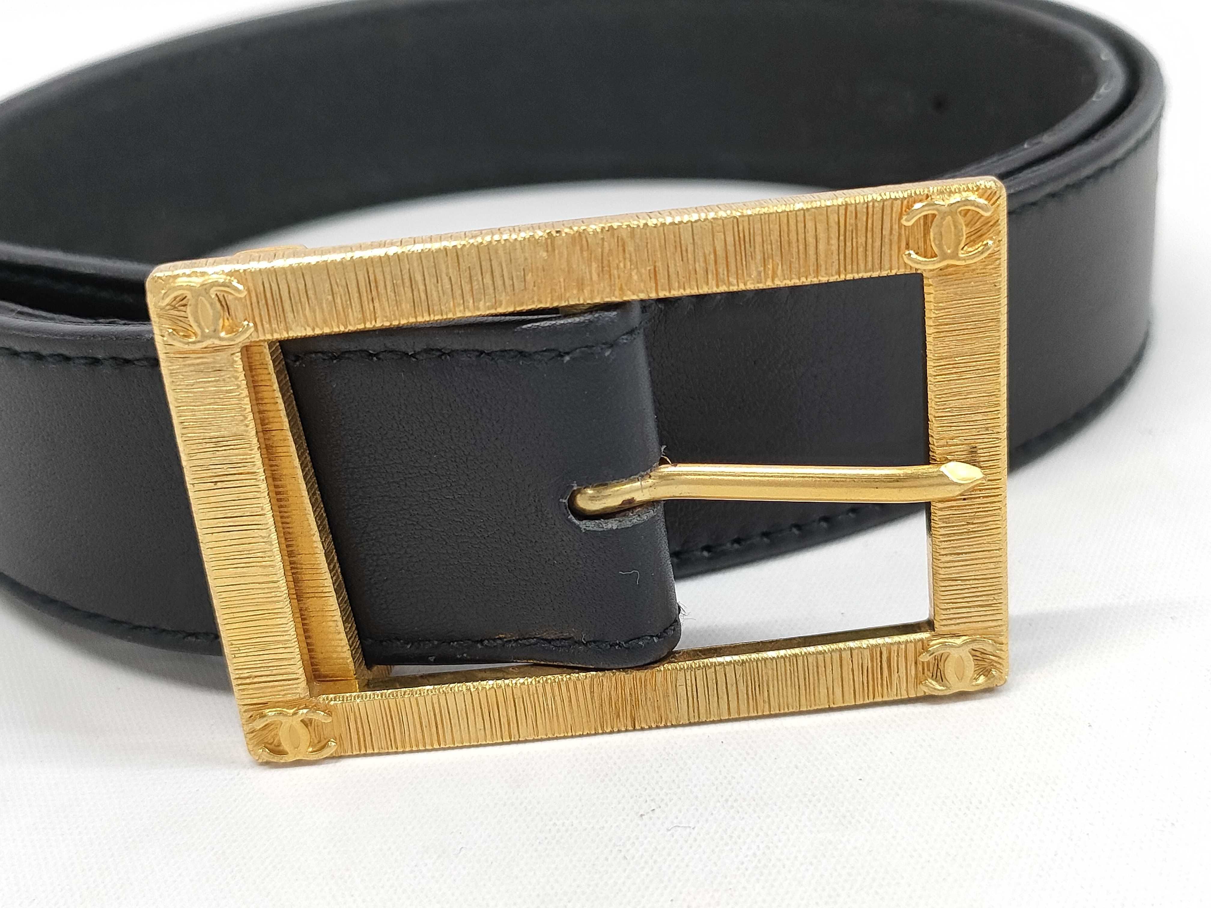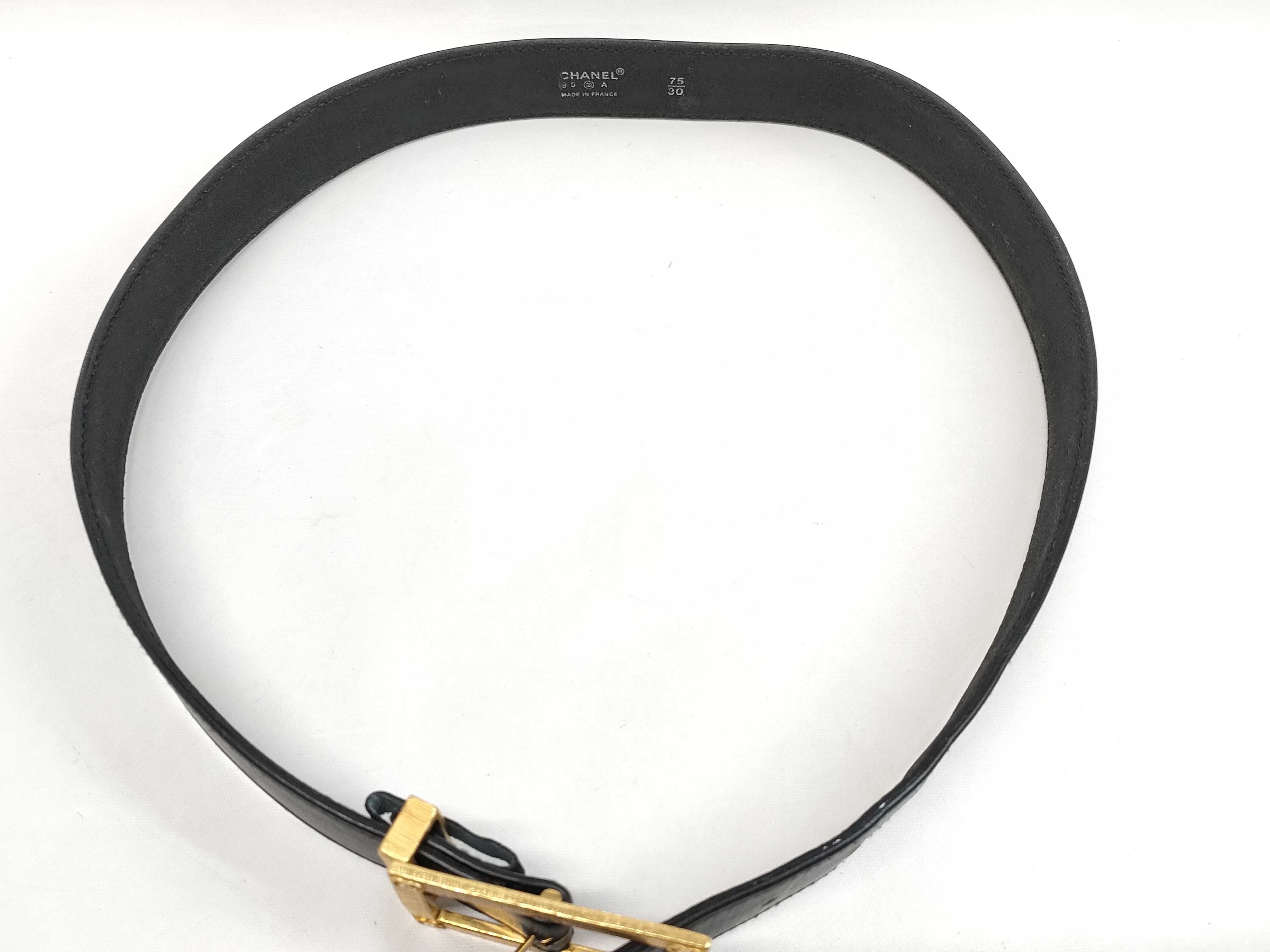 (10976_0216)CHANEL シャネル ココマーク ベルト レザー ブラック GD金具 ベルト