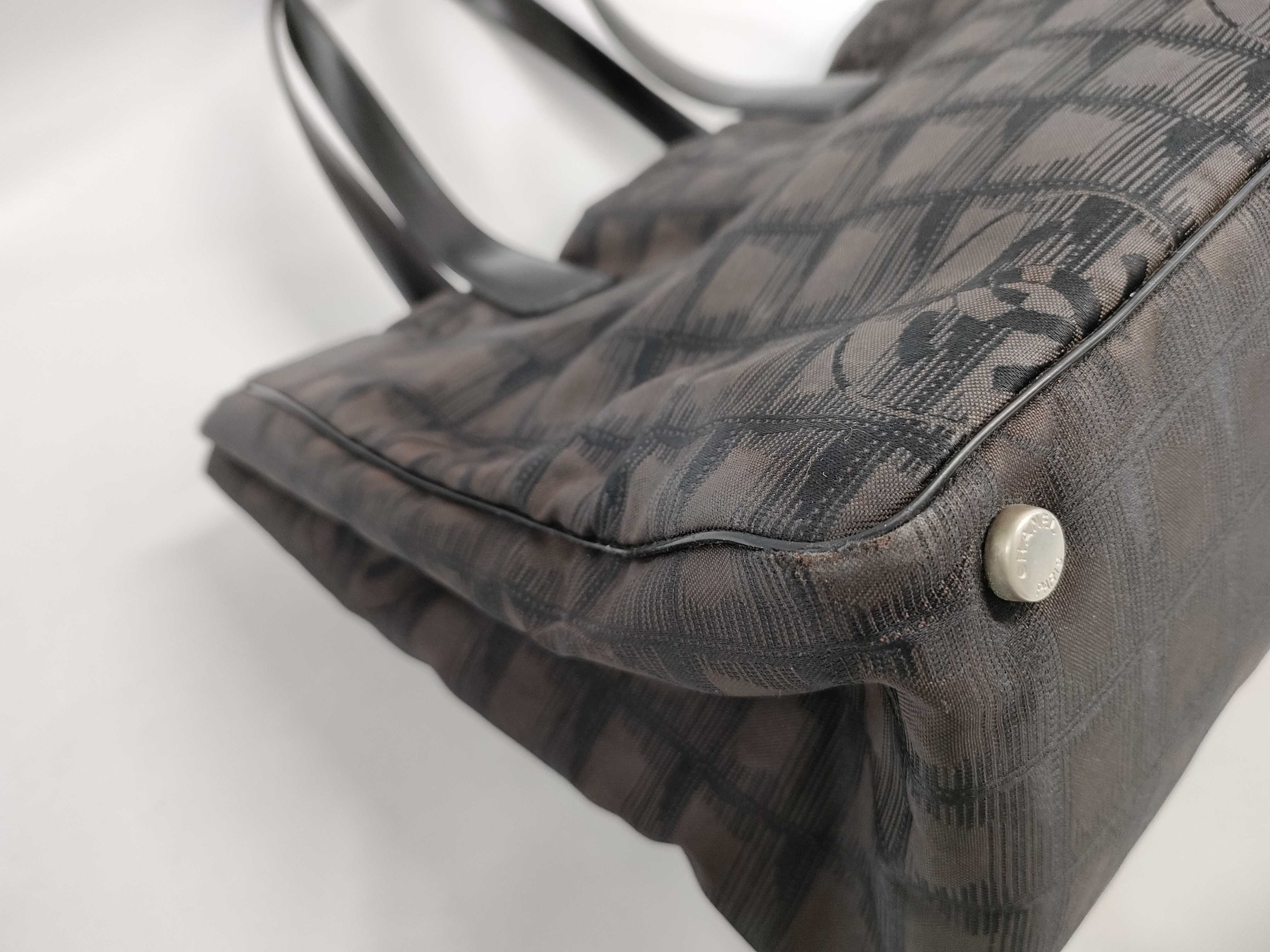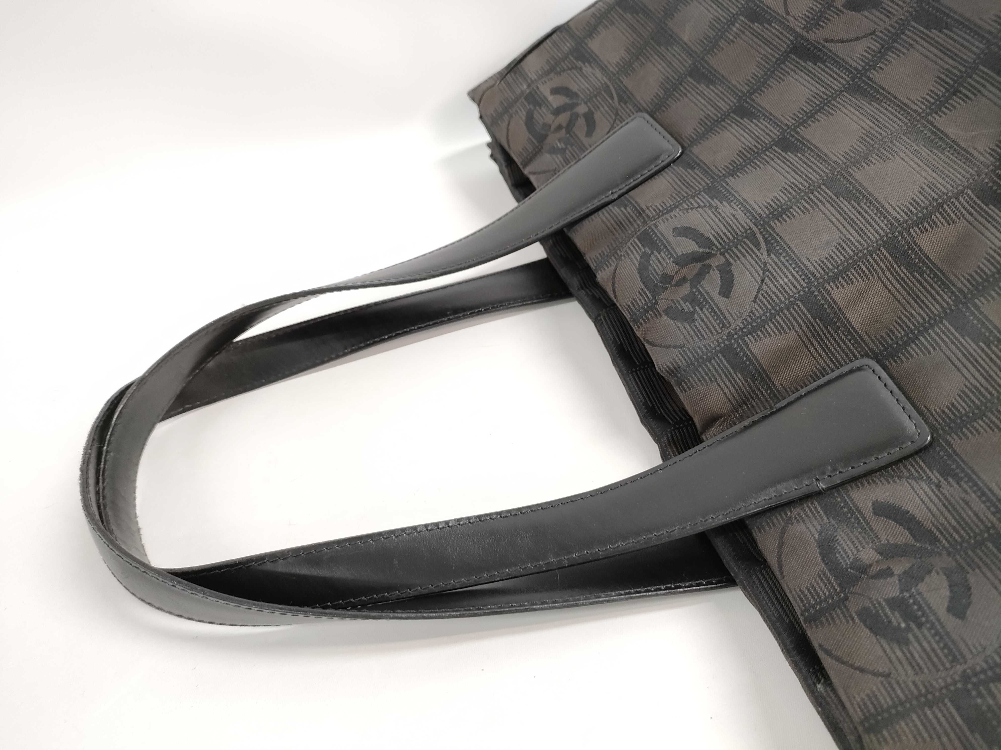 (10976_0470)CHANEL シャネル ニュートラベルライン ナイロンxレザー トートバッグ ブラウン シルバー金具 トートバッグ
