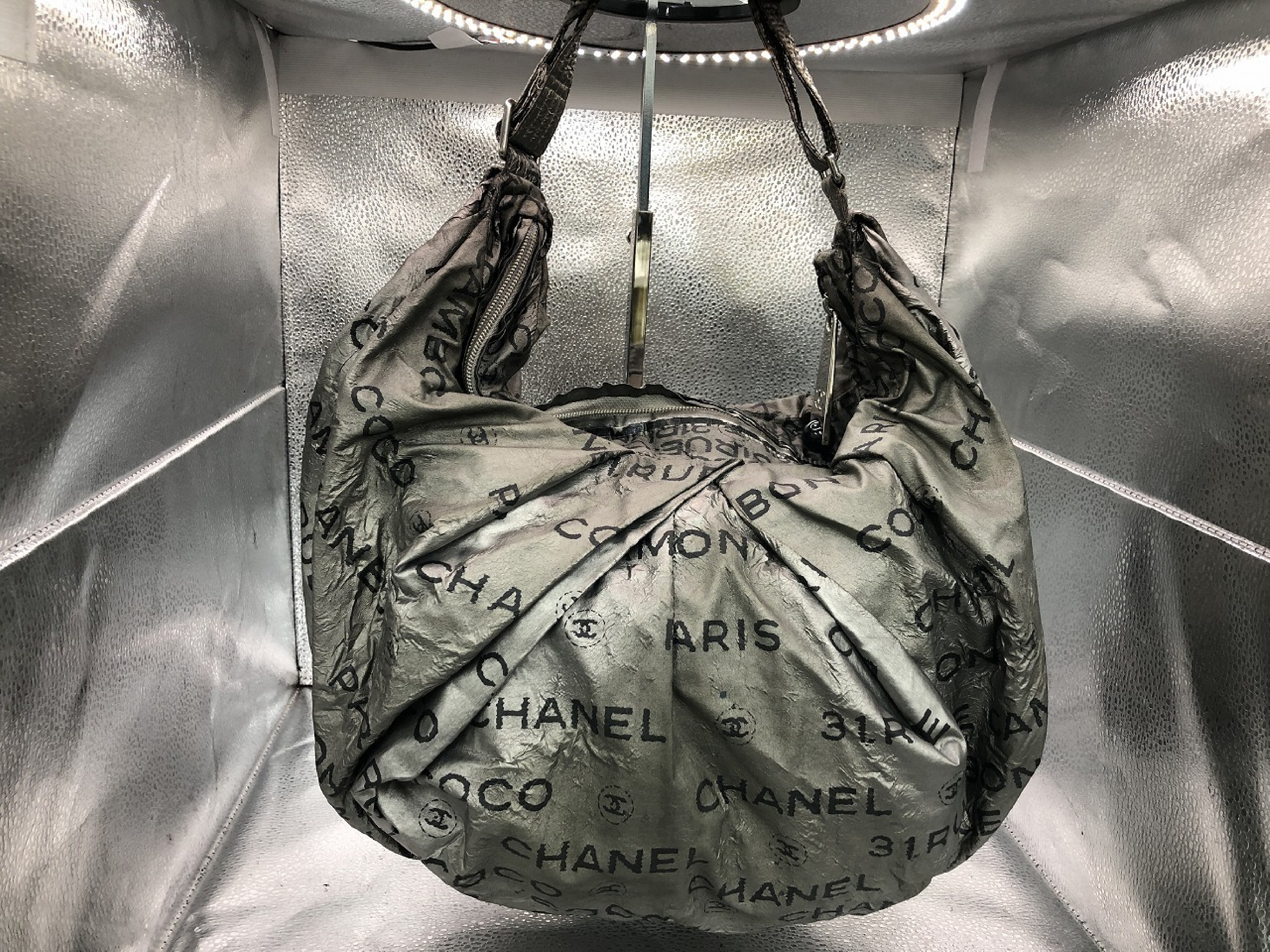 (10976_0521)CHANEL アンリミテッド シリアルシール付き 12425029 ポリエステル シルバー ショルダーバッグ