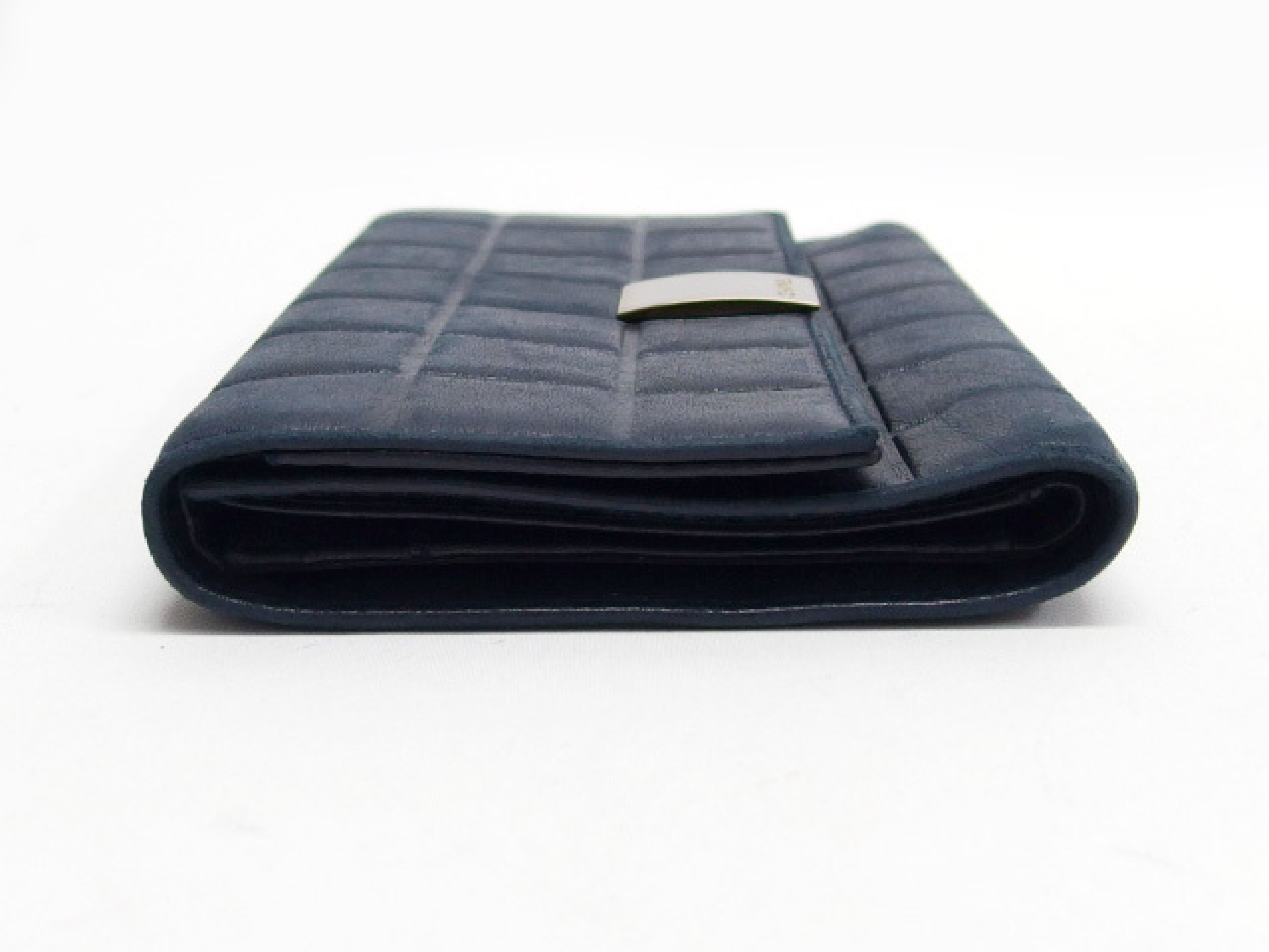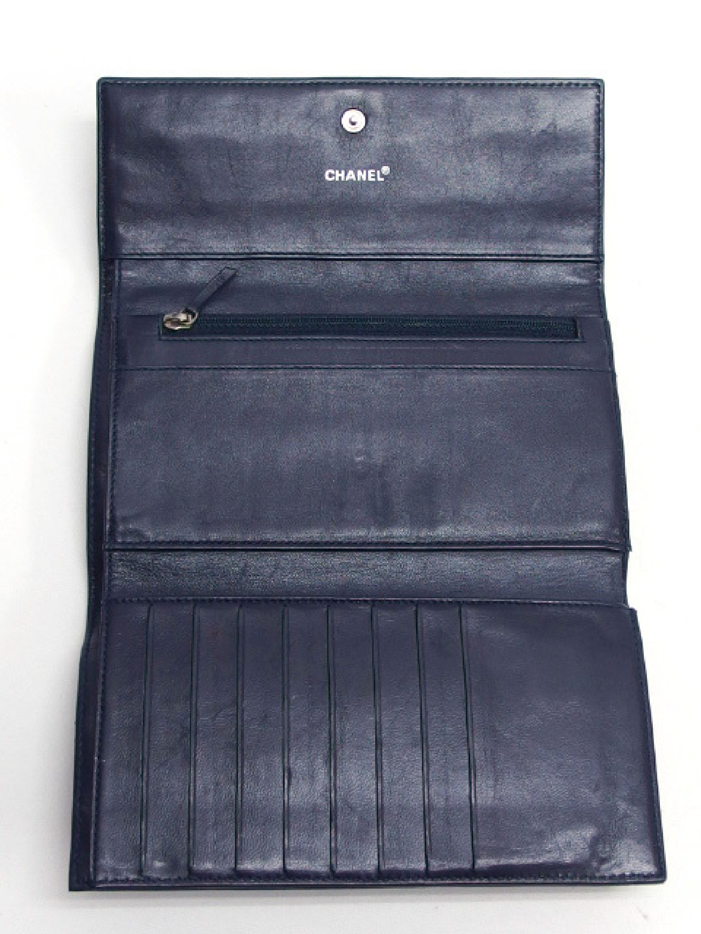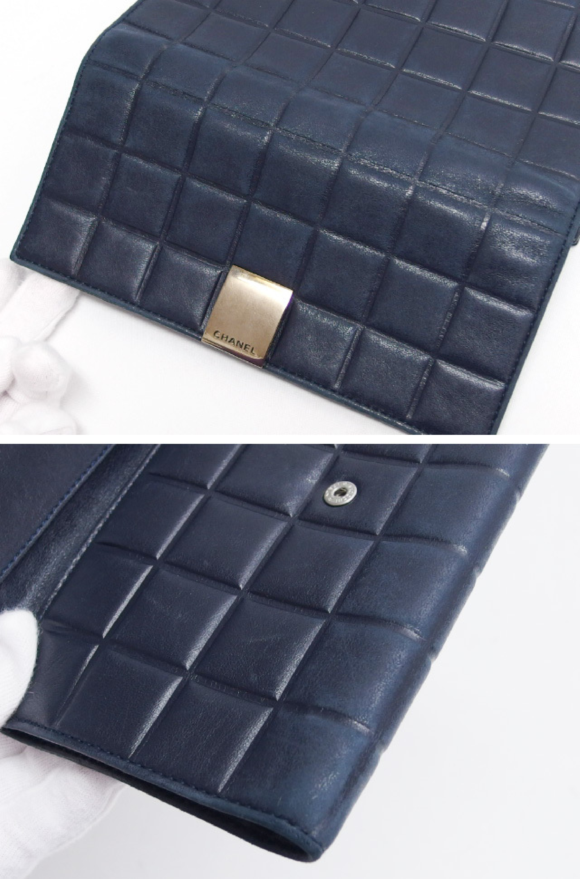 (10976_0535)CHANEL チョコバー 三つ折り長財布 ラムスキン ロゴ金具 ブラック シールあり 7番台 財布