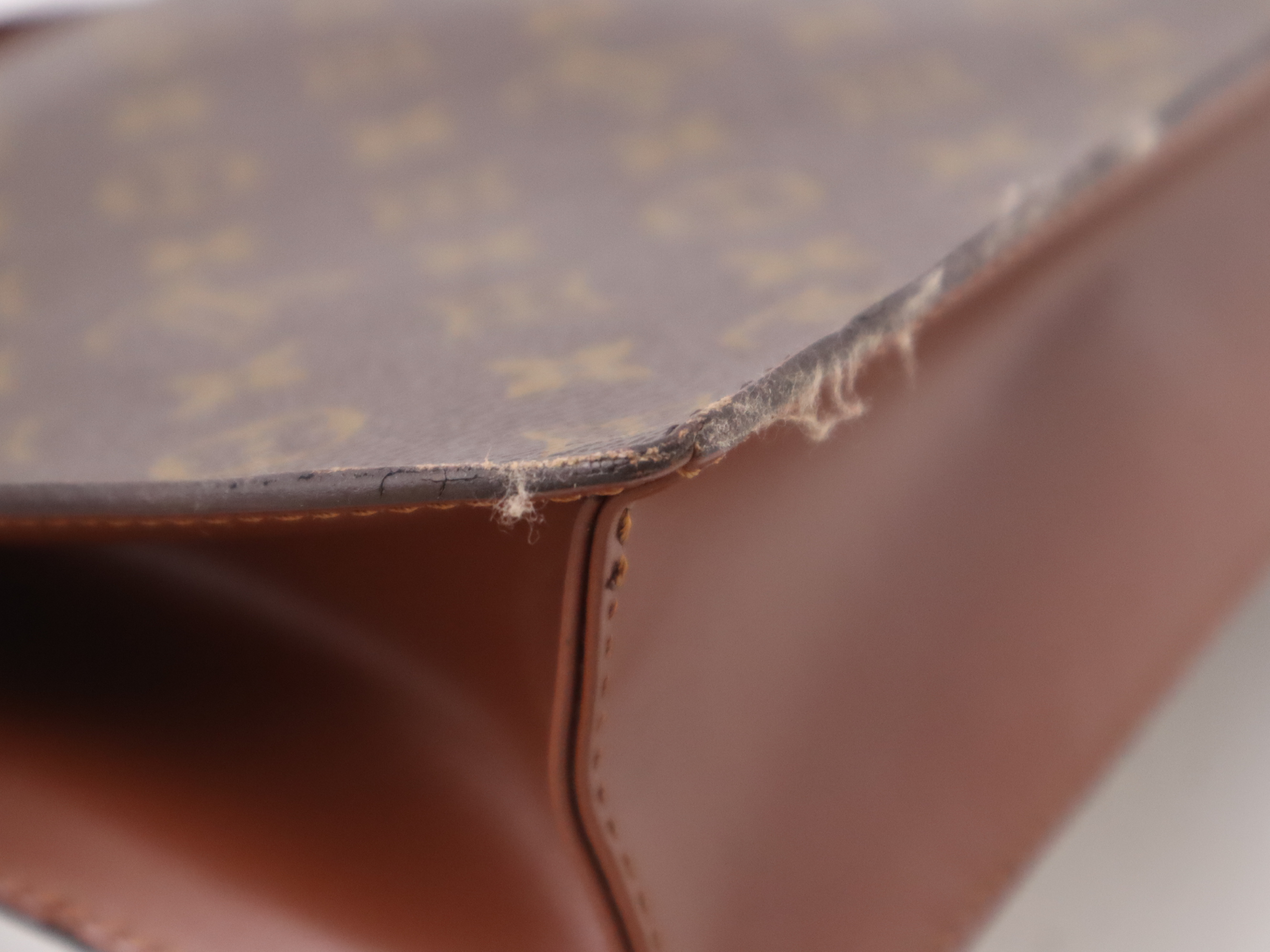 コバ割れ(大) ヒビ(中) 繊維付着(中) 金具擦れ傷(中) 剥げ汚れ(小) 外ポケットカビ(大) 黒汚れ(小) 内ポケット劣化ベタ剥がれ(大) 【シリアル