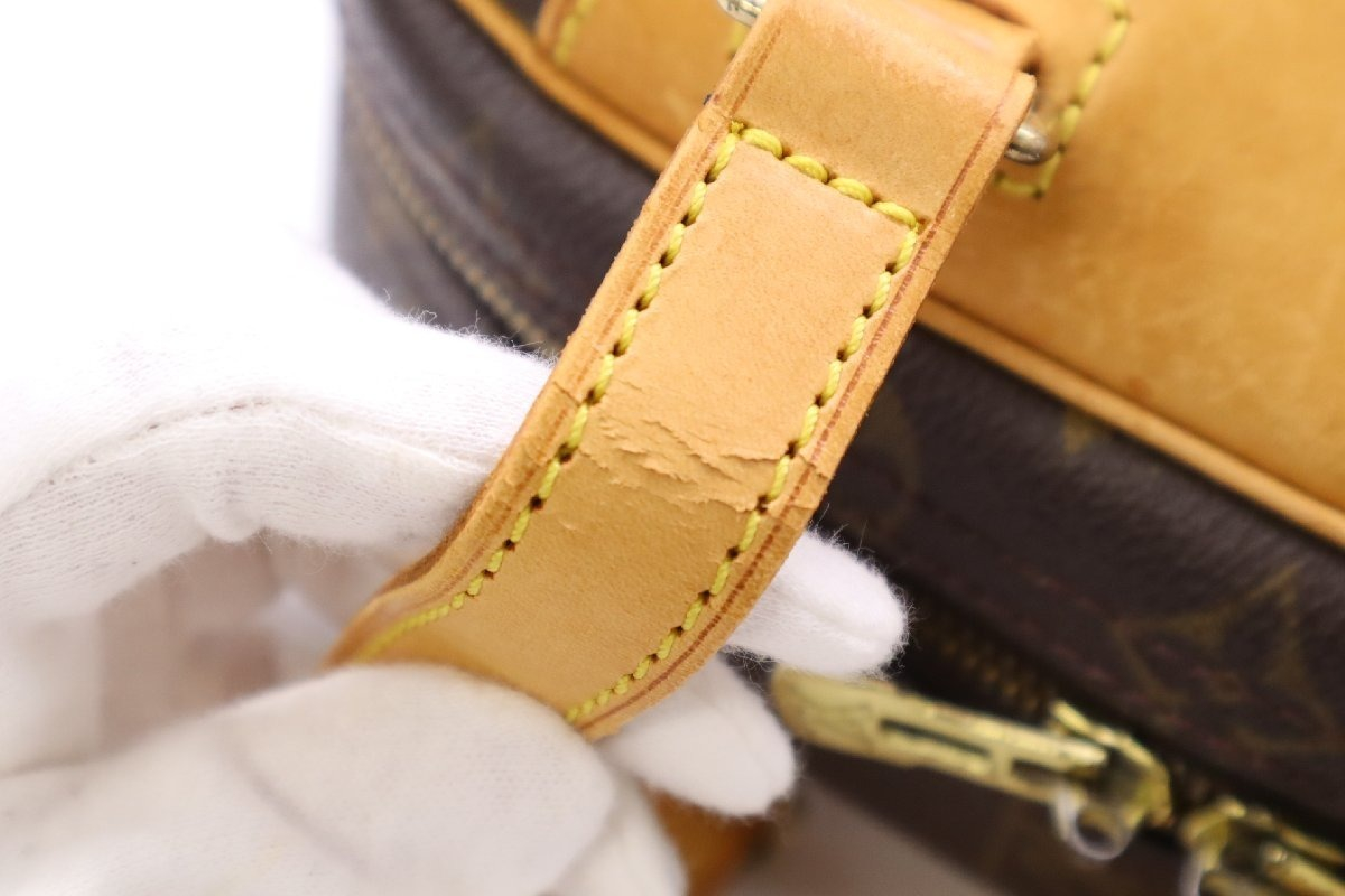 全体ヤケ擦れ汚れ(中) 型崩れ(中) 角擦れ(中) 金具傷剥げ(中) ヌメ革ヤケ擦れ傷シミ(中) 持ち手黒ずみ(中) コバ擦れ(中) 付け根剥げ(中) 内側変色汚れ(小) 【シリアル