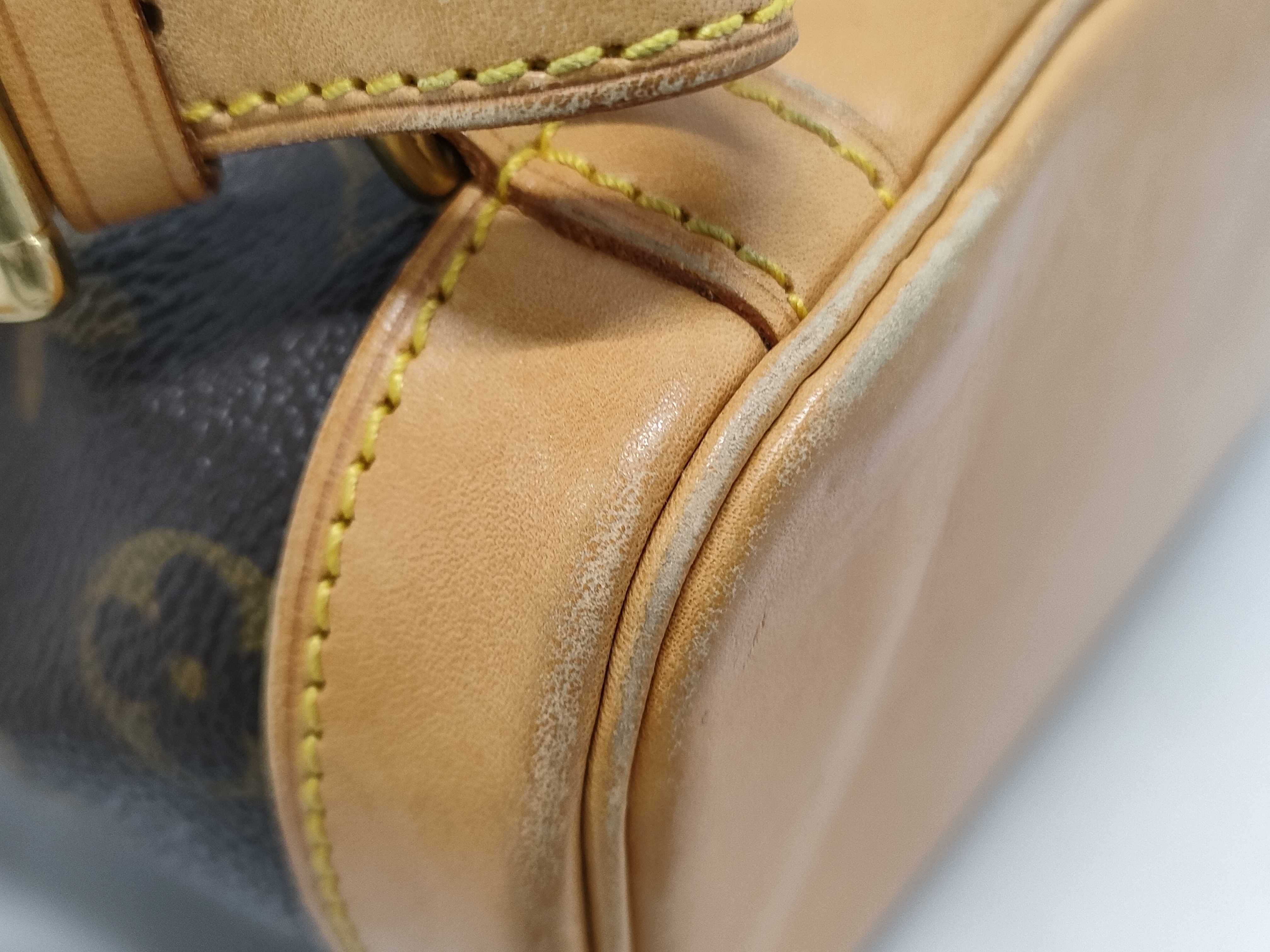 全体ヤケ擦れ汚れべたつき感(中) ヌメ革ヤケシミ(中) 型崩れ(中) 角擦れ(中) 金具擦れ剥げくすみ(中) 持ち手黒ずみ擦れ(中) ショルダー擦れ(中) コバ剥げ割れ(中) 内側擦れ汚れ(中) 外ポケットカビシミ汚れ(中) 【シリアル