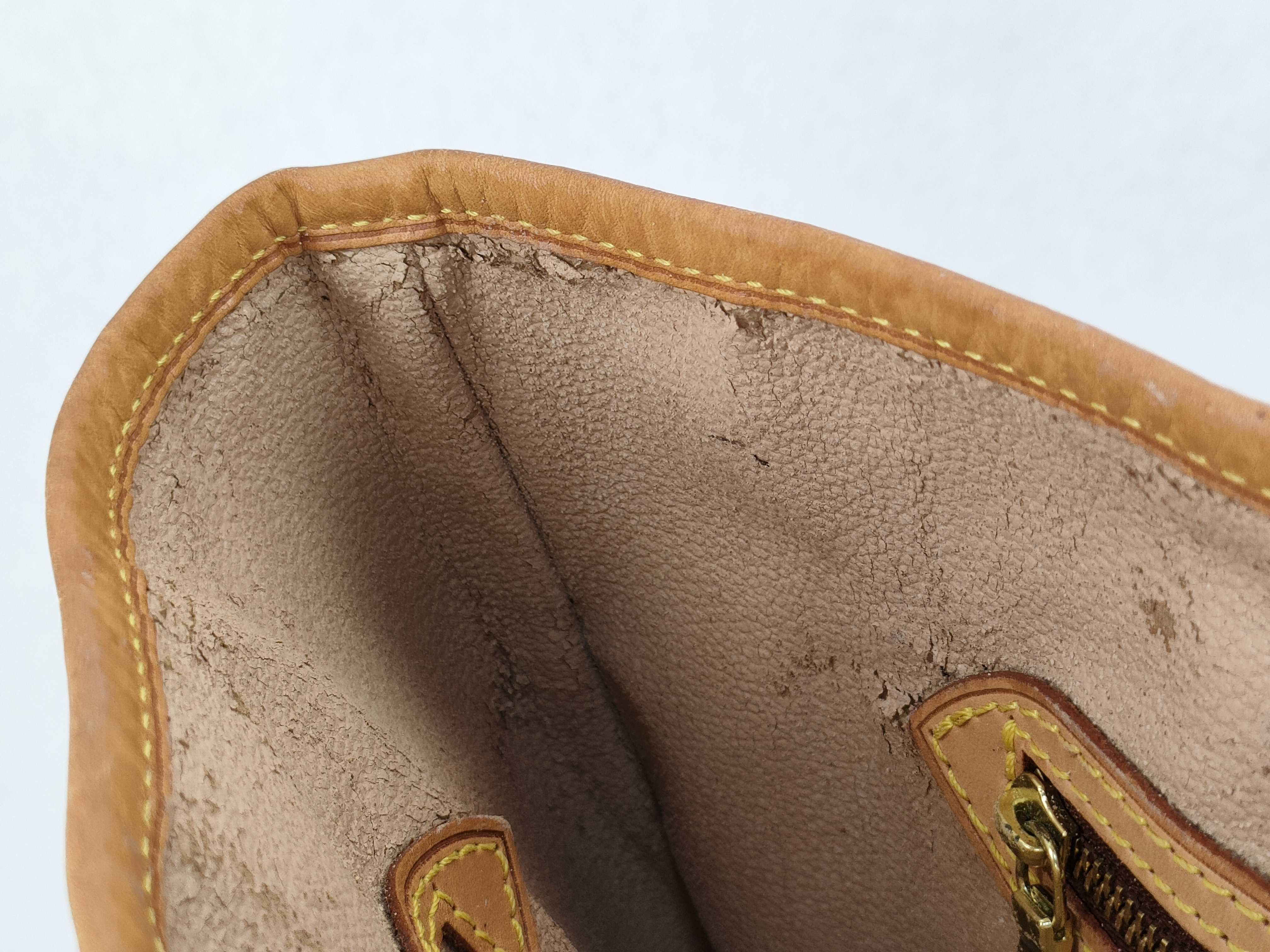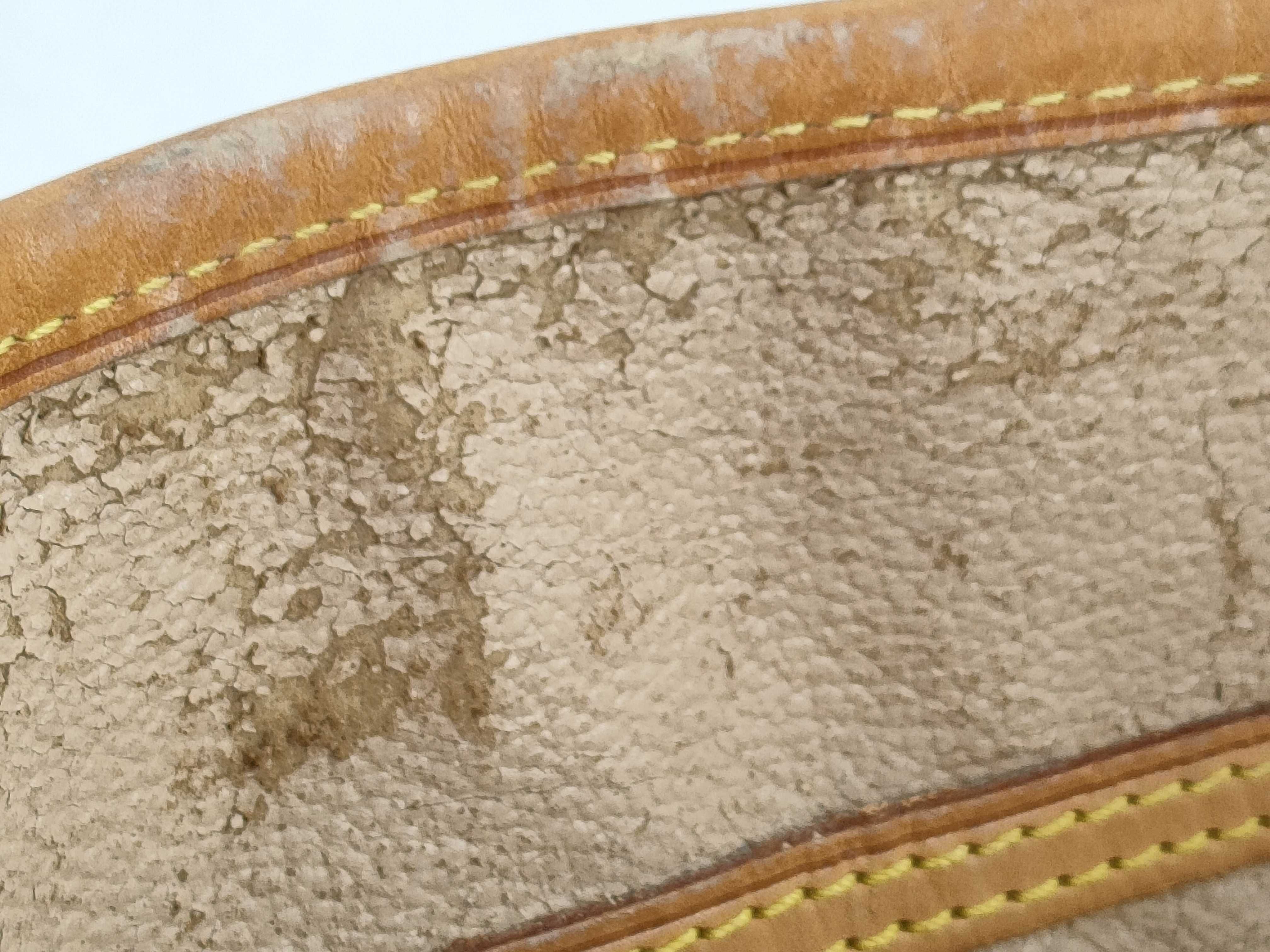 全体擦れ(中) 焼け汚れ(中) 型崩れ(中) ヌメ革擦れ焼けシミシワ傷(中) ヒビ(小) 角縁擦れ剥げ汚れシワ(中) ヒビ(小) 金具くすみ汚れ剥がれ傷(中) 内側劣化べた剥がれカビ(有) ポケット劣化べた剥がれカビ(有) ポーチ汚れ内側劣化べた剥がれカビ(有)【付属品