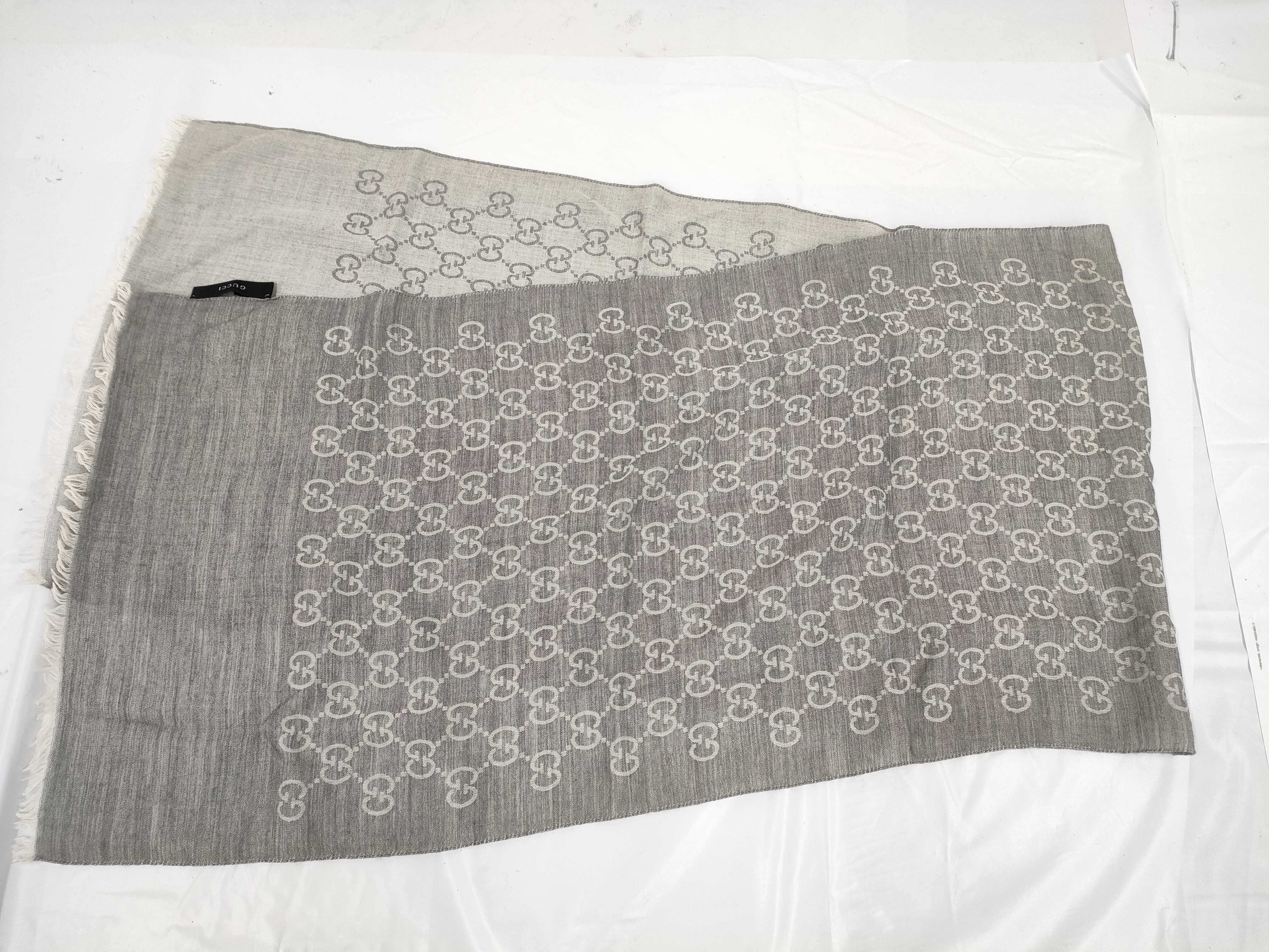 (10979_0020)GUCCI グッチ グレー スカーフ 34 その他小物