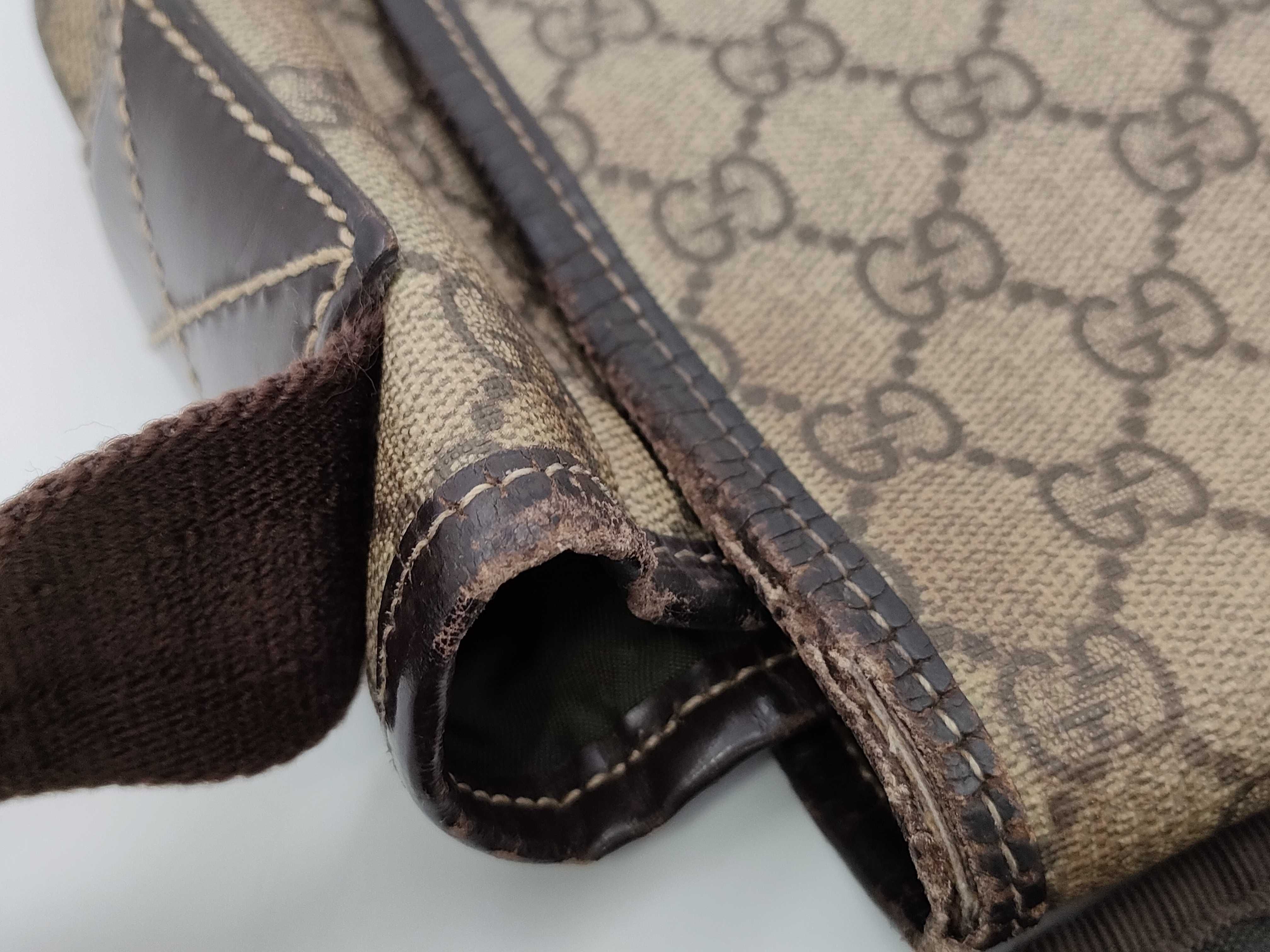 フラップ縁擦れ破れ(大) 全体ヤケ擦れ汚れ(中) 浮きしわ(小) 型崩れ(中) 金具傷(中) 内側擦れしわ変色(小) 肩当破れ(大)【付属品